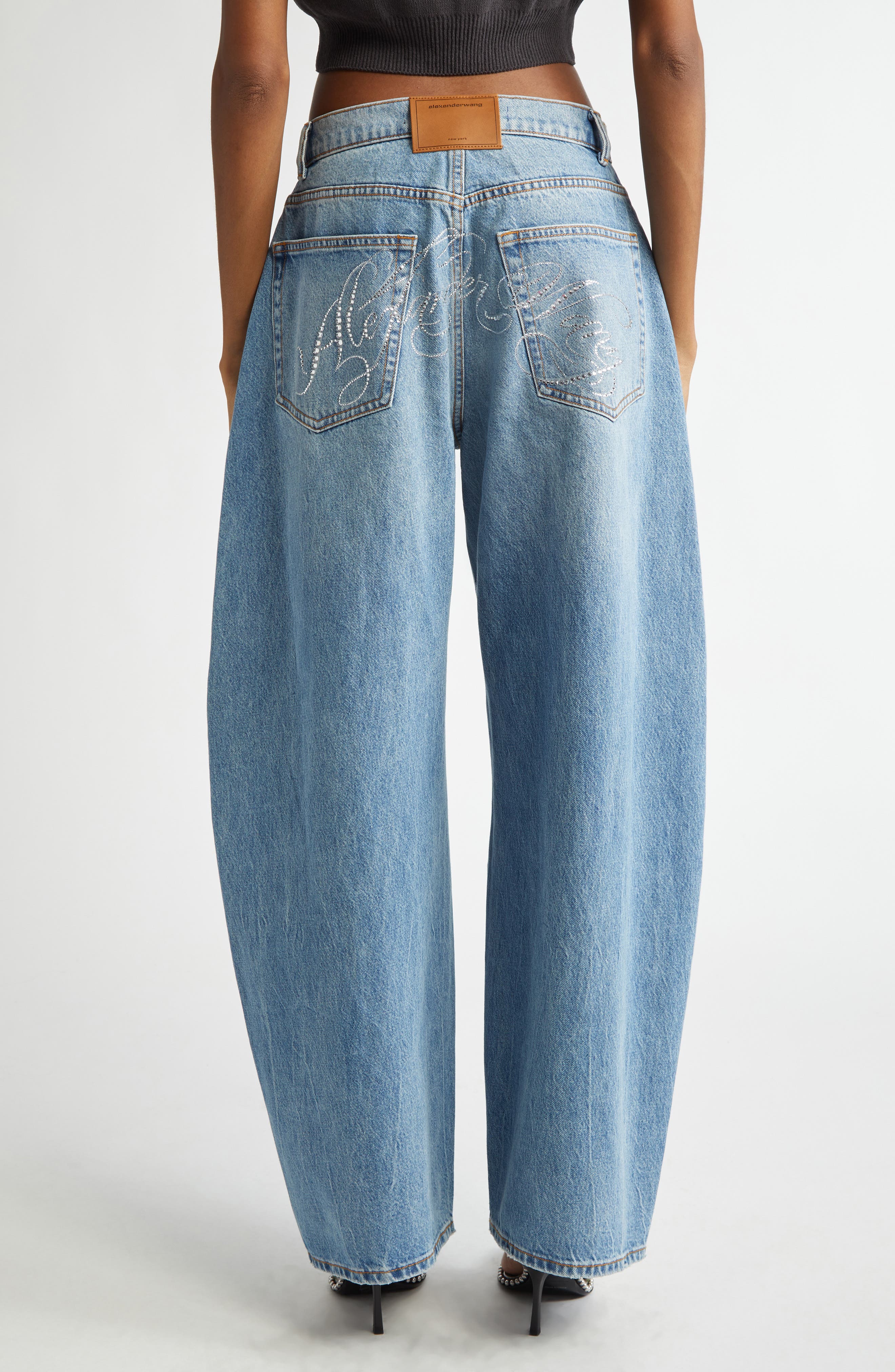 Alexander Wang Logo Hotfix Oversize Rounded Low Rise Jeans_Vintage Light Indigo