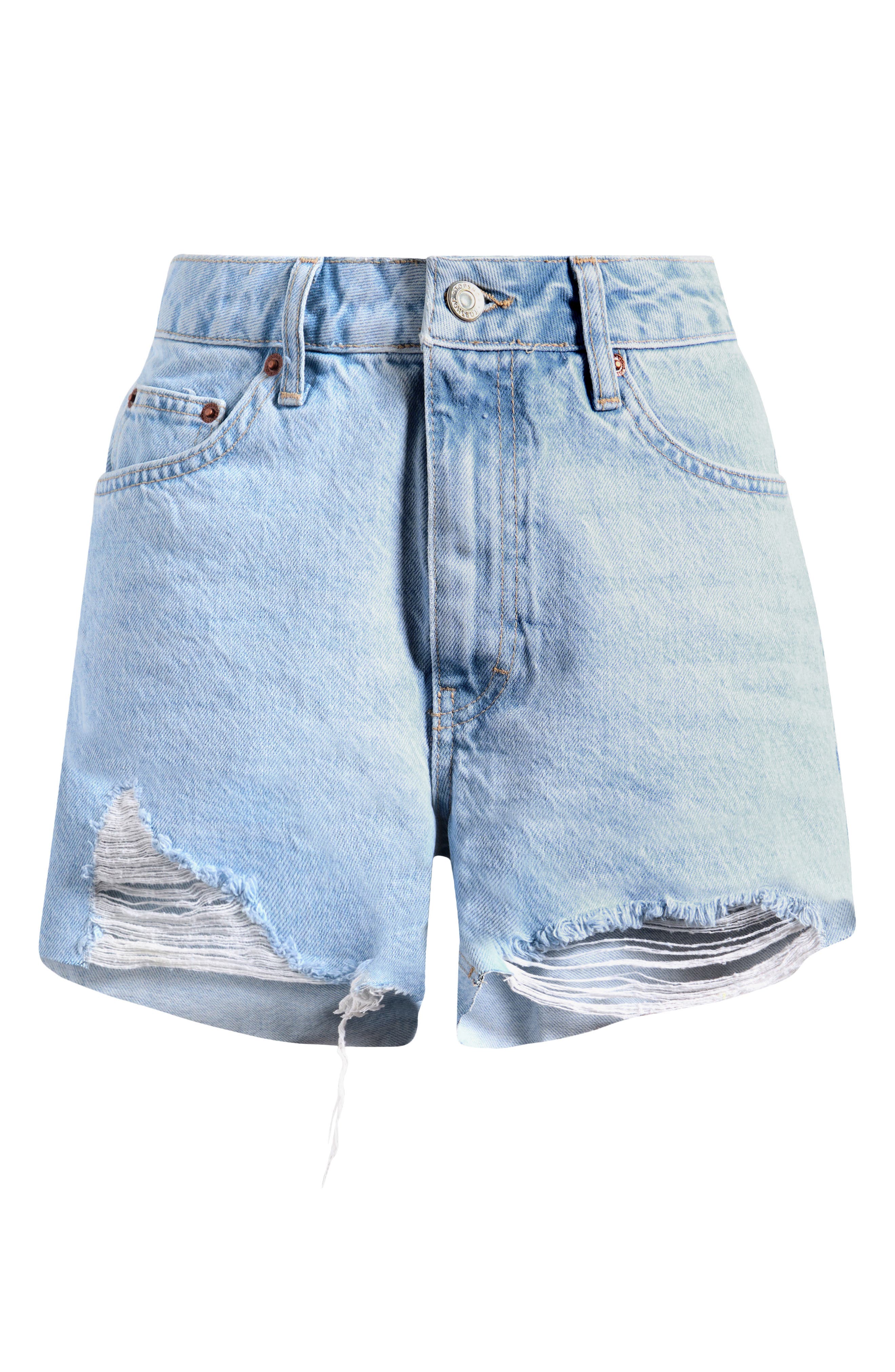 Topshop Frayed Hem Cutoff Denim Shorts_Light Blue