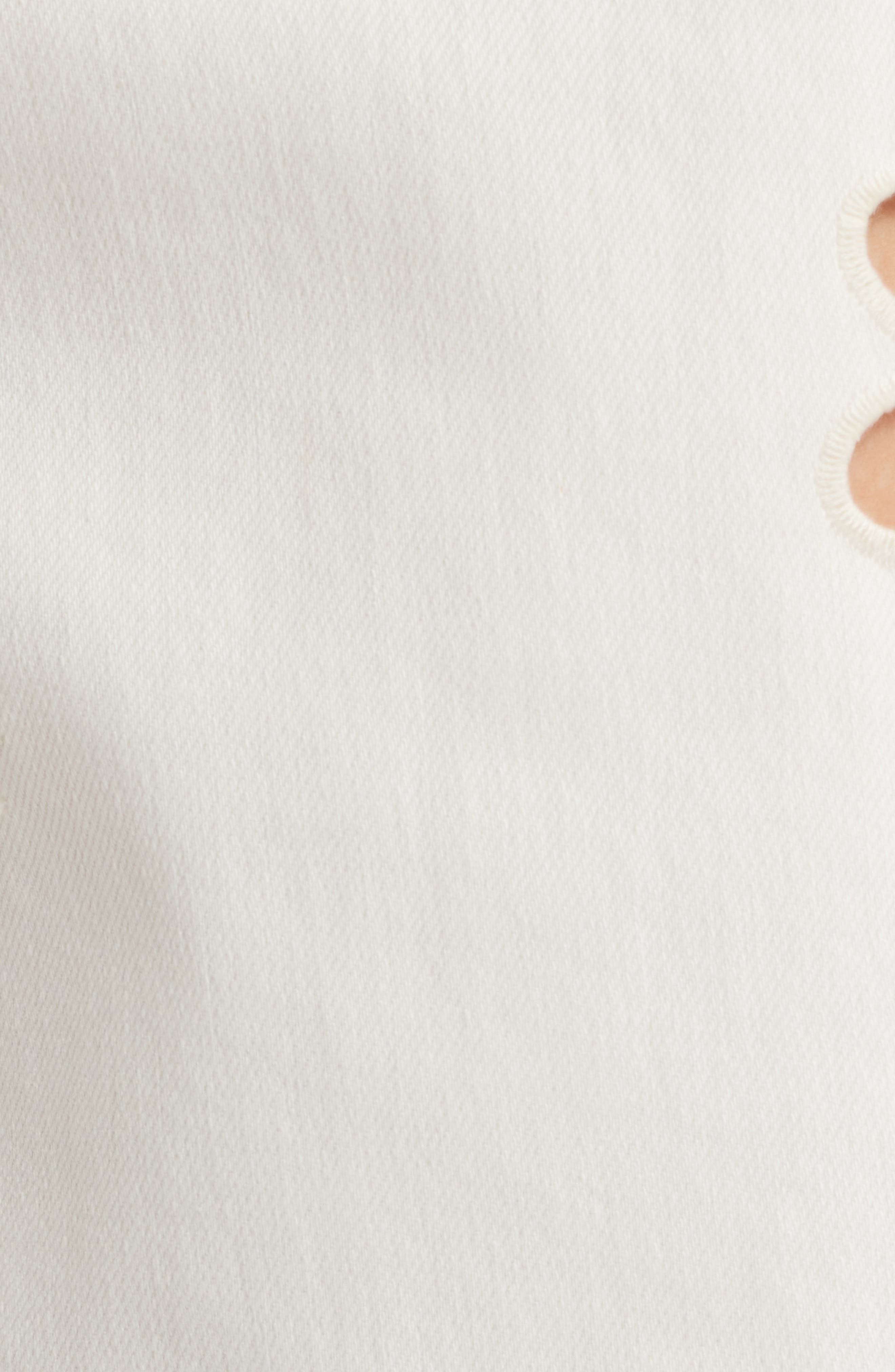 LoveShackFancy Carolette Eyelet Cutout Bootcut Jeans_Optic White