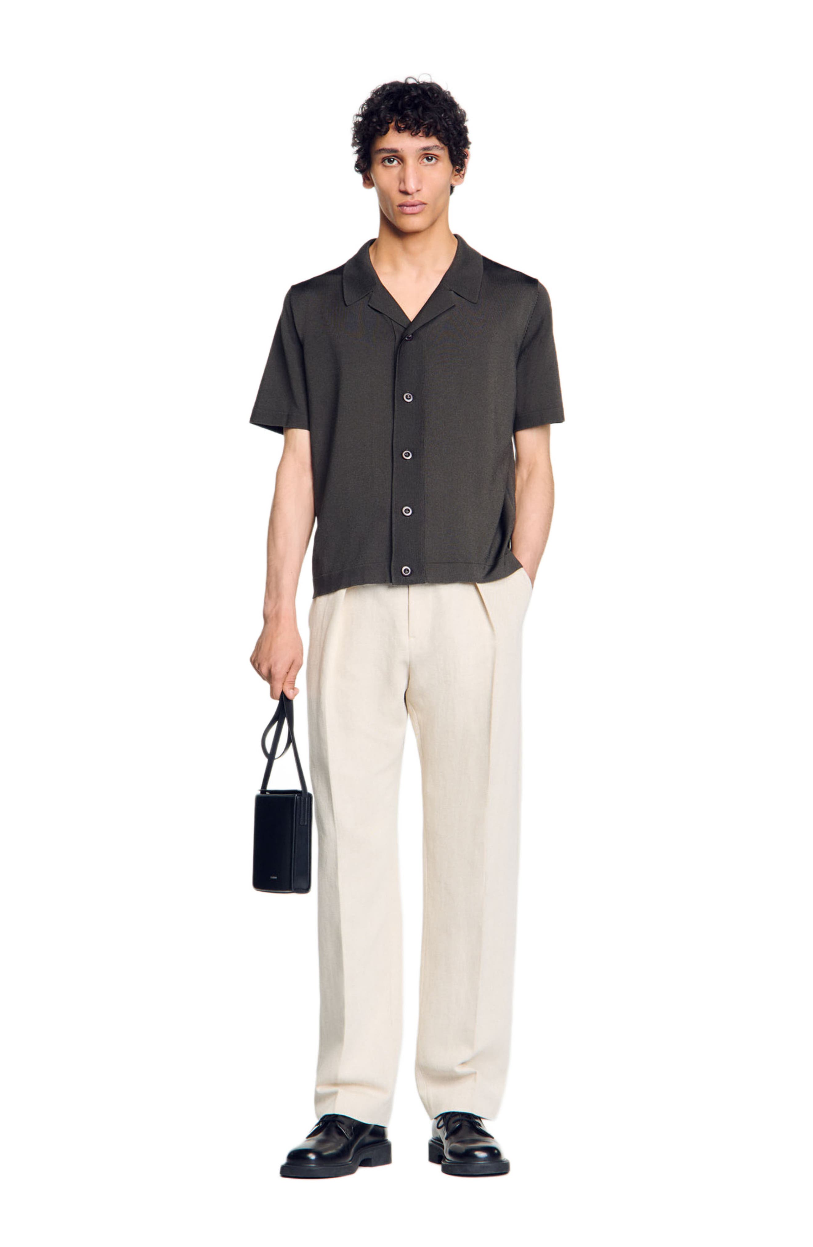 SANDRO Short-sleeved shirt_Dark Kaki.