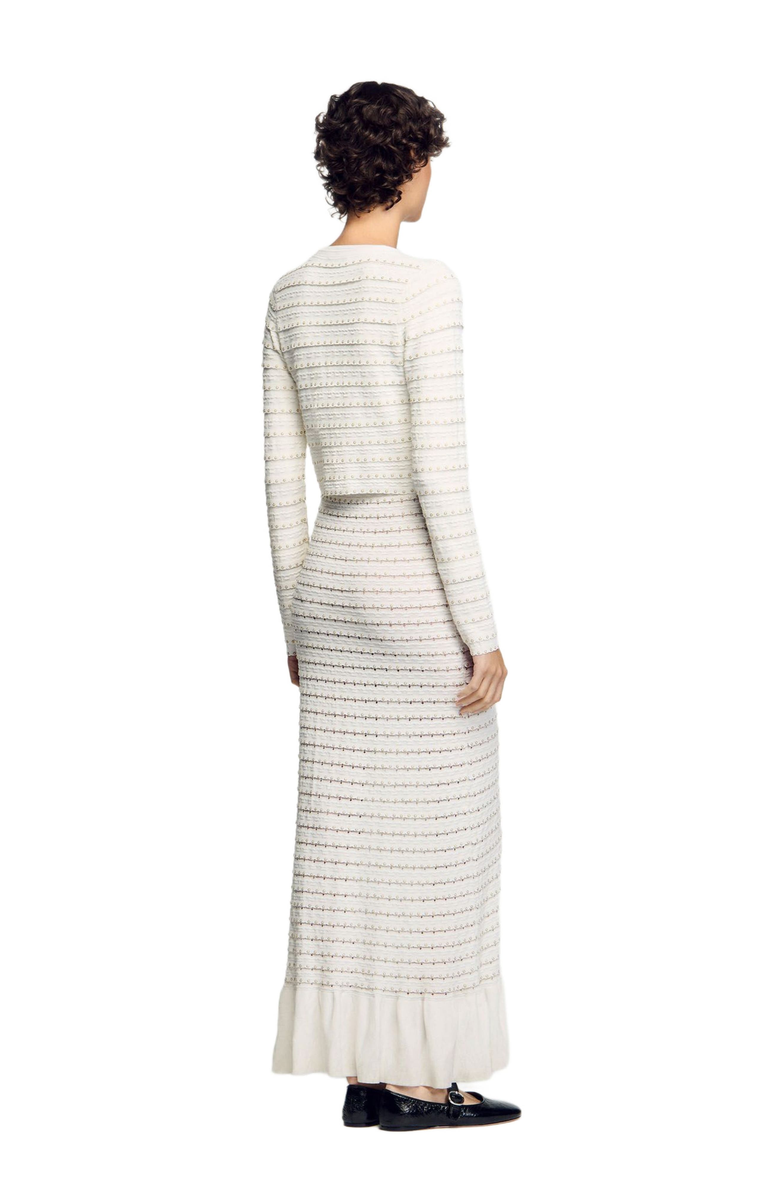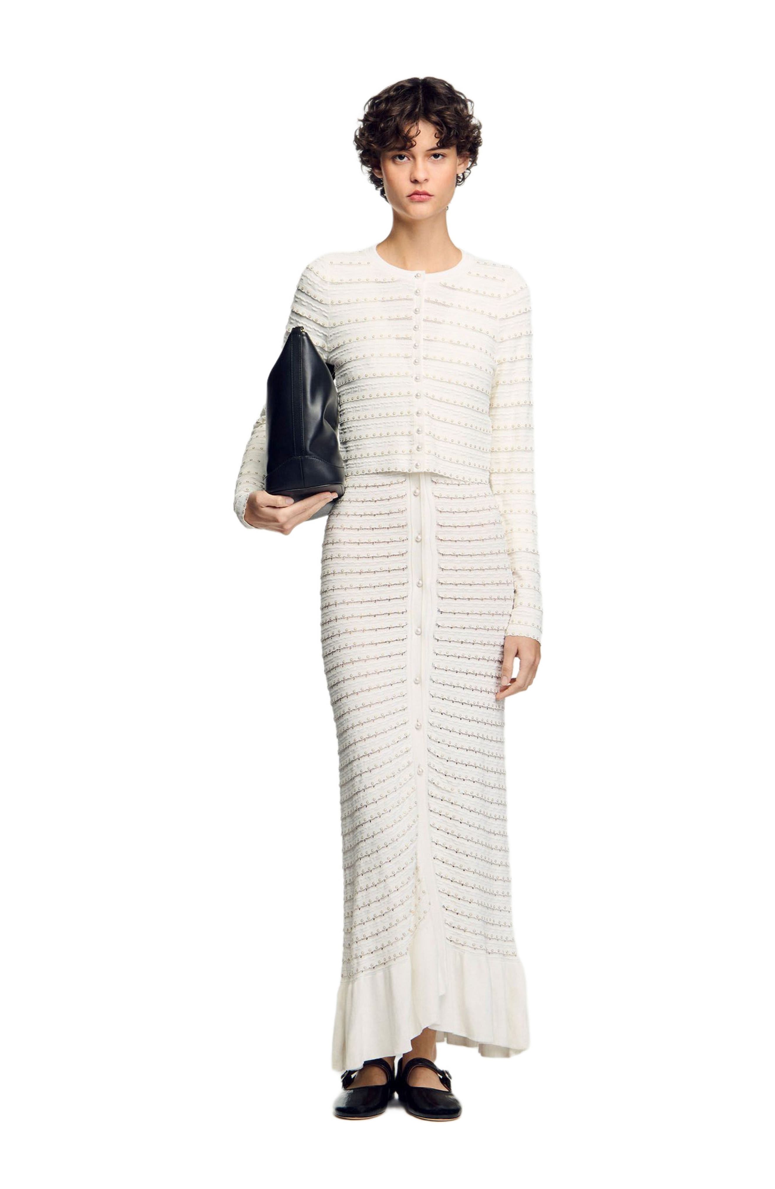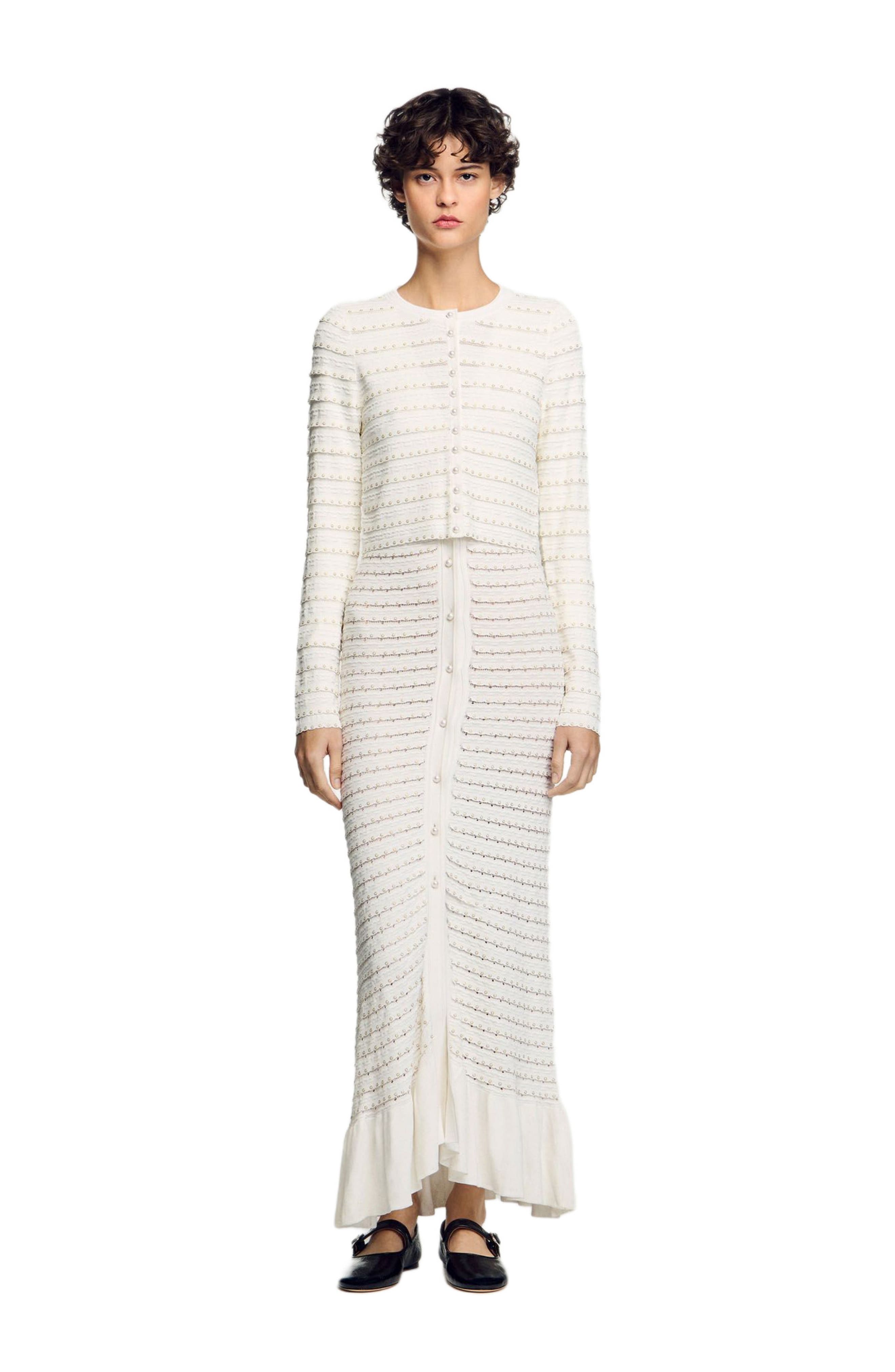 SANDRO Cropped cardigan with pearl buttons_Ecru