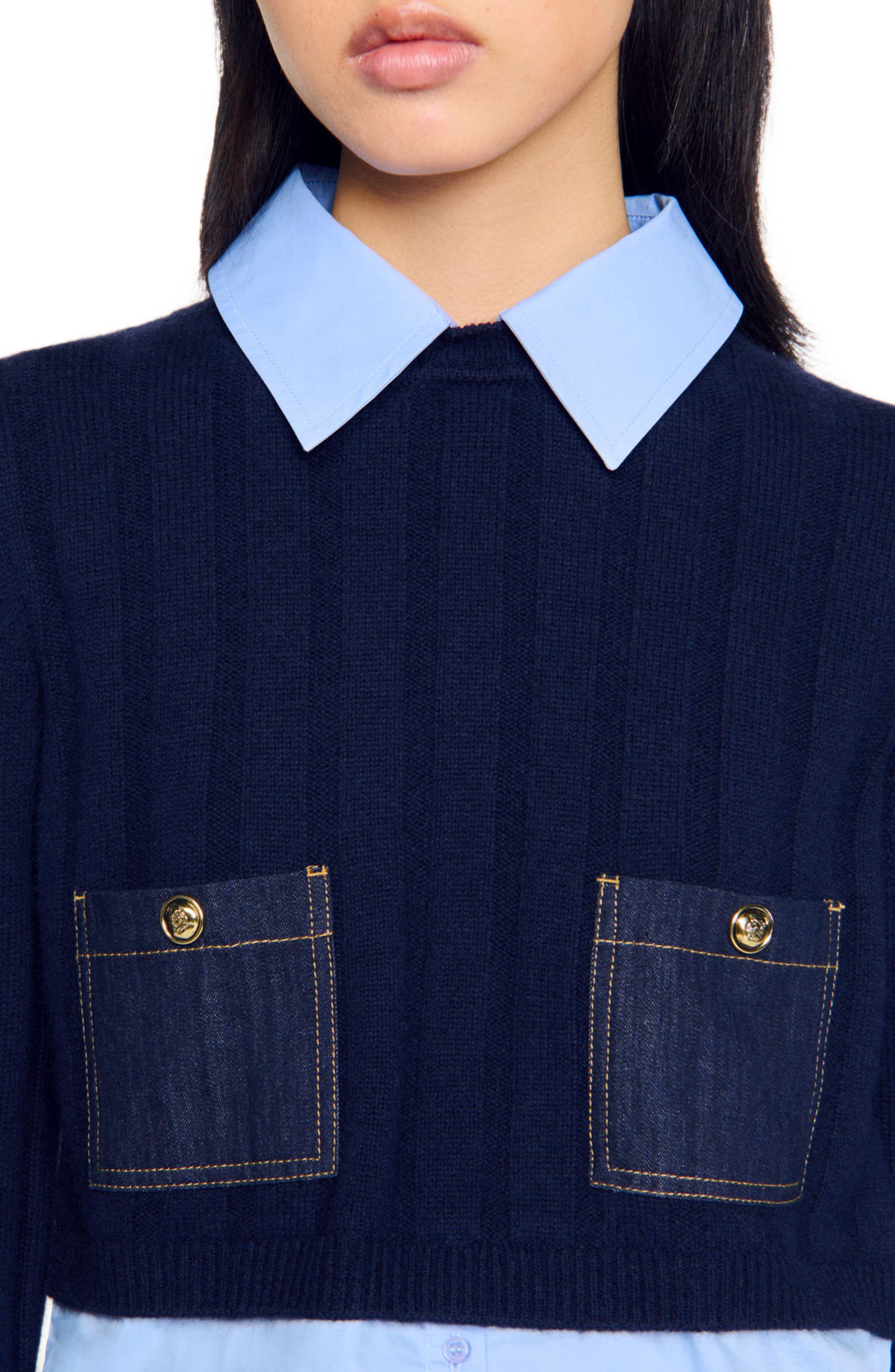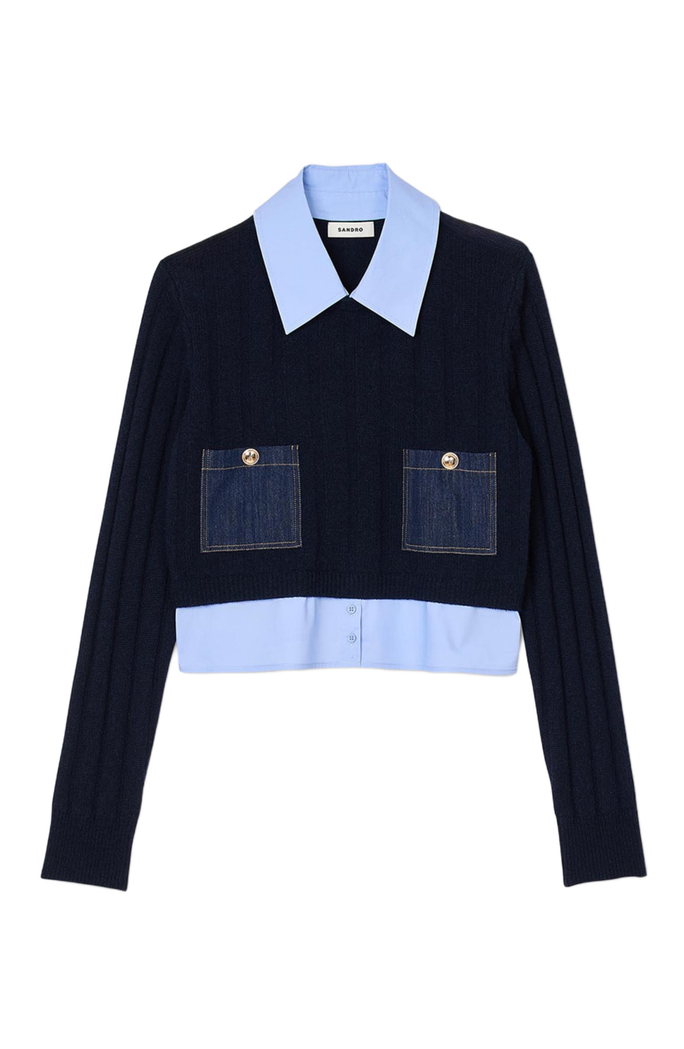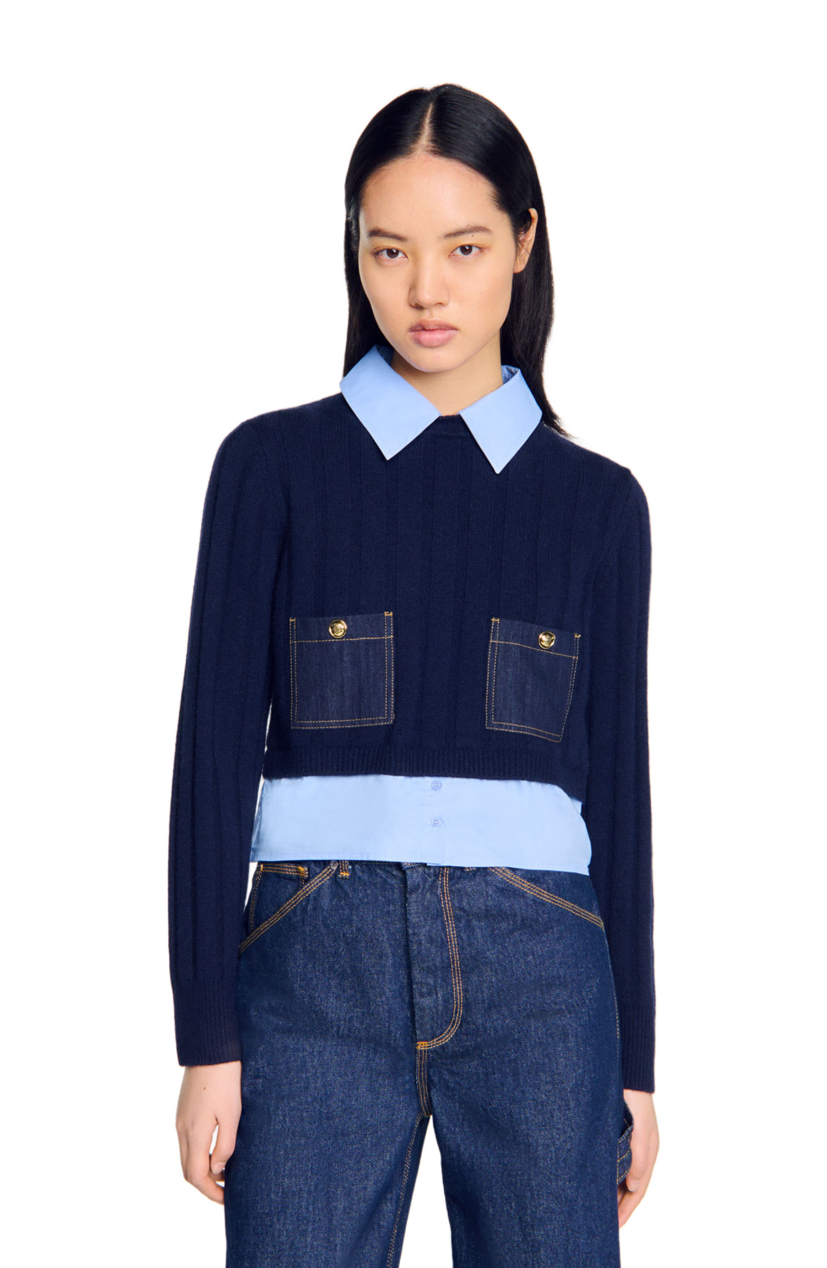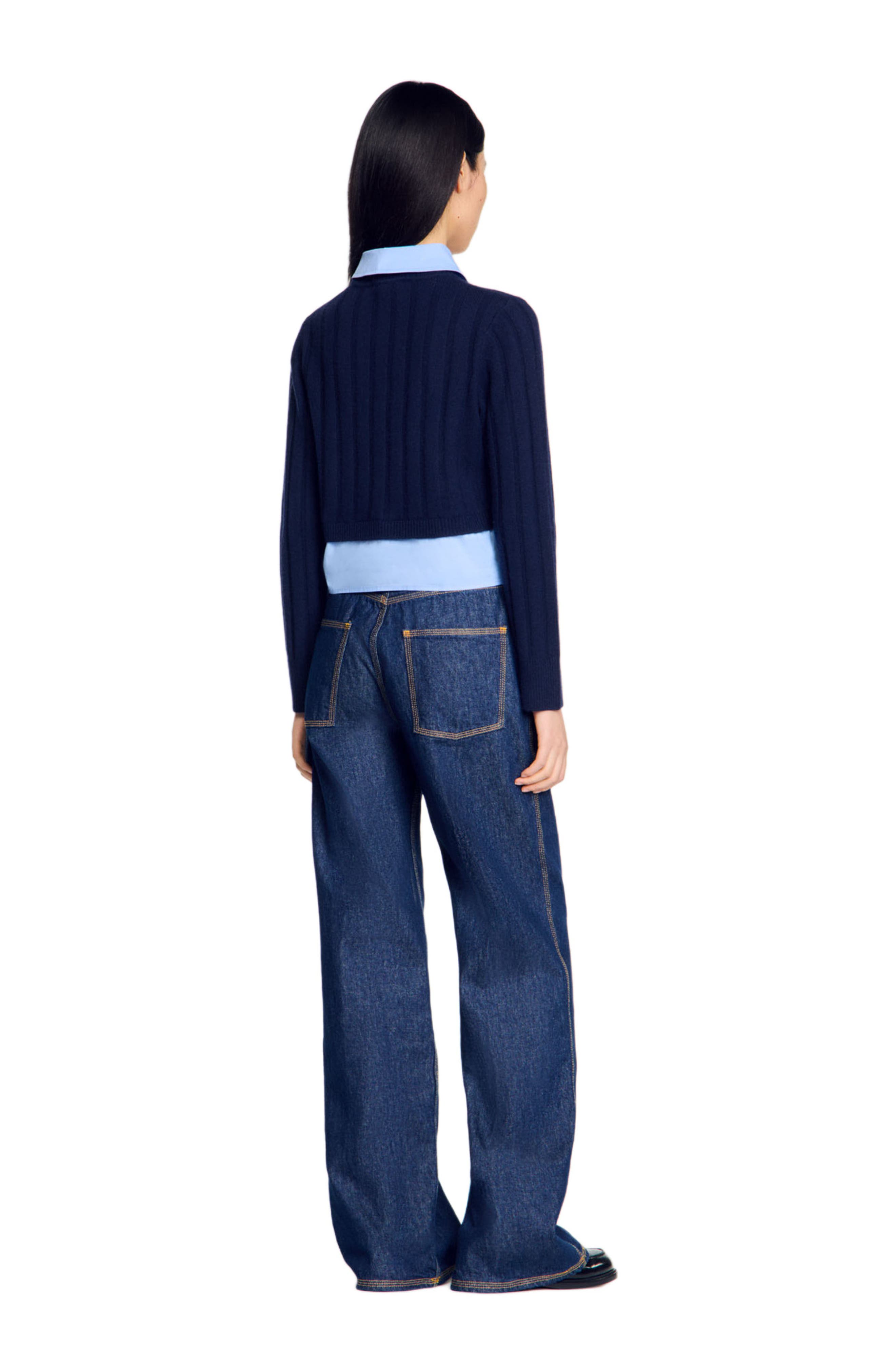 SANDRO Cropped wool and cashmere sweater_Navy Blue
