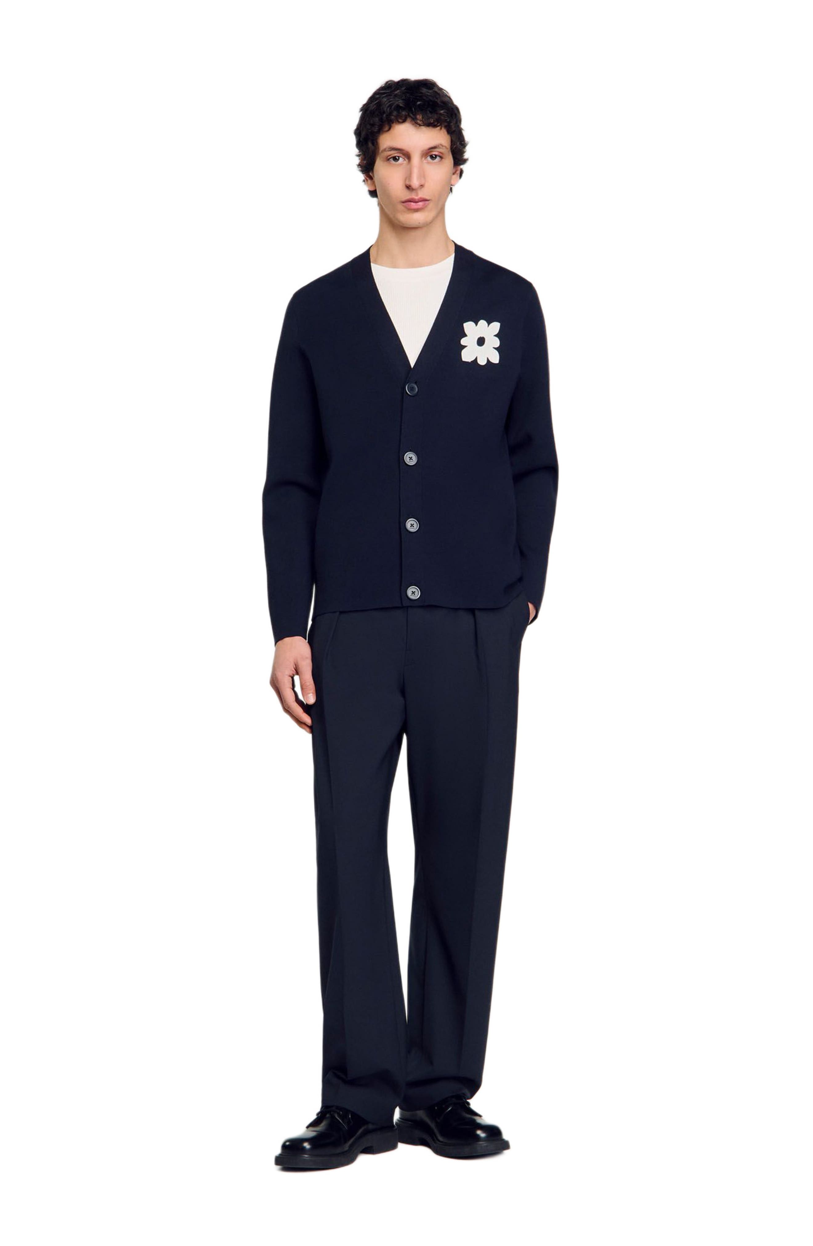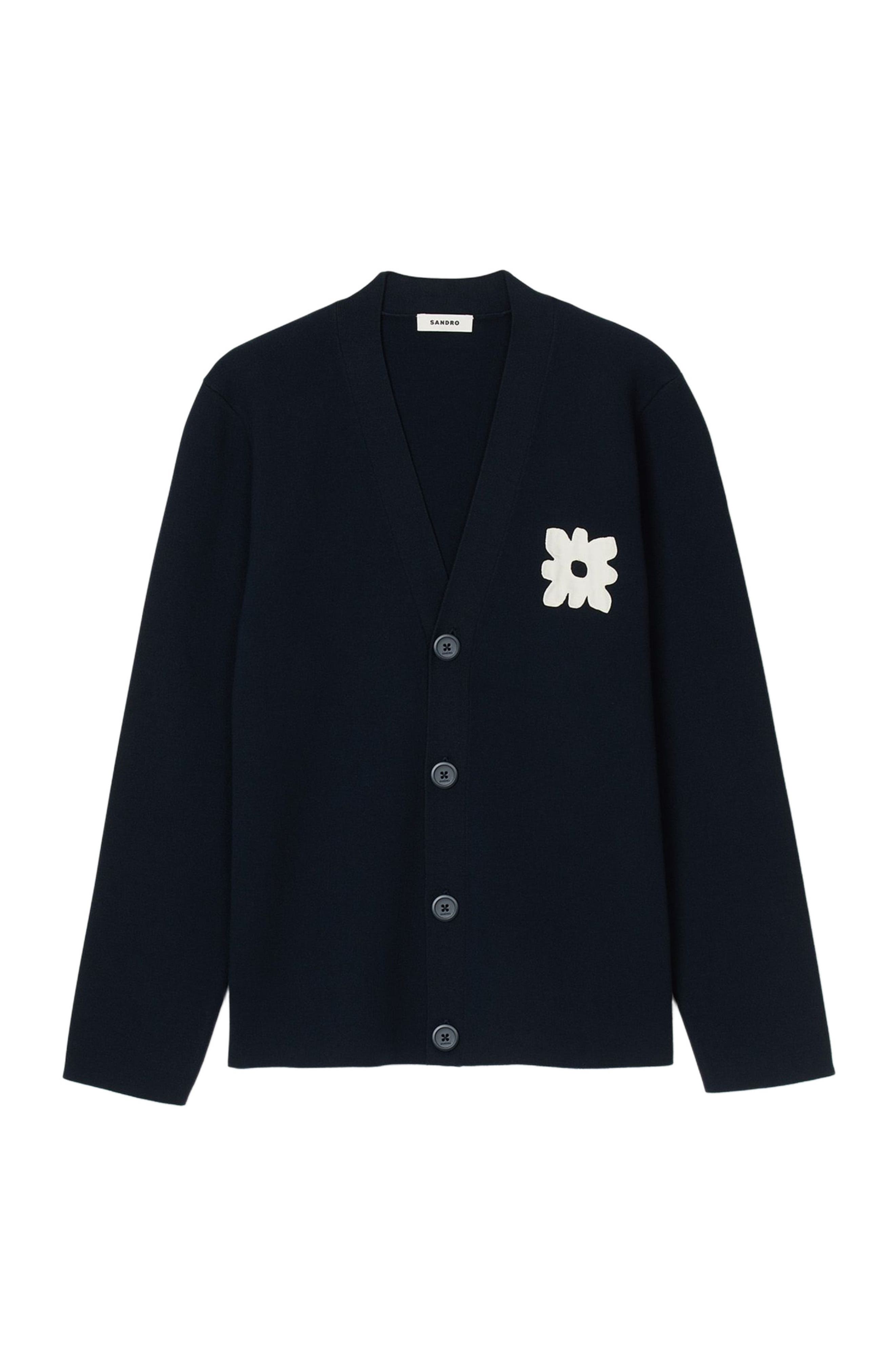 SANDRO Cardigan with flower detail_Navy Blue
