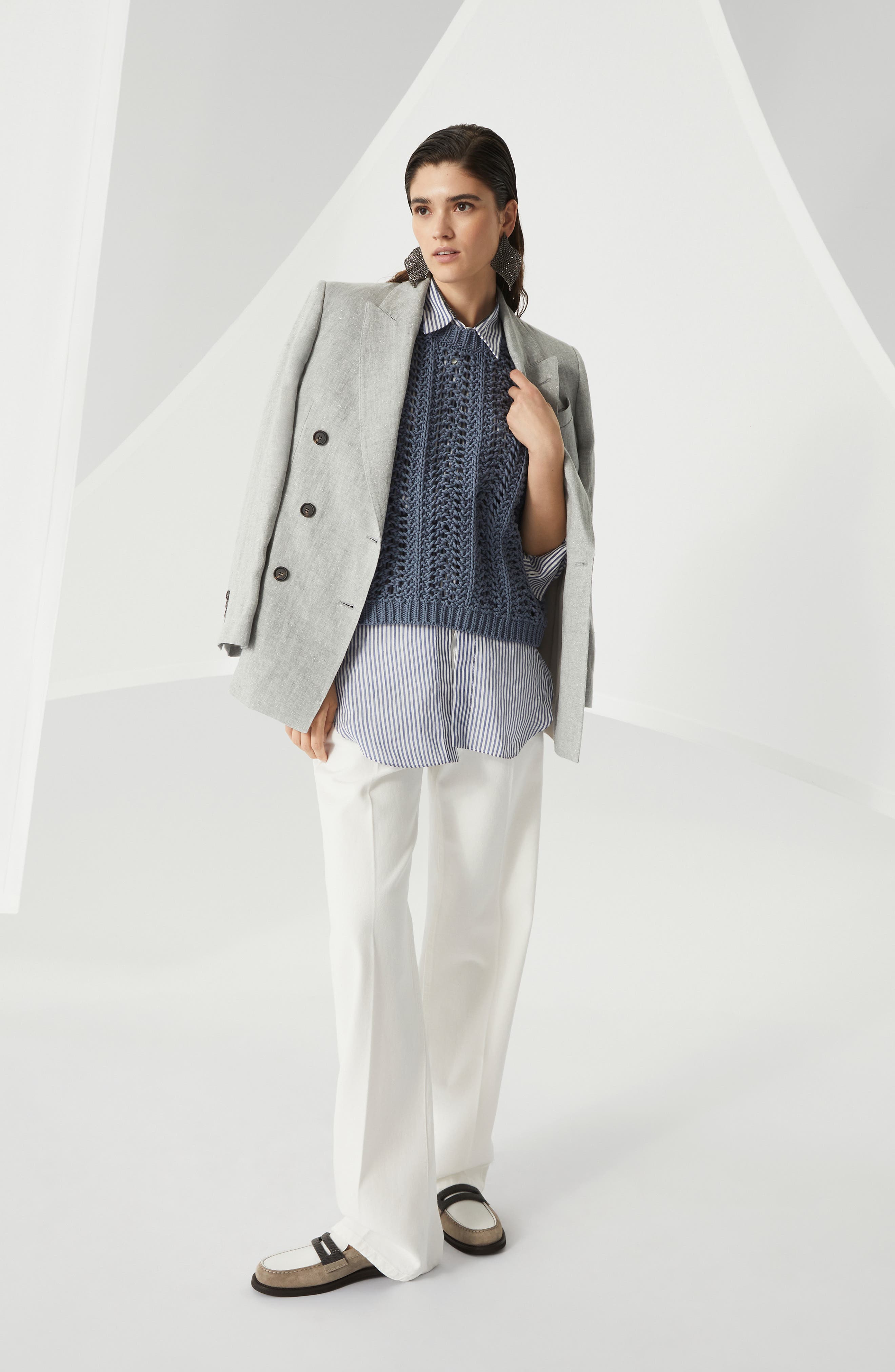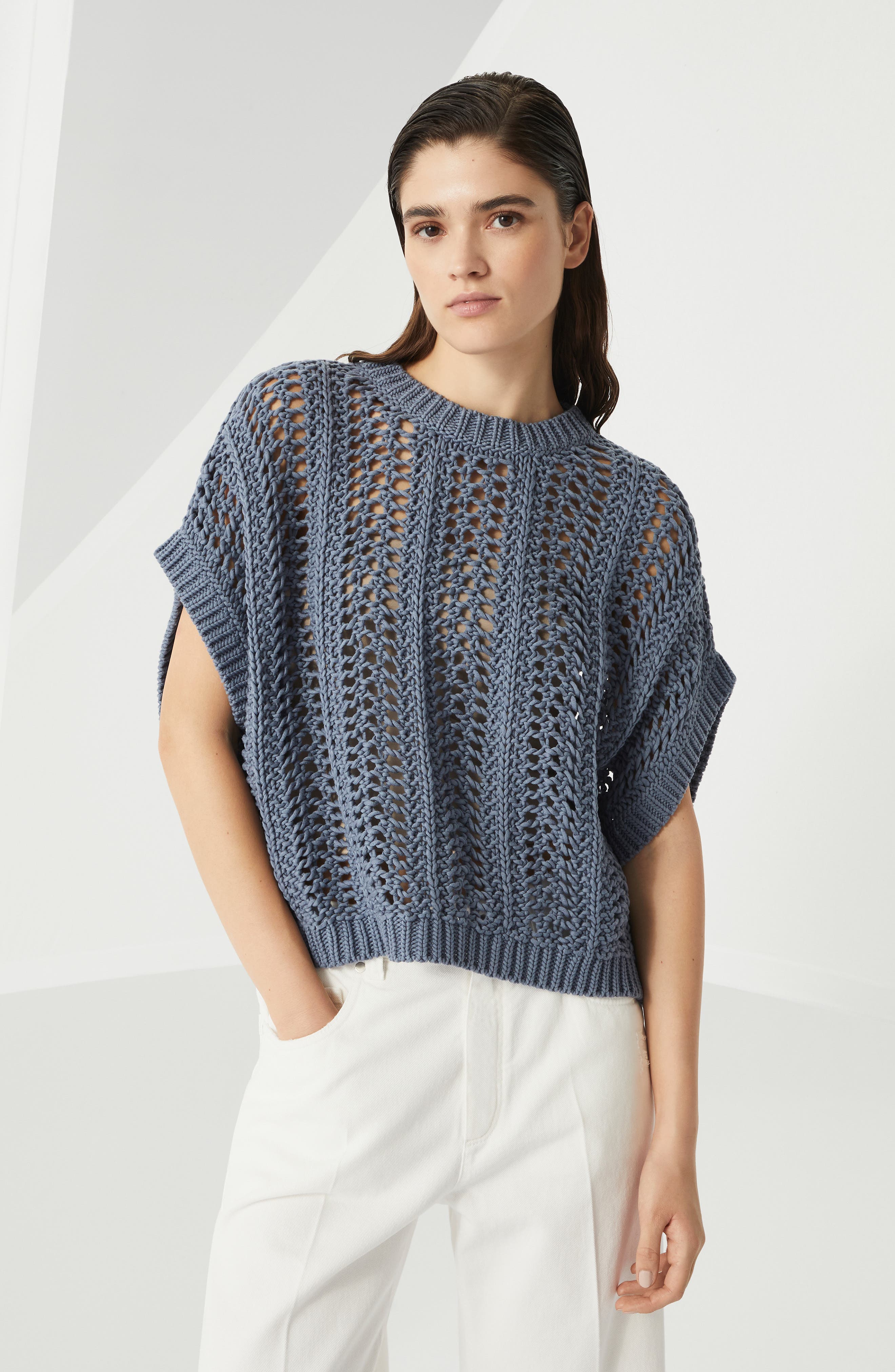 Brunello Cucinelli Ribbed Net sweater_Avio Blue