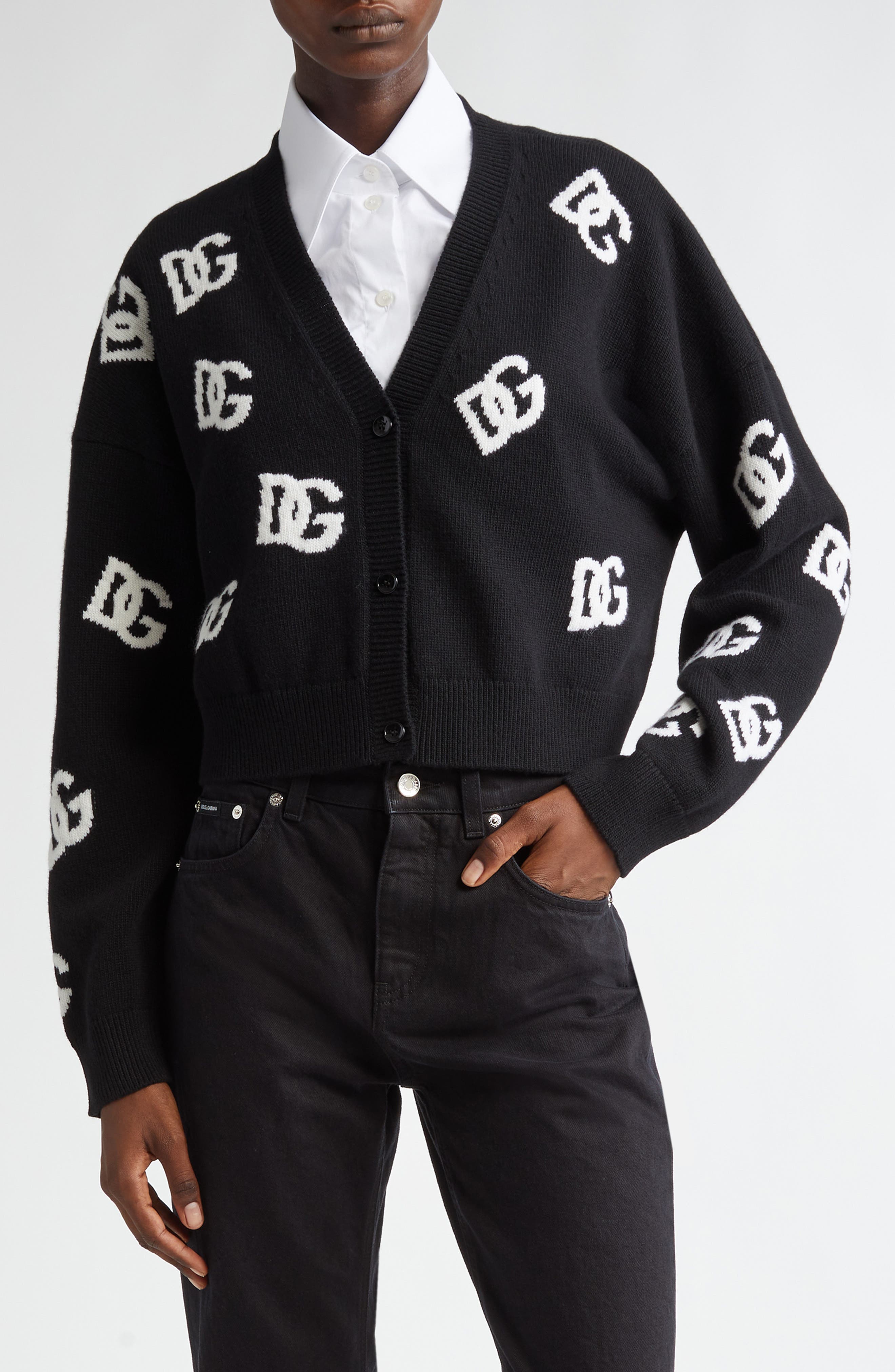 Dolce&Gabbana DG Logo Virgin Wool Crop Cardigan_N0004 Nero/ Bianco