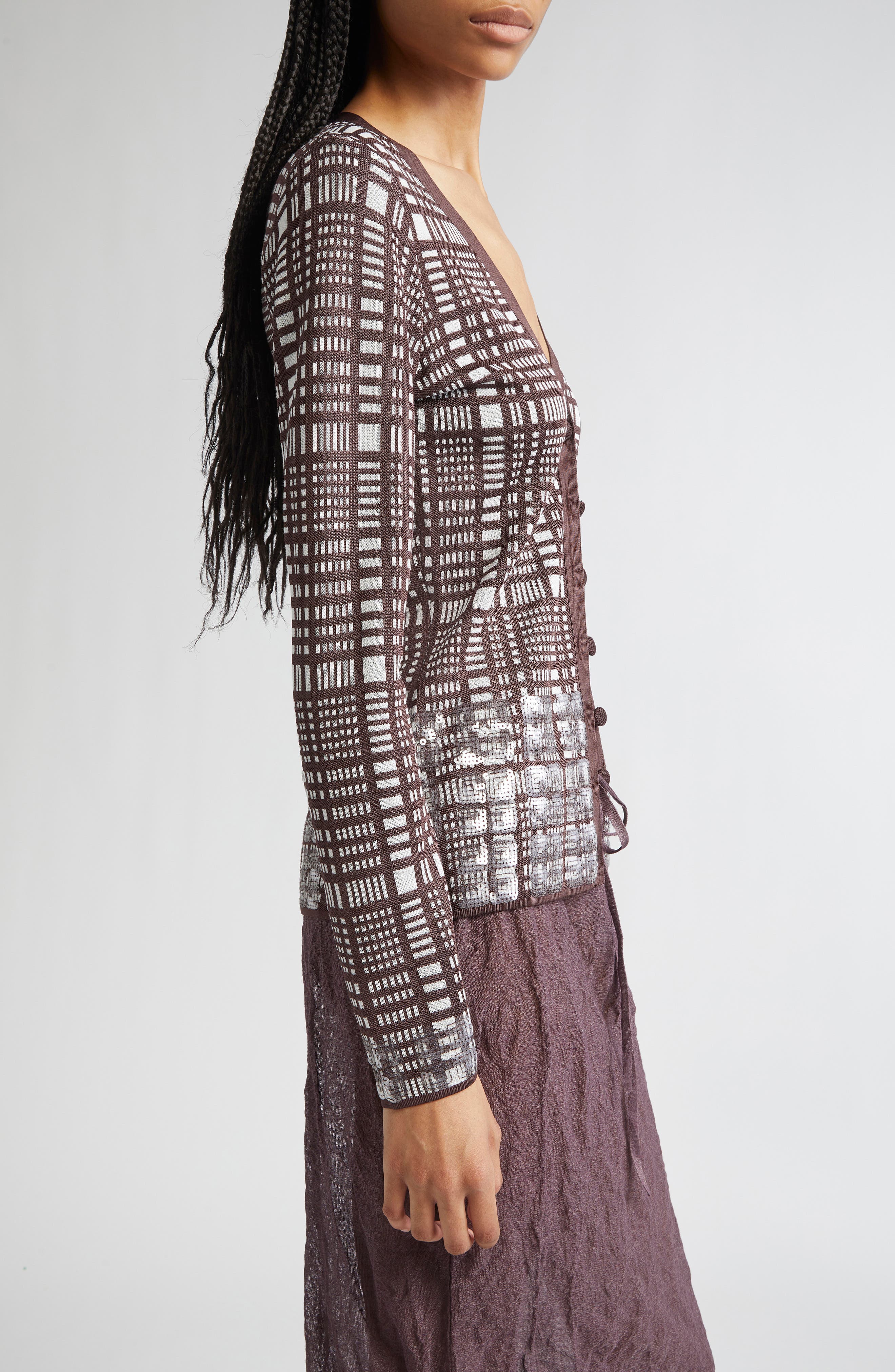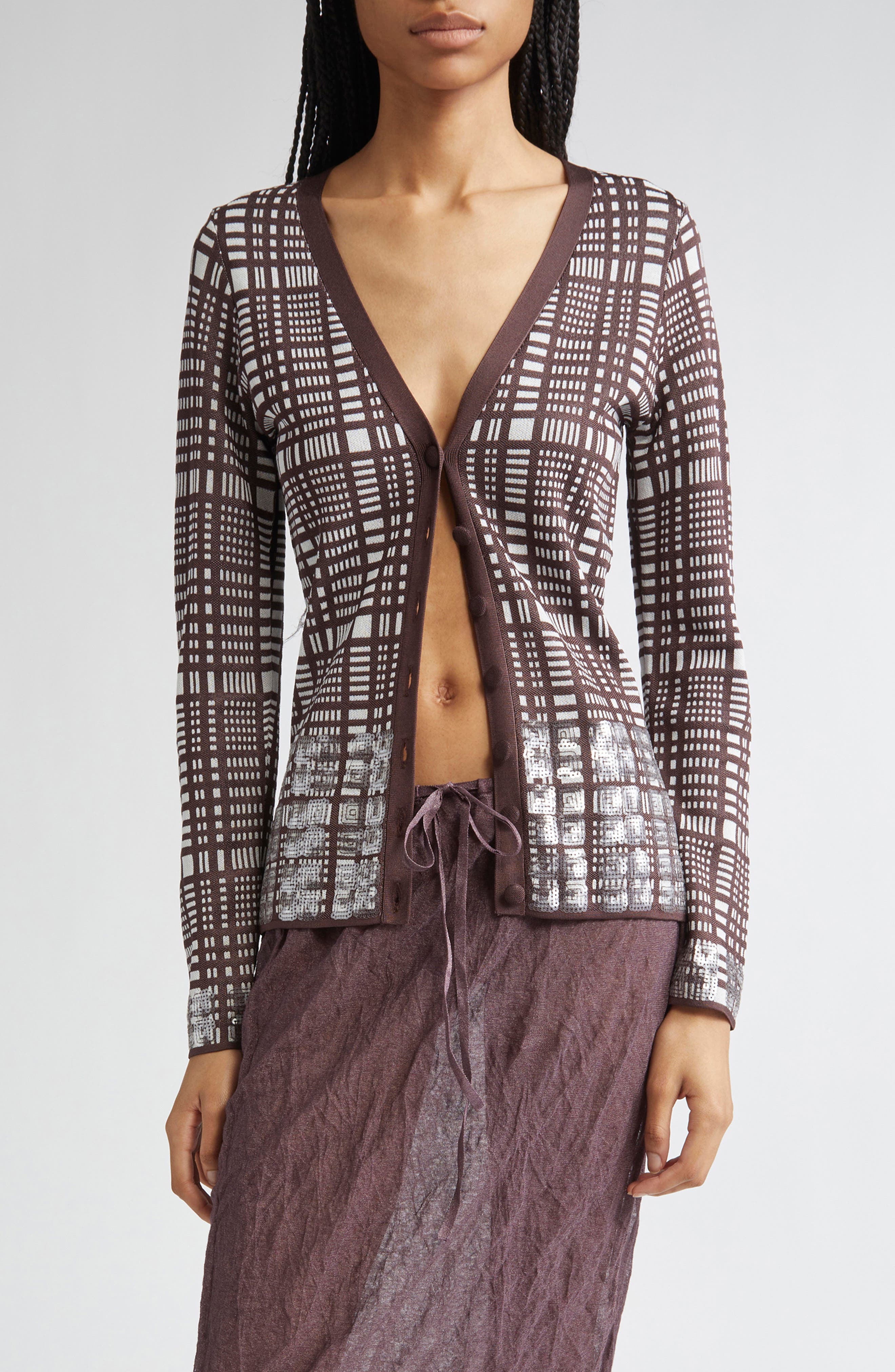 ZANKOV Elise Geo Jacquard Sequin Cardigan_Gamay