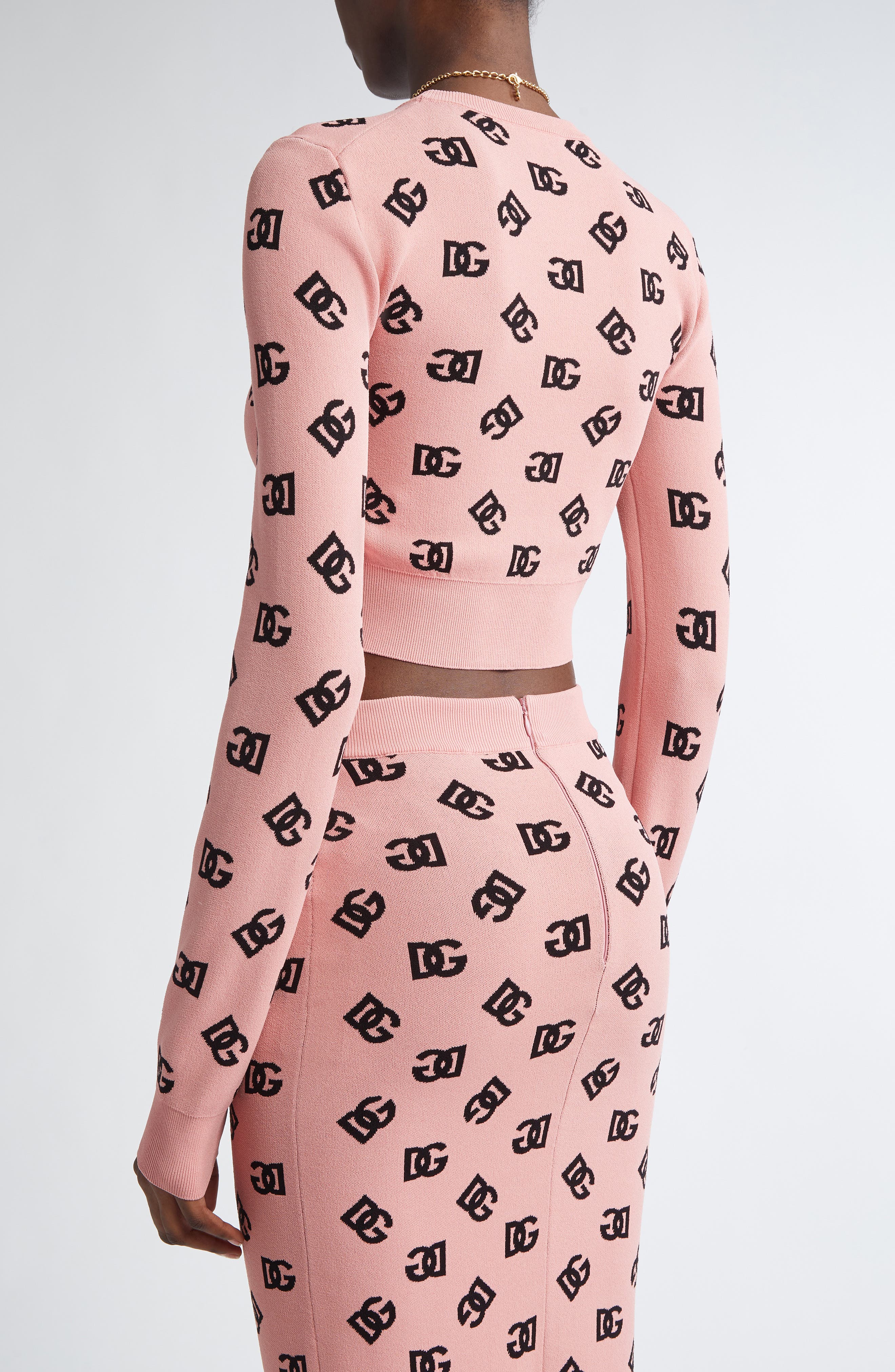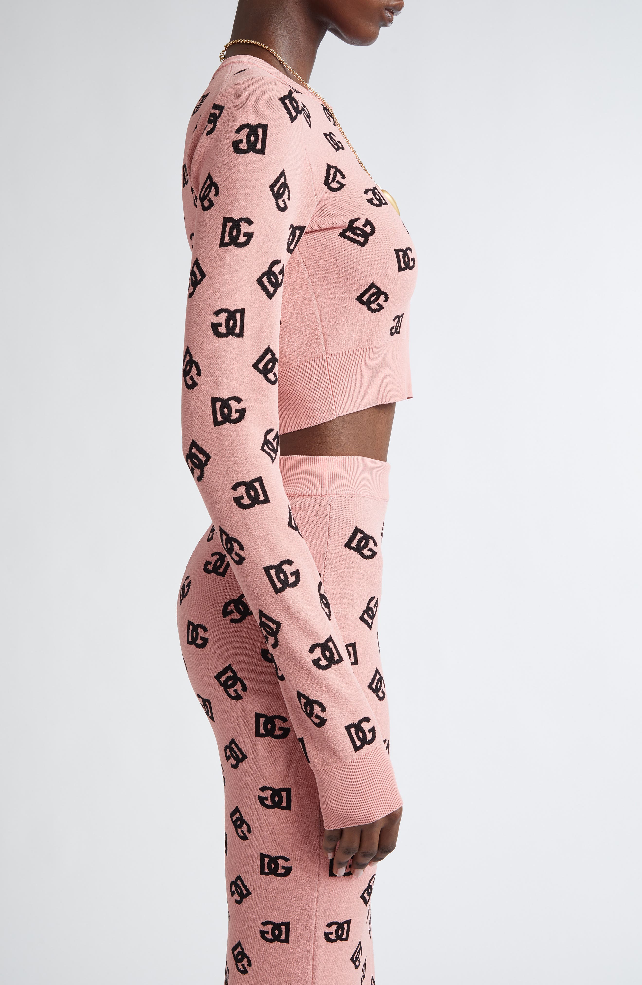 Dolce&Gabbana Logo Jacquard Crop Crewneck Sweater_F0473 Rosa Polvere Scuro