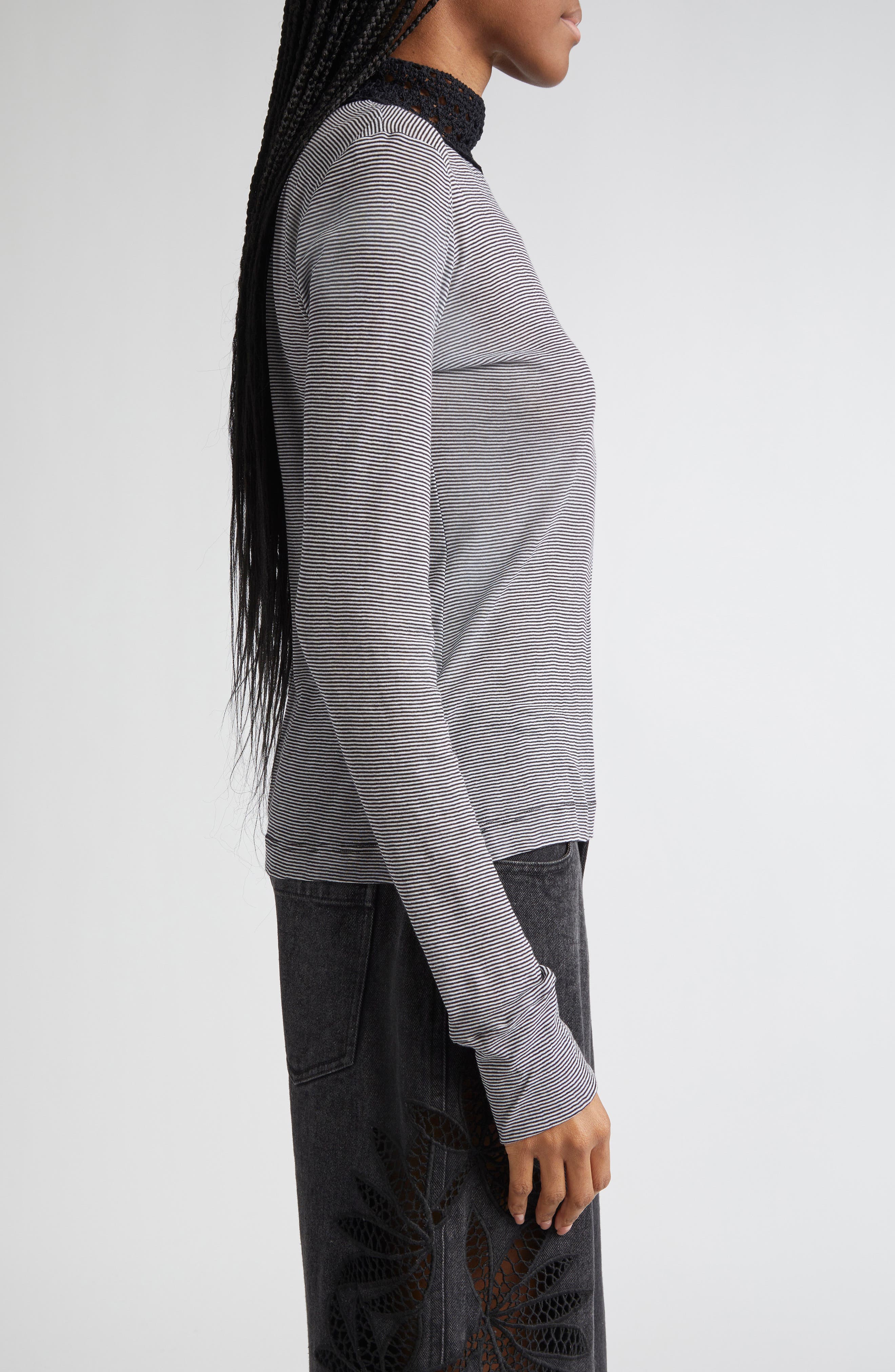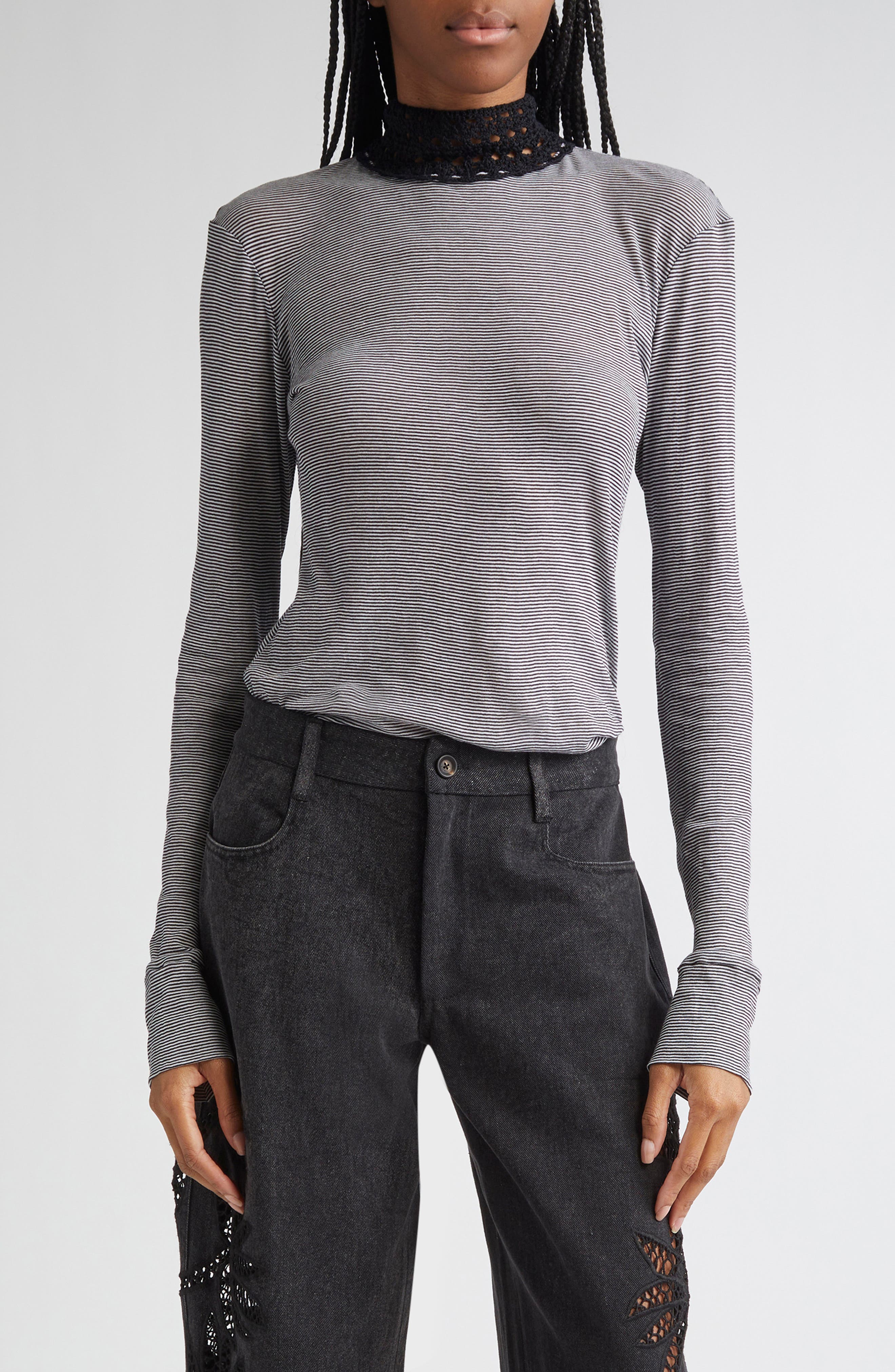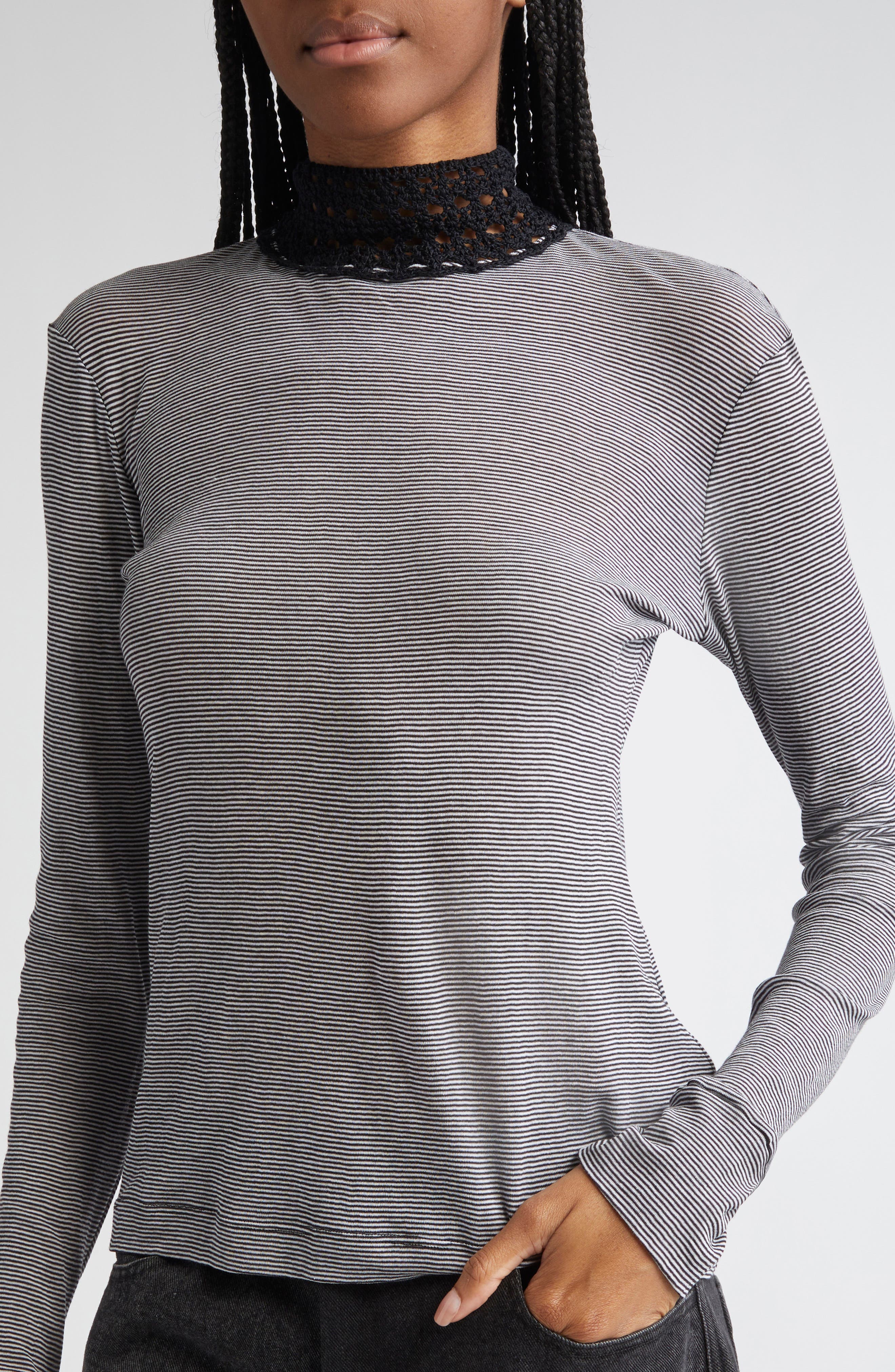 Diotima Saada Crochet Mock Neck Stripe Top_Black-White
