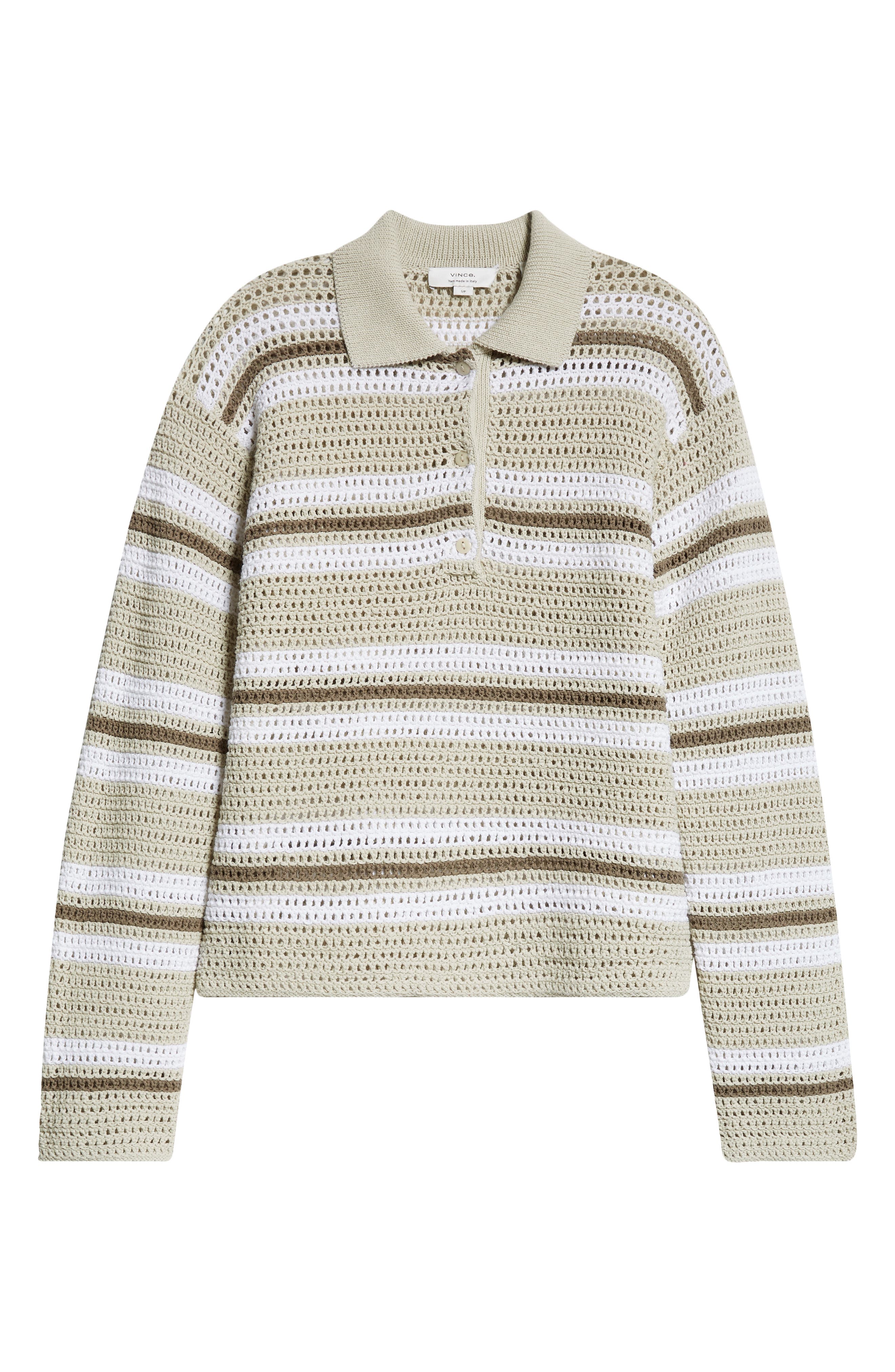 Vince Open Stitch Stripe Polo Sweater_White Stone Combo