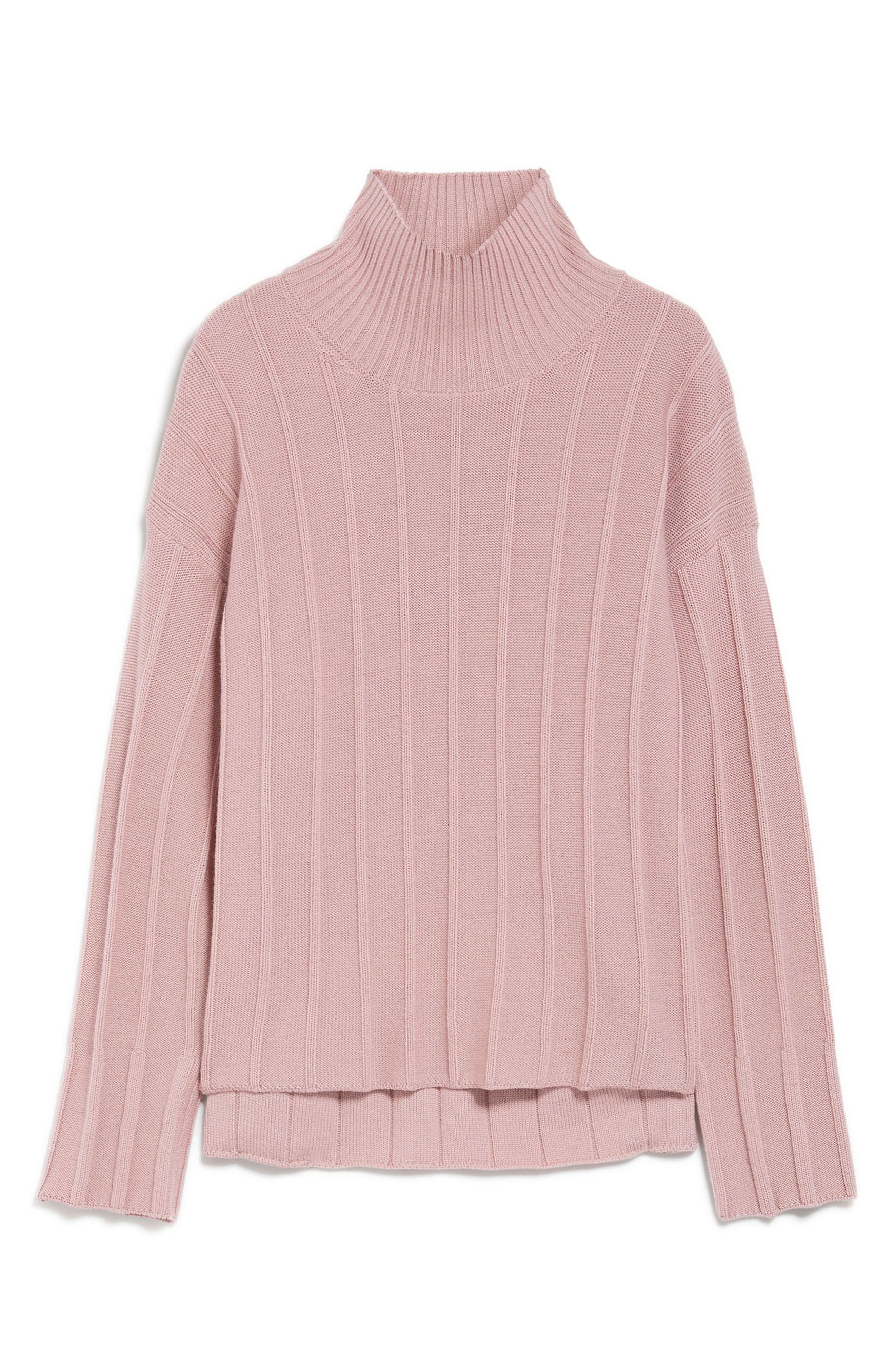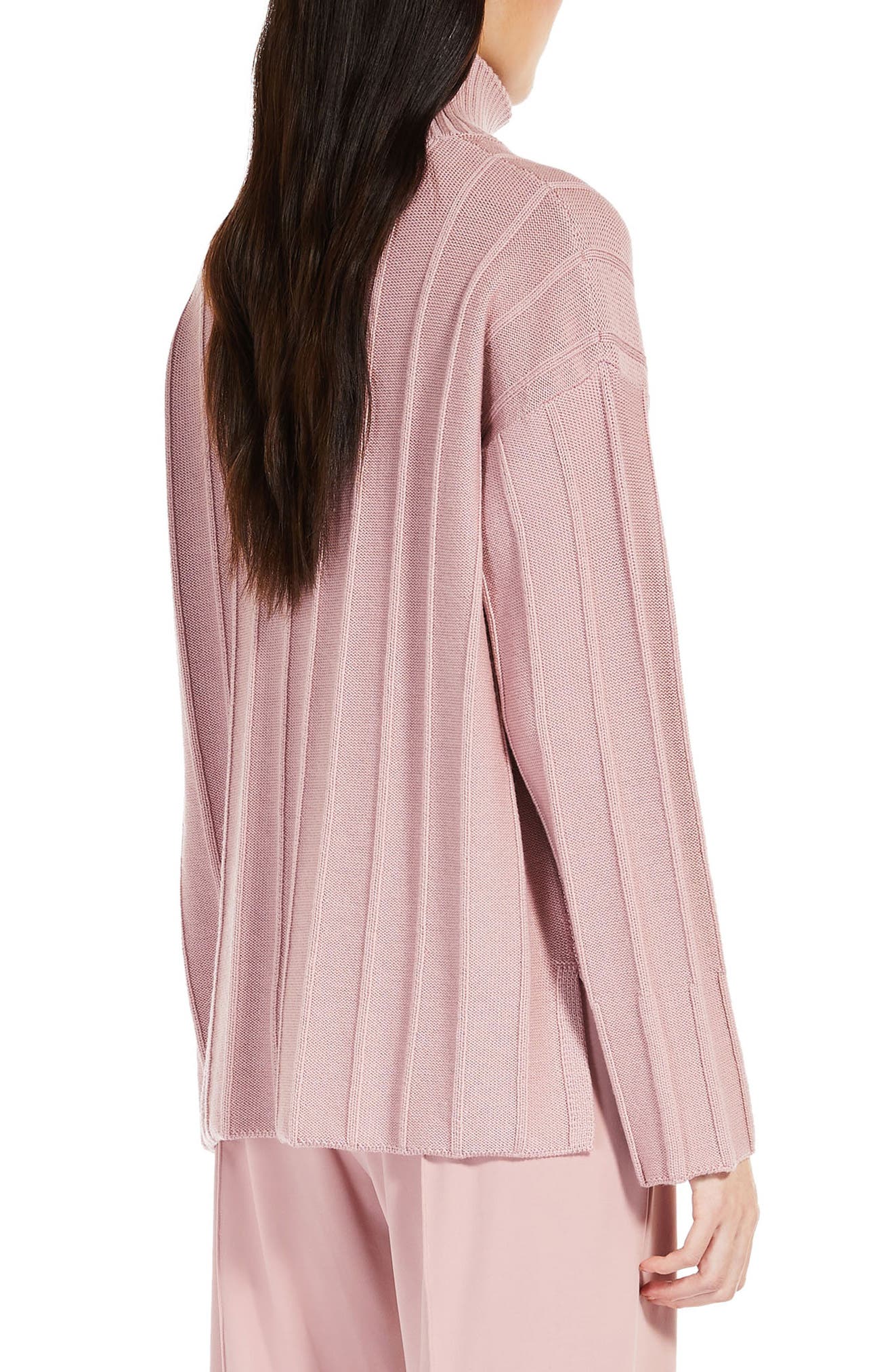 Max Mara Leisure Beira High-Low Virgin Wool Rib Sweater_Pink