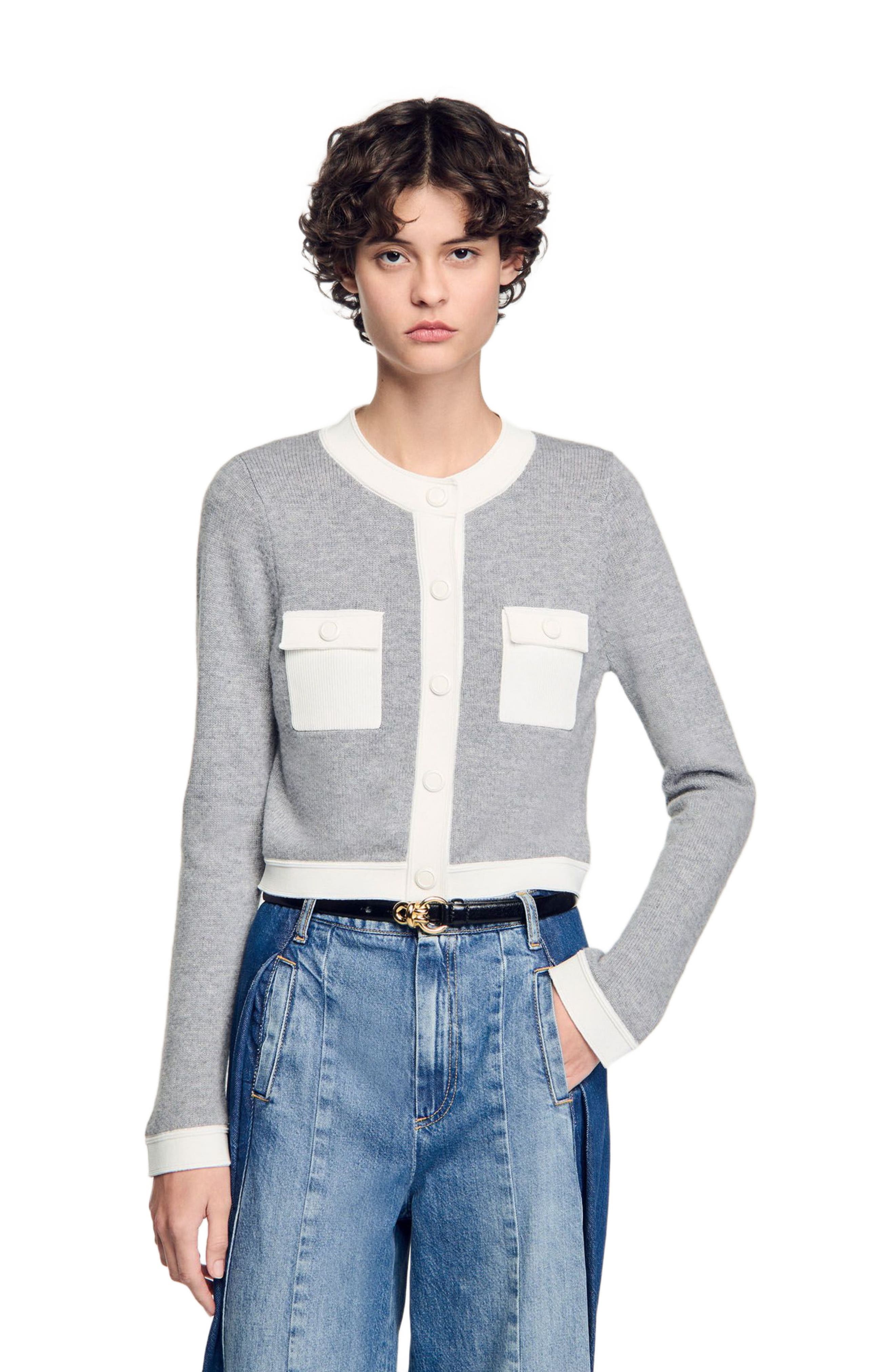 SANDRO Two-tone cardigan_Grey