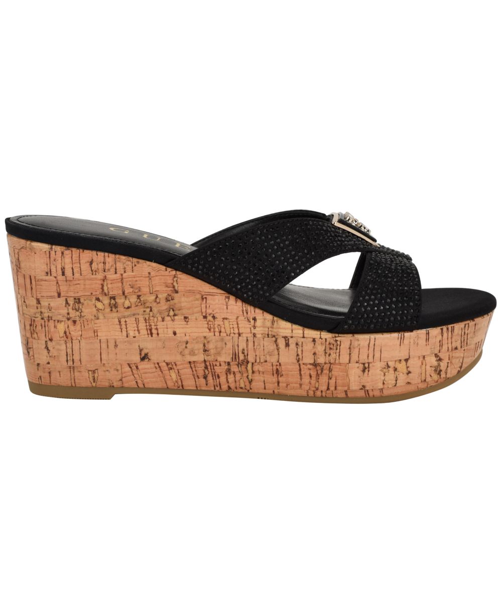 GUESS Womens Lonaa Rhinestone Cork Platform Wedge Sandals