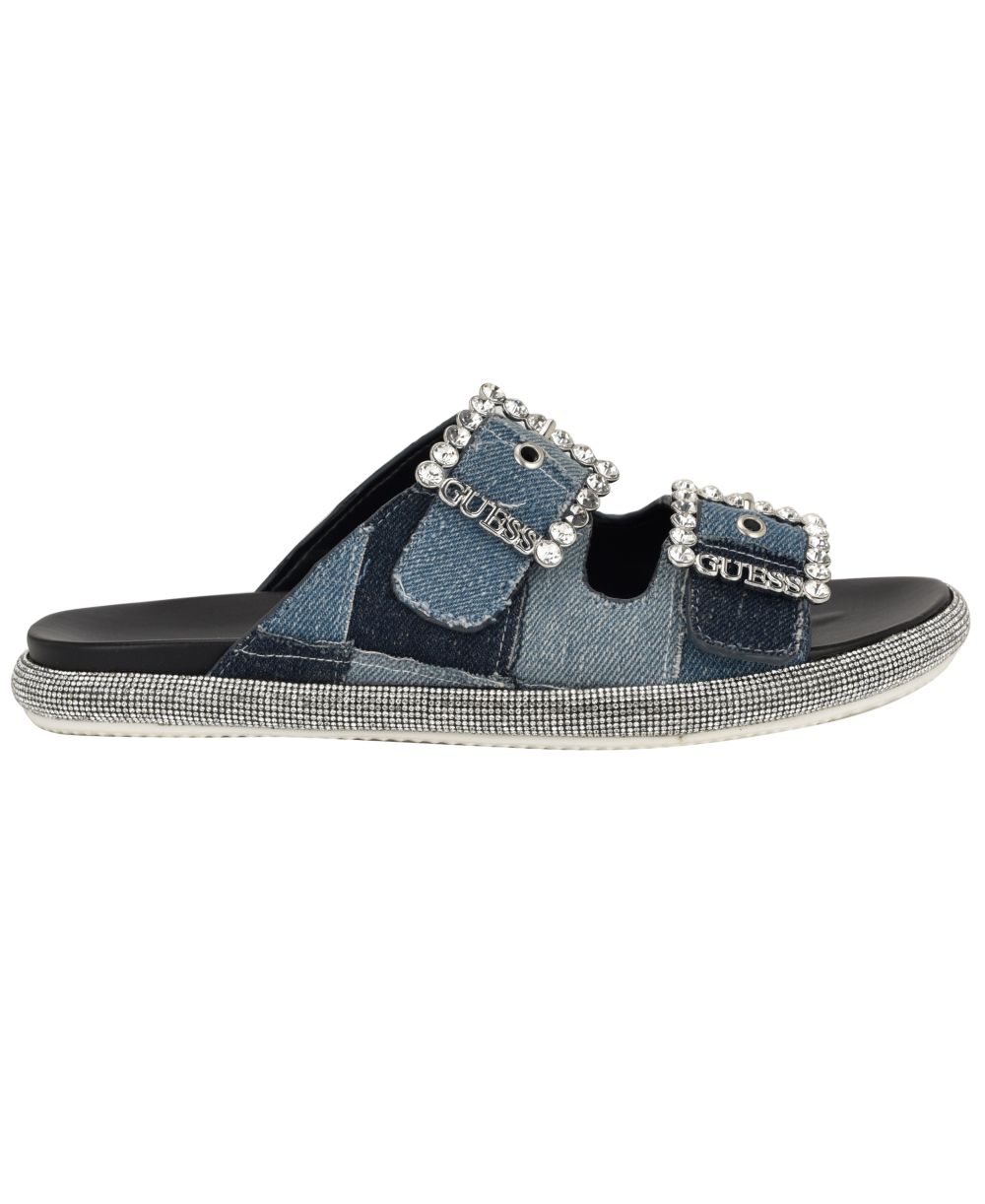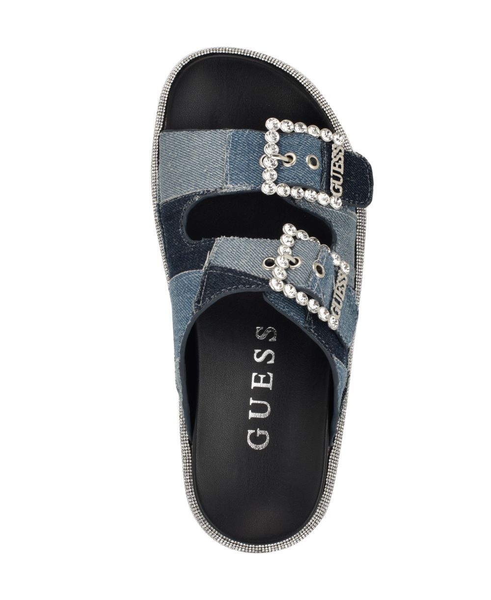 GUESS Womens Funzya Embellished Double Band Footbed Sandals