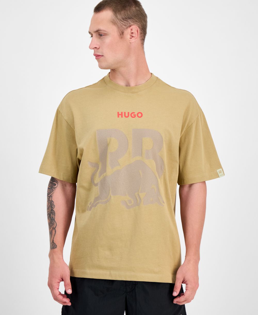 Hugo Boss Mens Washed Fanwear Oversized Short Sleeve Crewneck Bull Graphic T Shirt