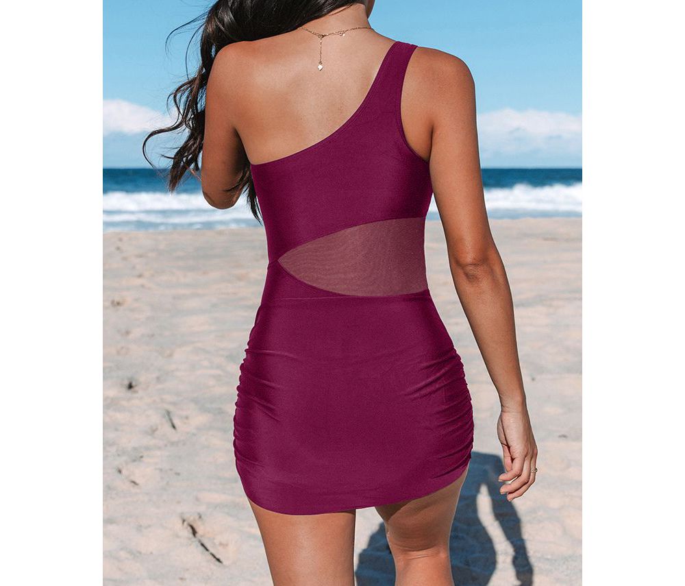 Cupshe Womens Asymmetrical Mesh Waist Swim Dress