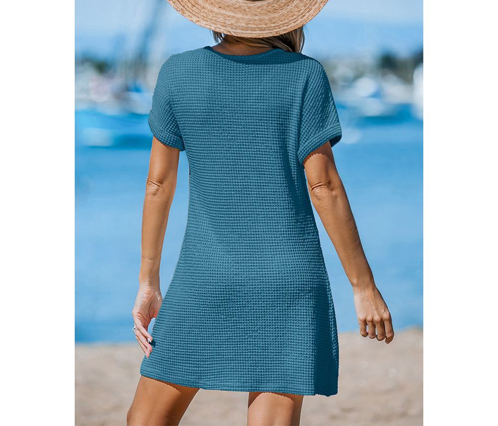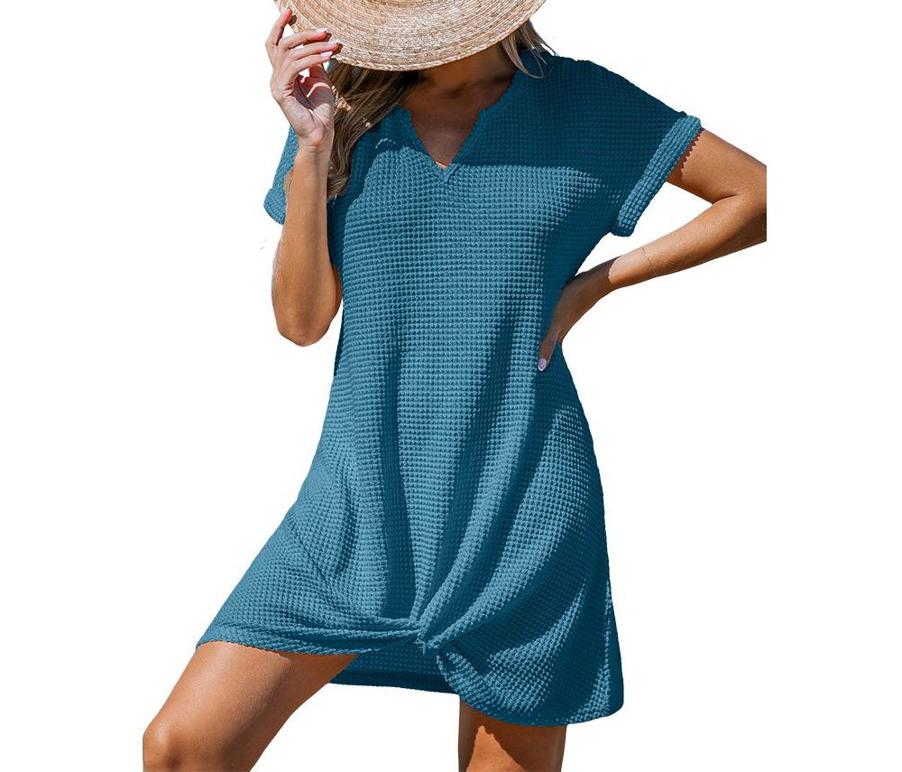 Cupshe Womens Waffle Knit Short Sleeve Hem Twist Mini Cover Up