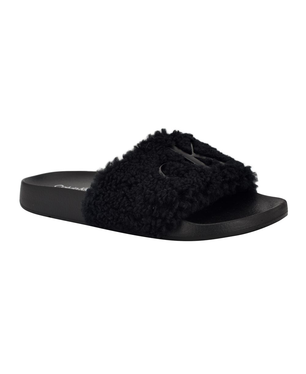 Calvin Klein Womens Amaya Fuzzy Slide Sandals