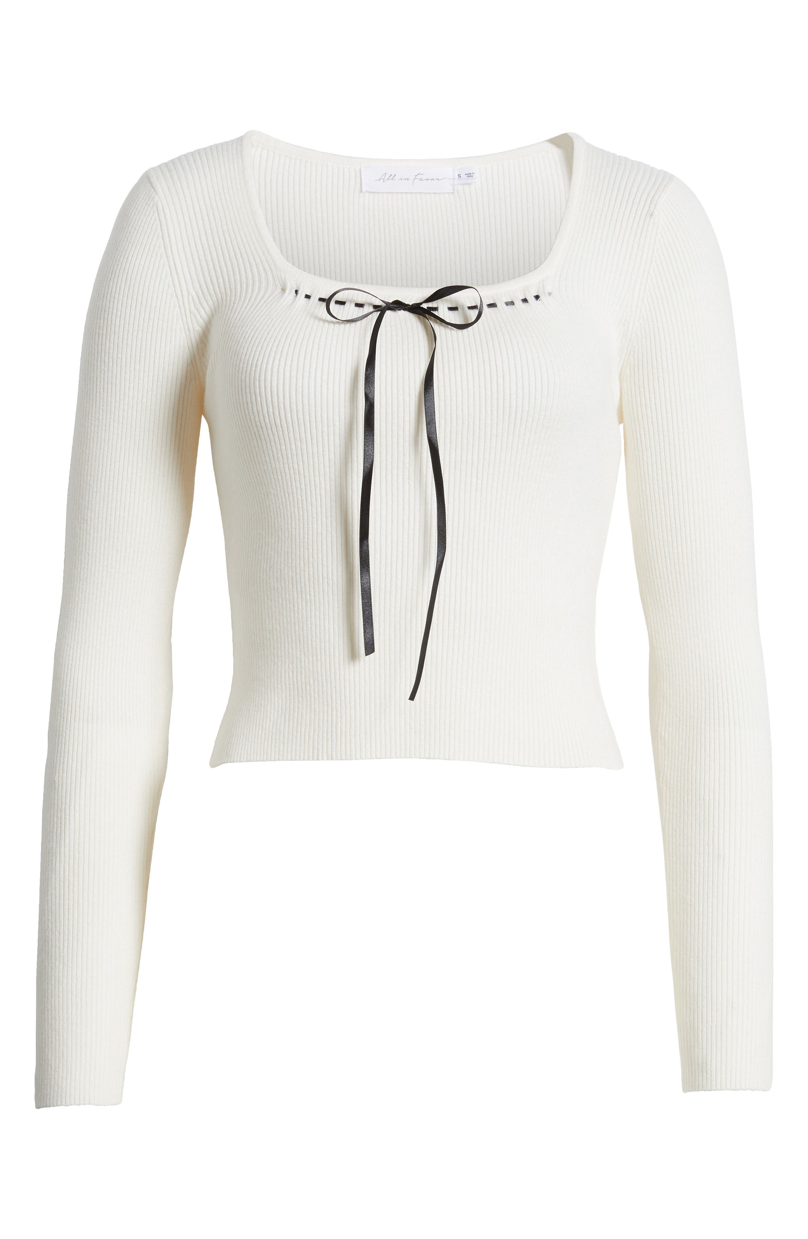 All in Favor Tie Neck Rib Sweater_Ivory Blac