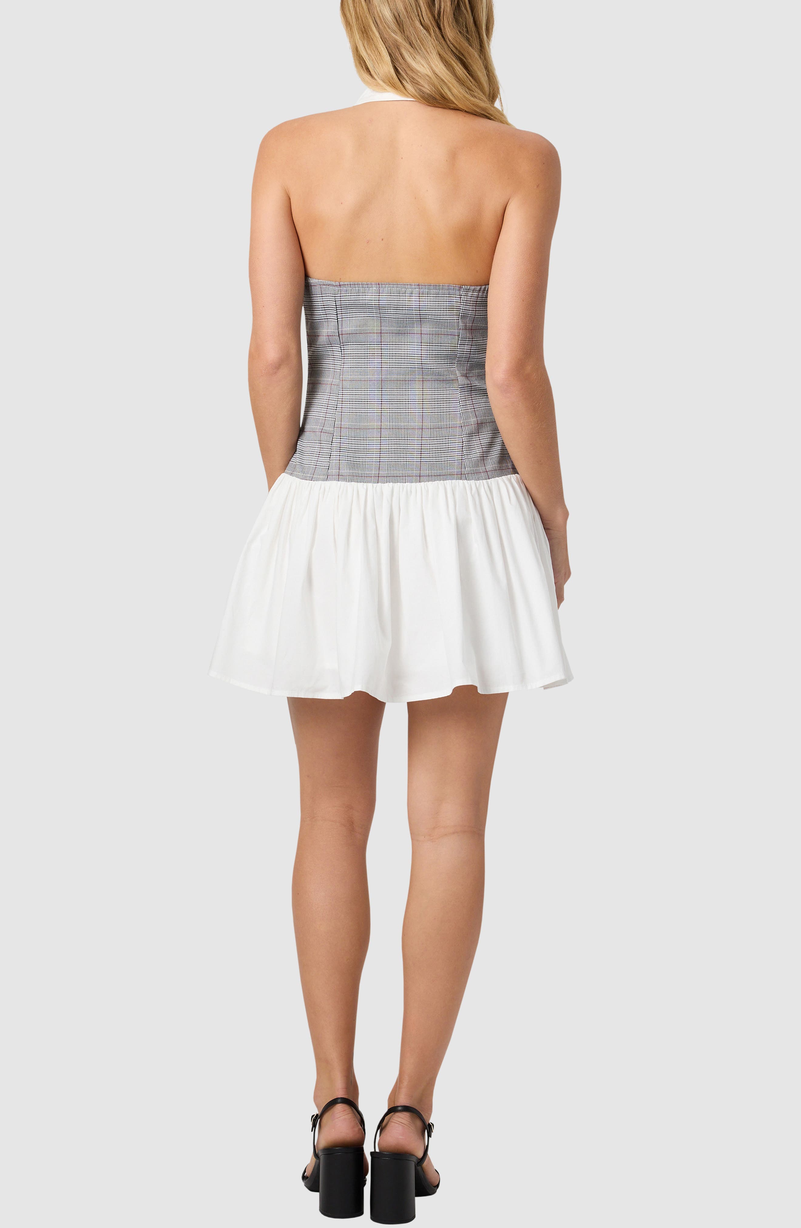 All in Favor Contrast Collar Mixed Media Minidress_Grey Black Plaid