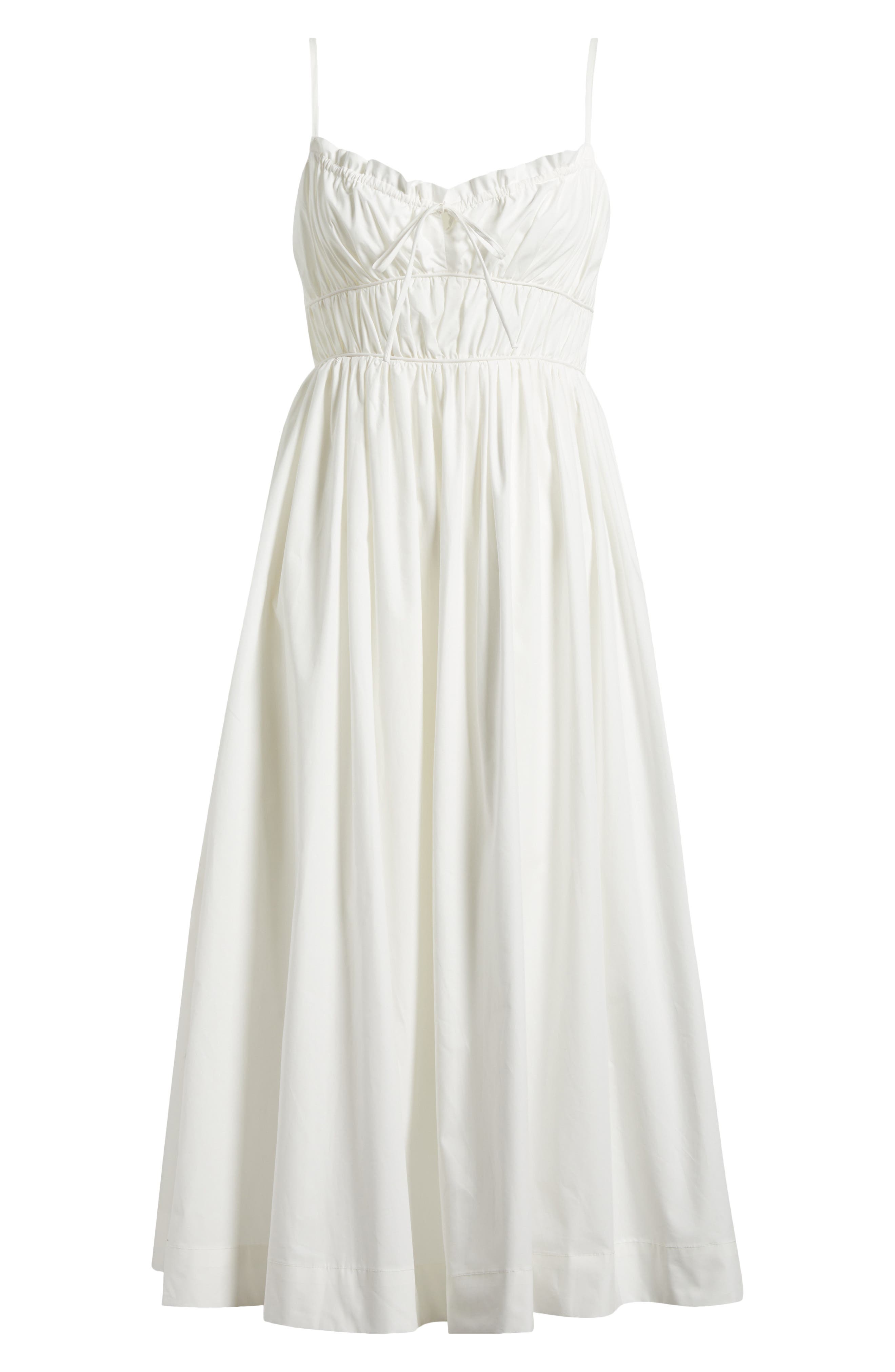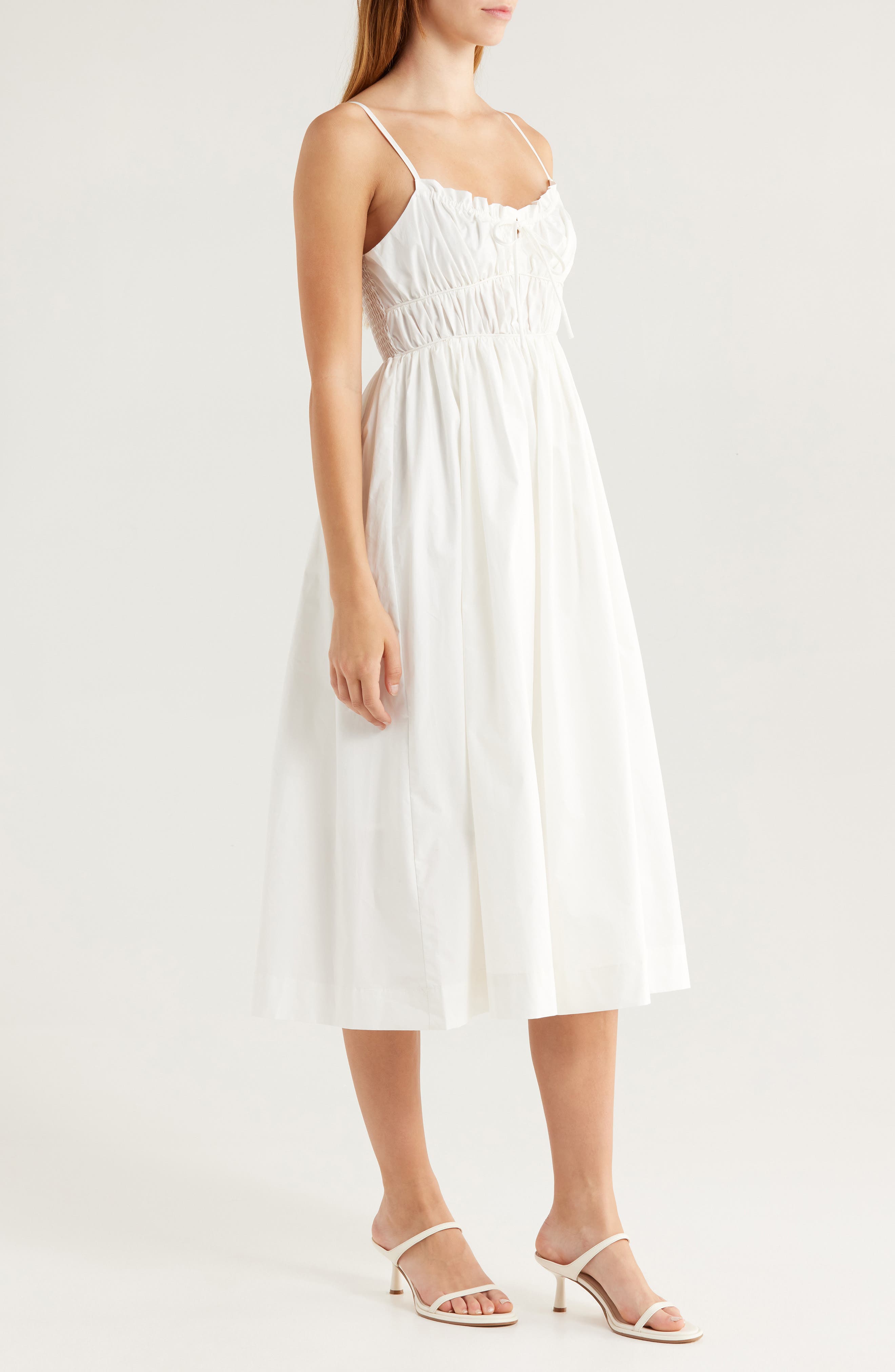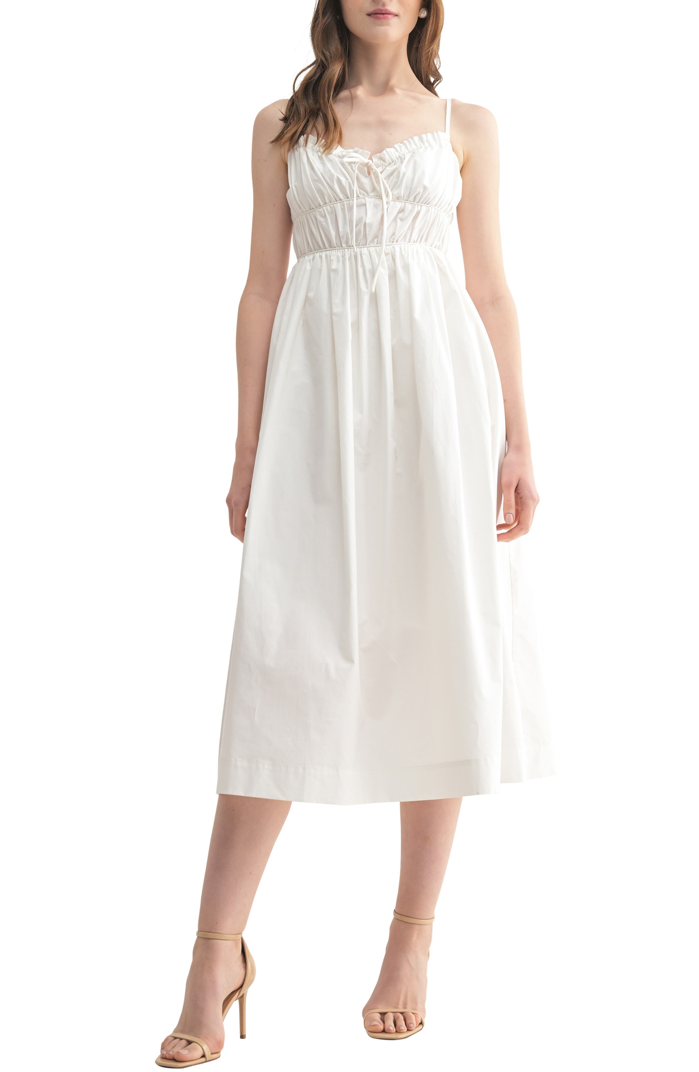 All in Favor Cotton Poplin Shirred Midi Dress_White