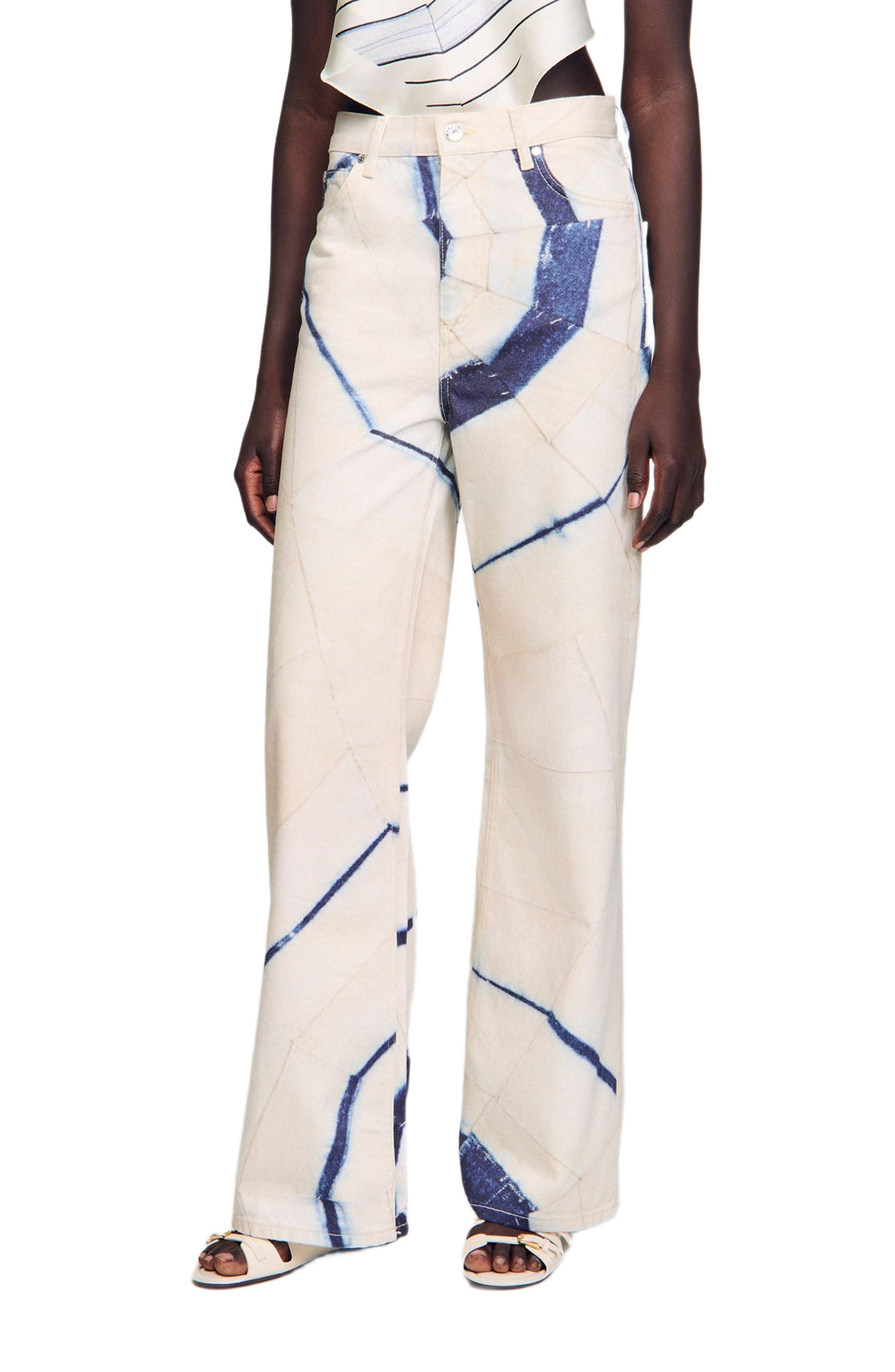 SANDRO Wide-leg striped jeans_Ecru