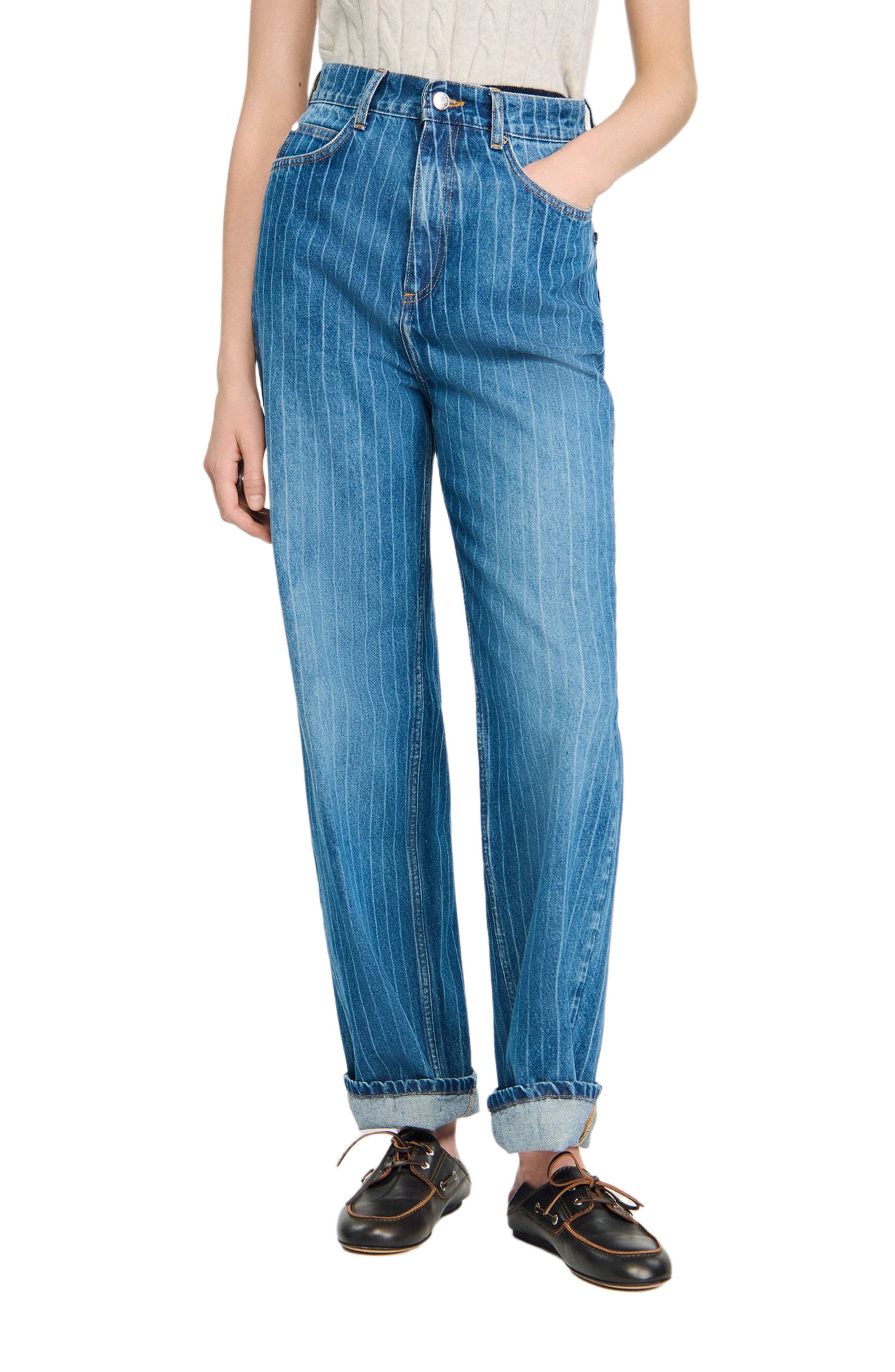 SANDRO Wide-leg pinstriped jeans_Blue Jean