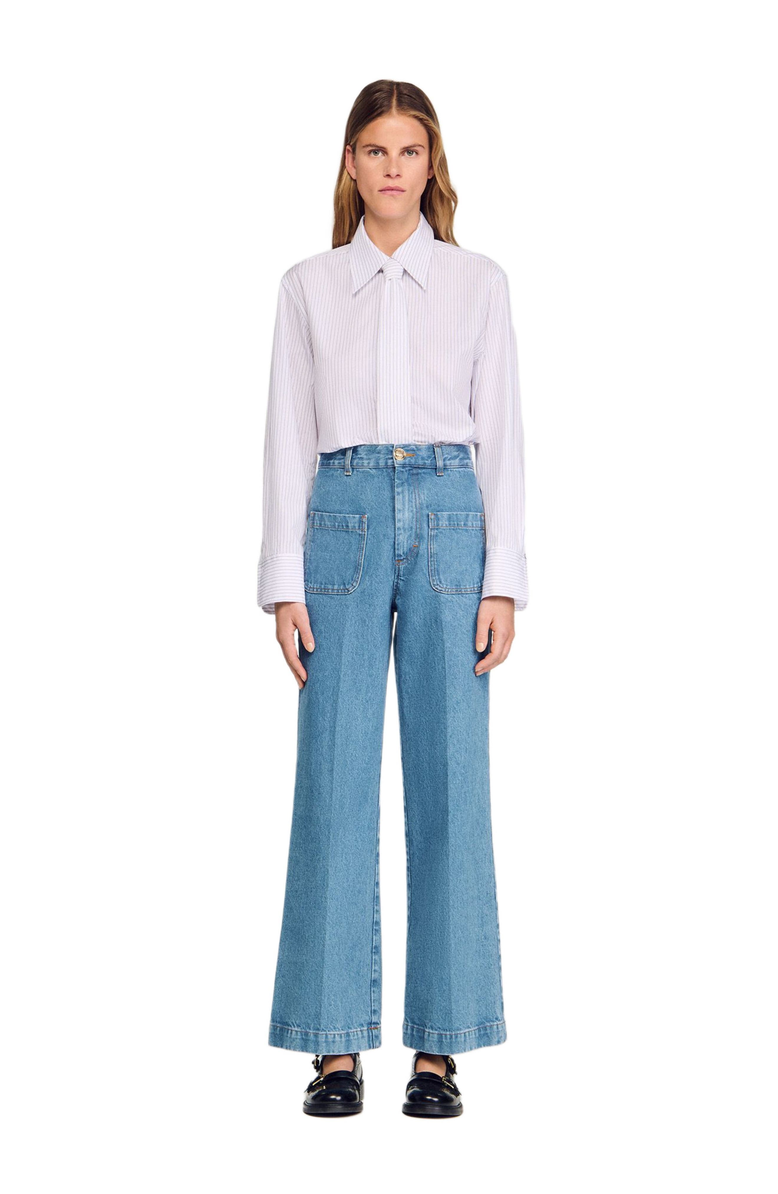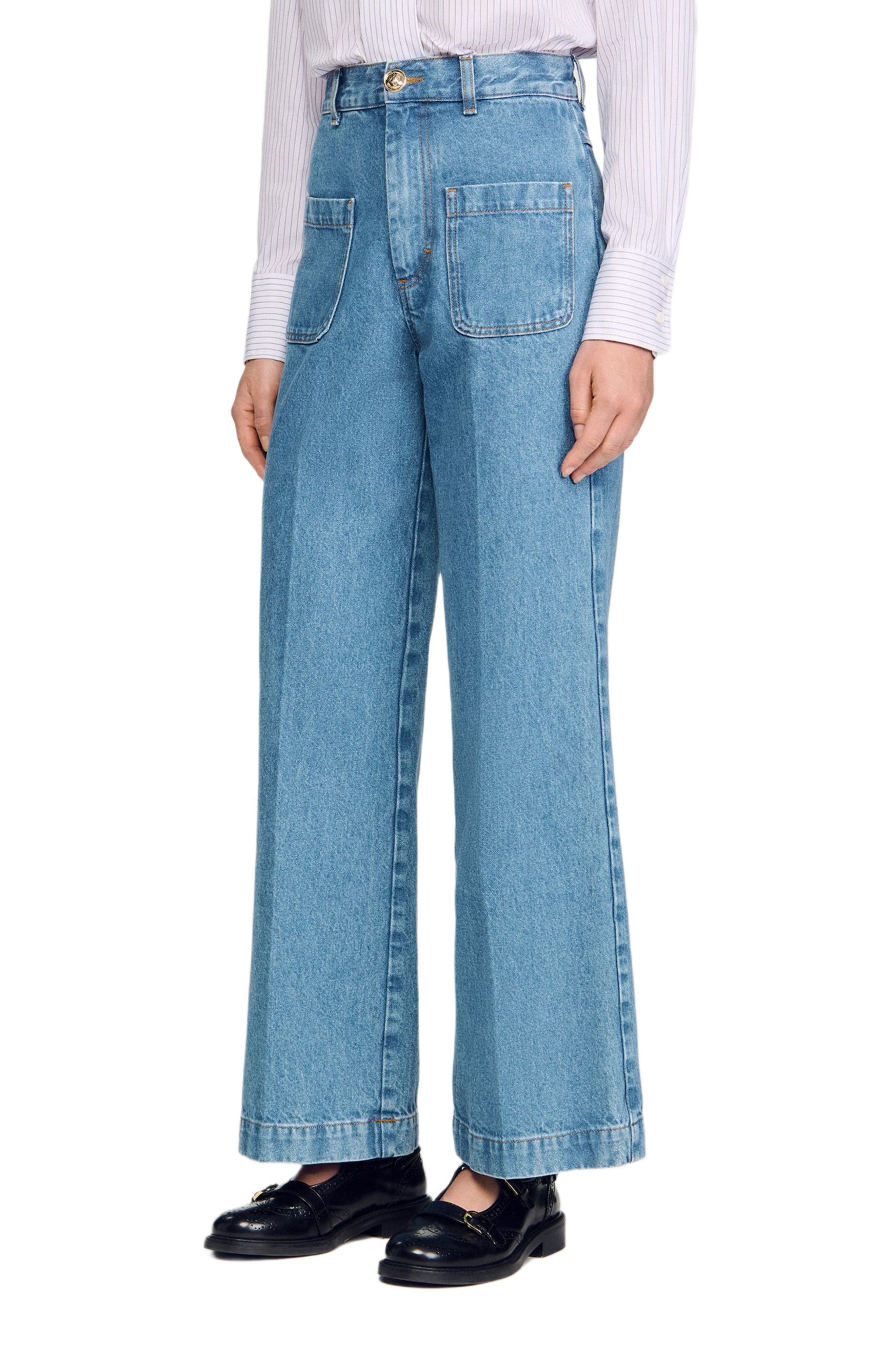 SANDRO Wide-leg high-rise jeans_Blue Jean