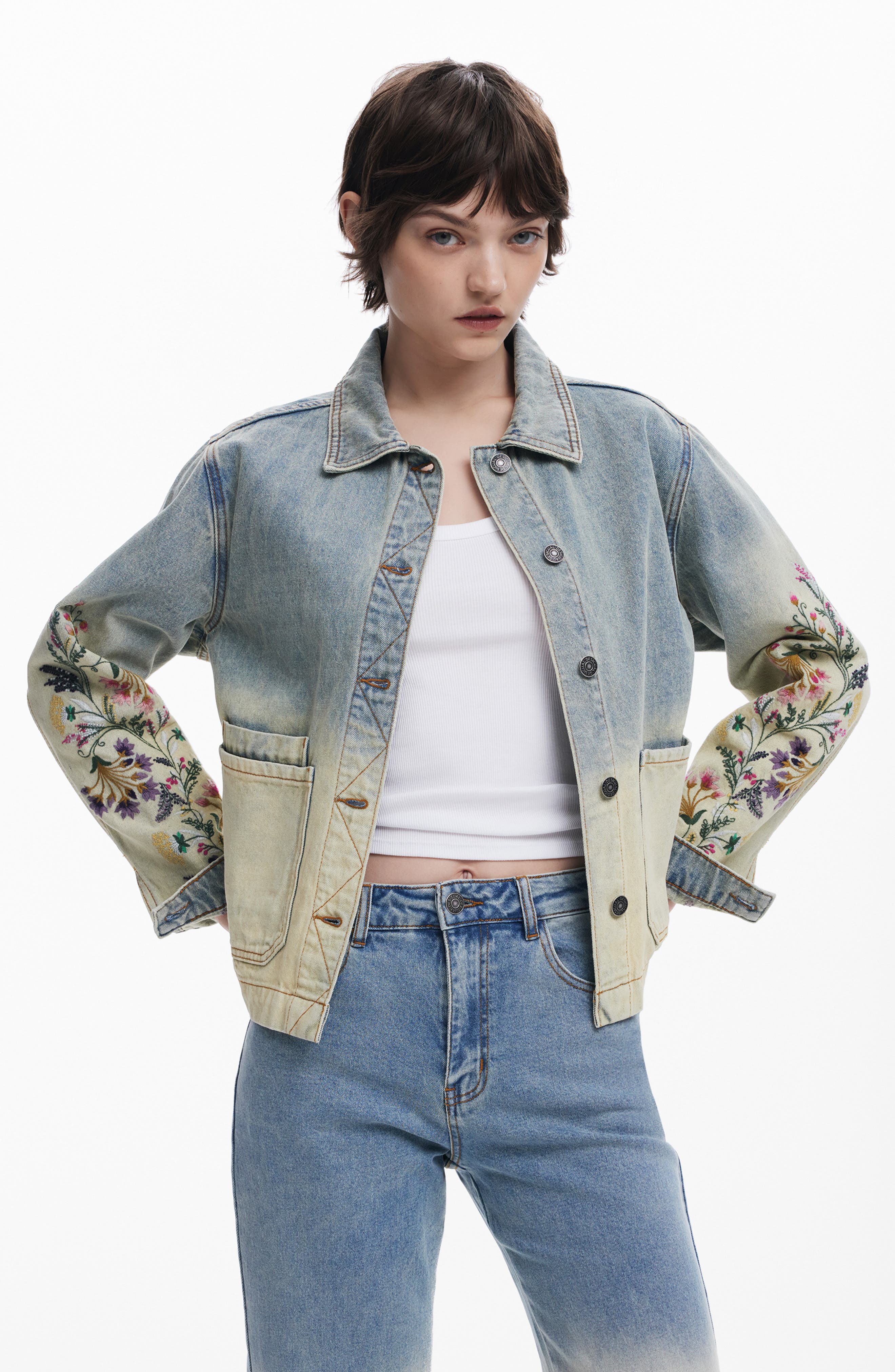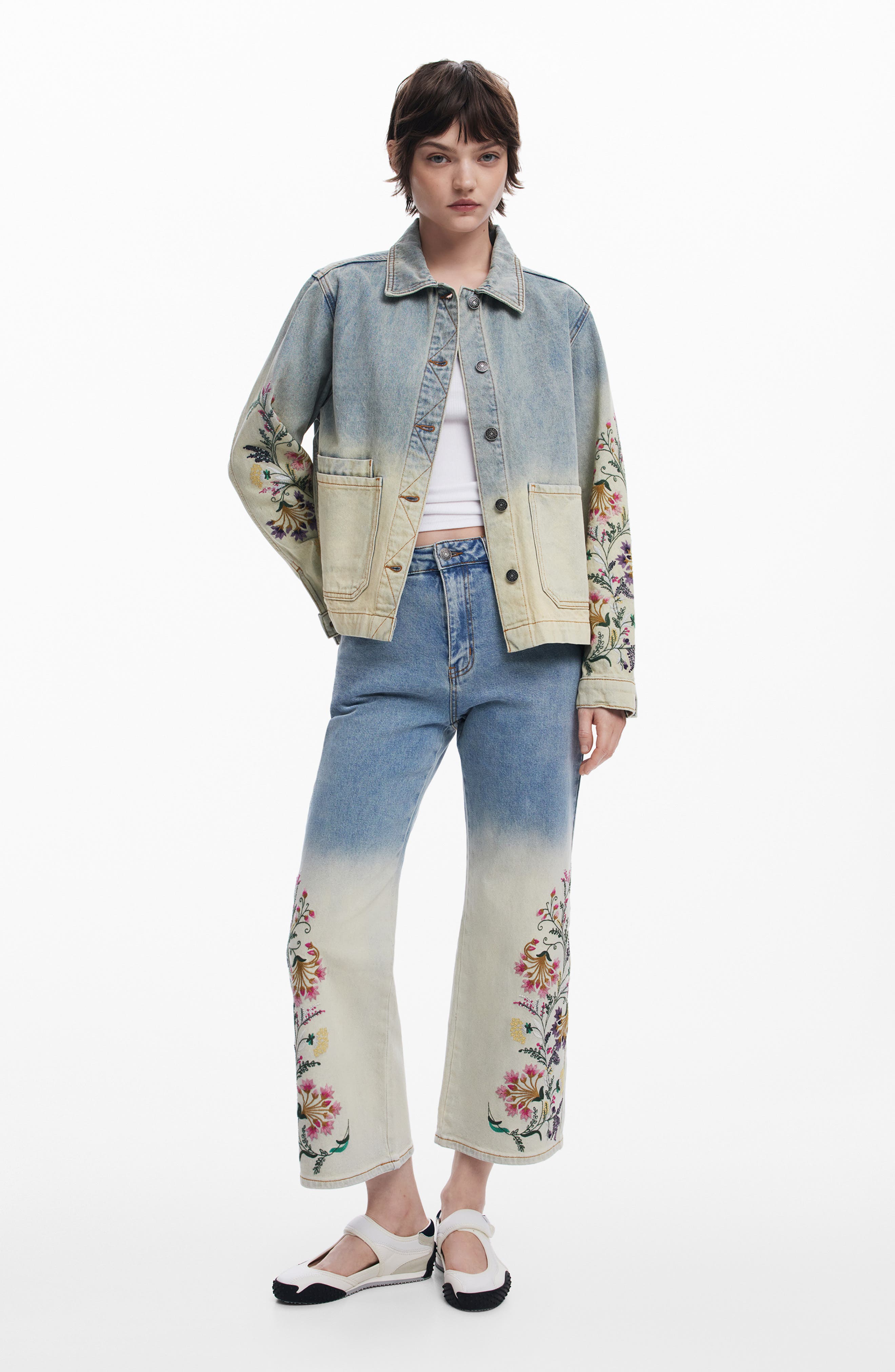 Desigual Floral Embroidery Ombre Crop Wide Leg Jeans_Blue