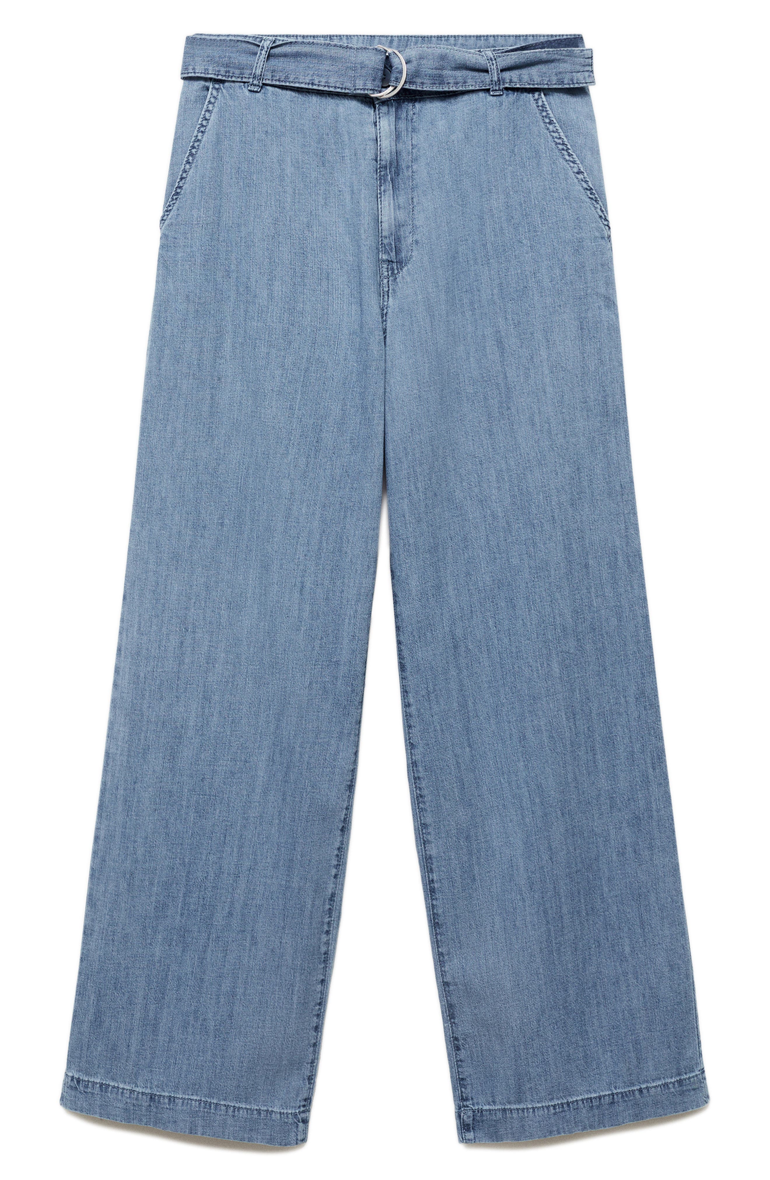 MANGO Belted Denim Wide Leg Pants_Medium Blue