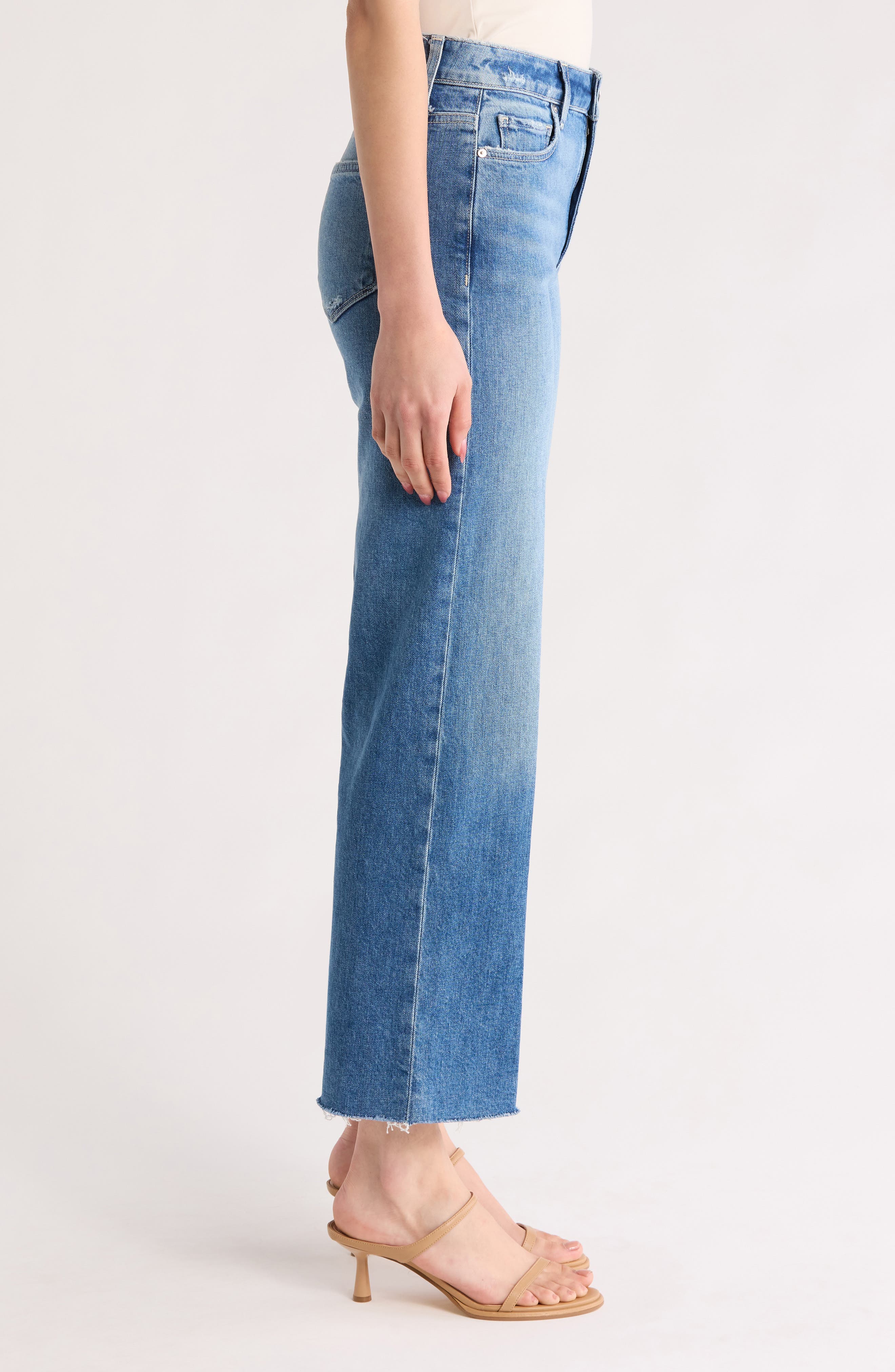 PAIGE Leena High Waist Raw Hem Wide Leg Jeans_Volar Distressed