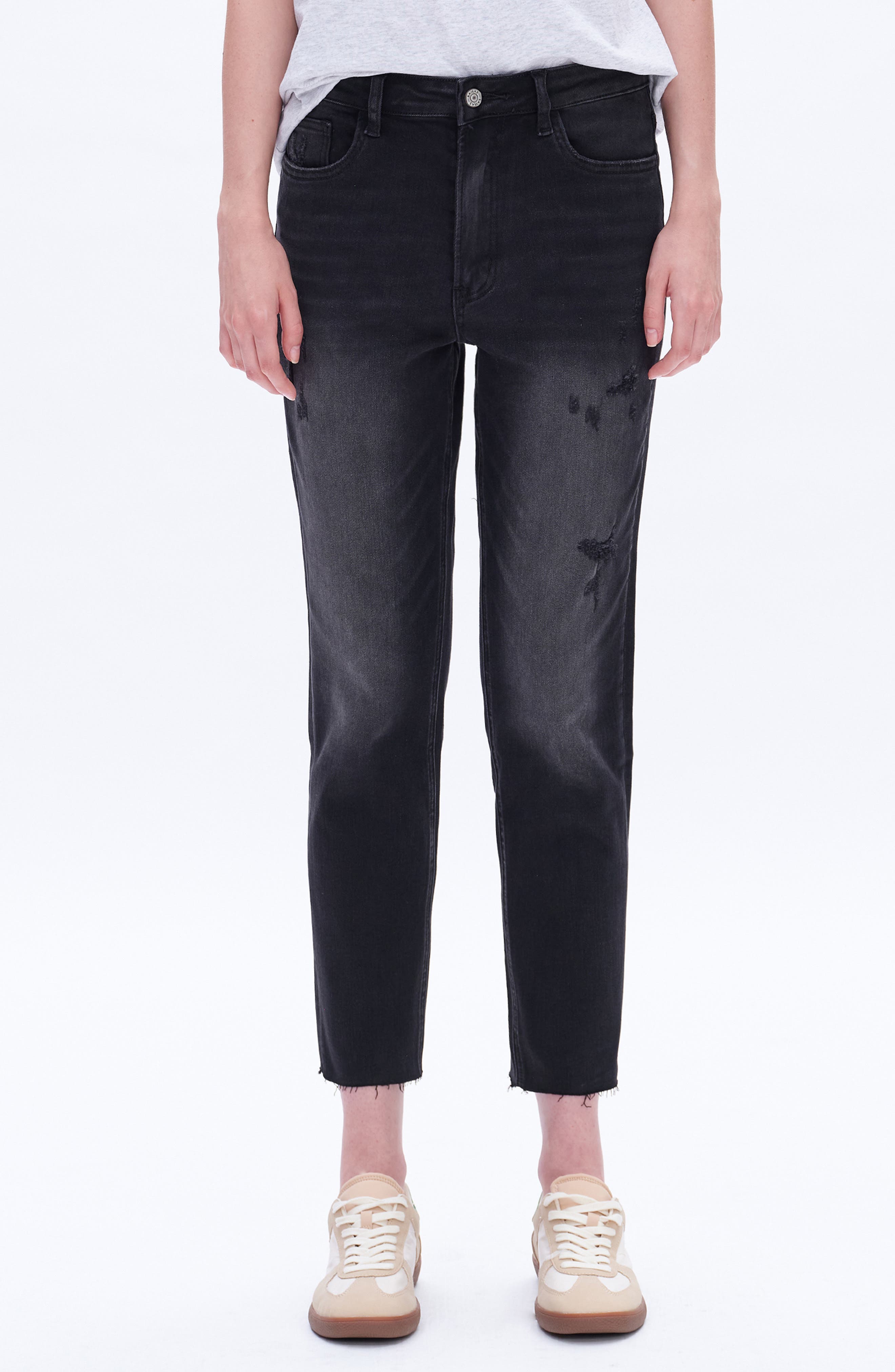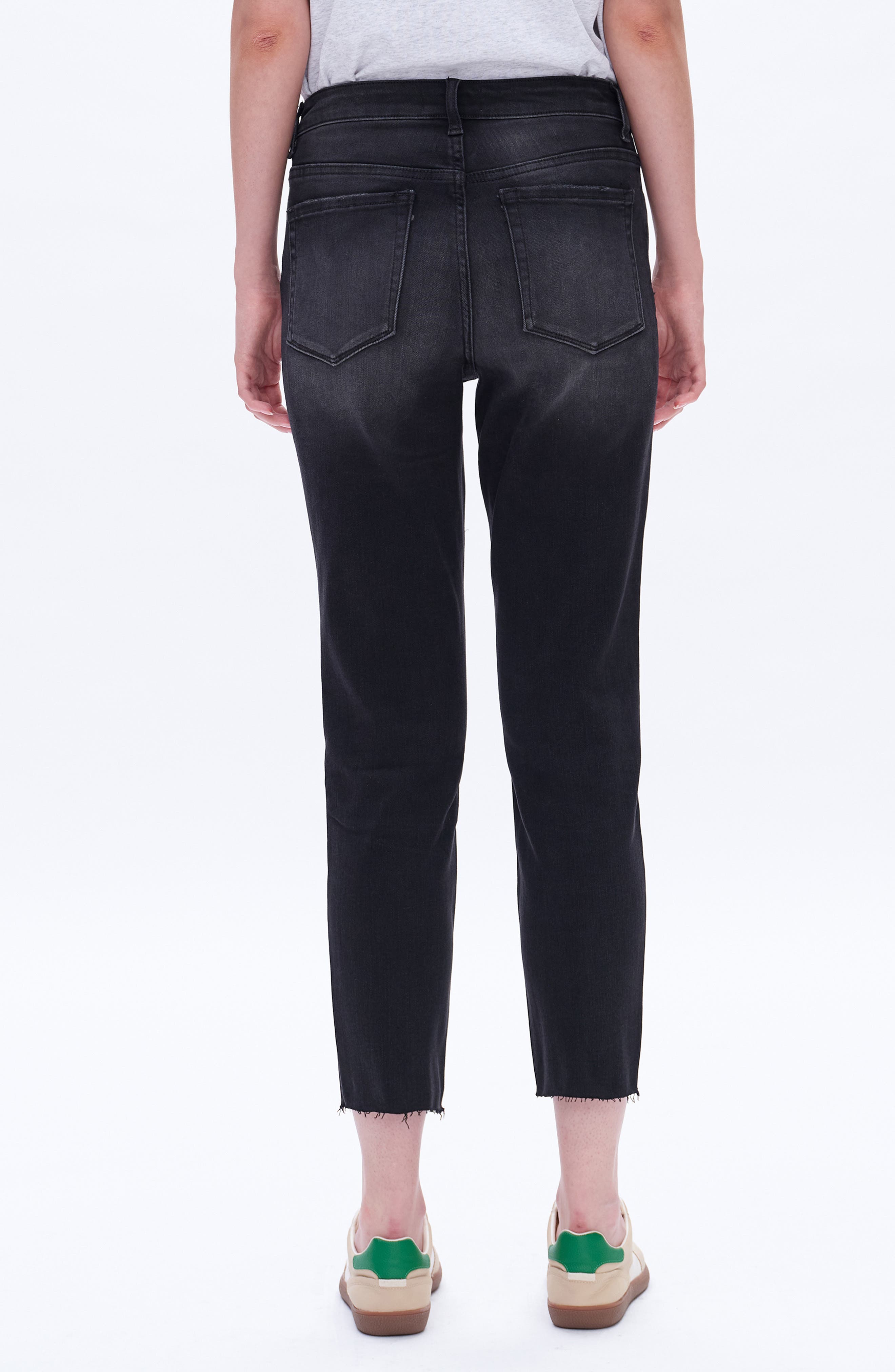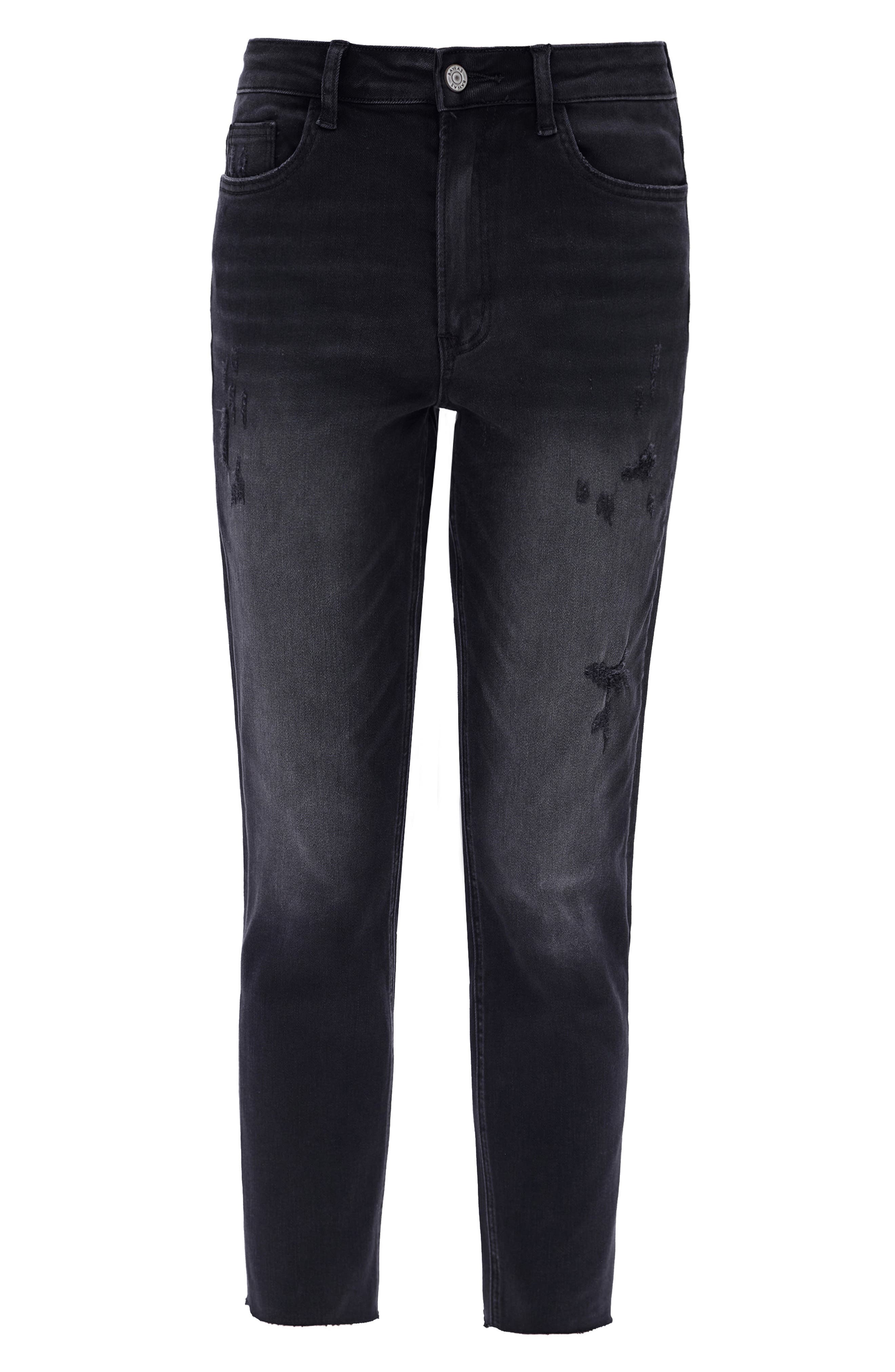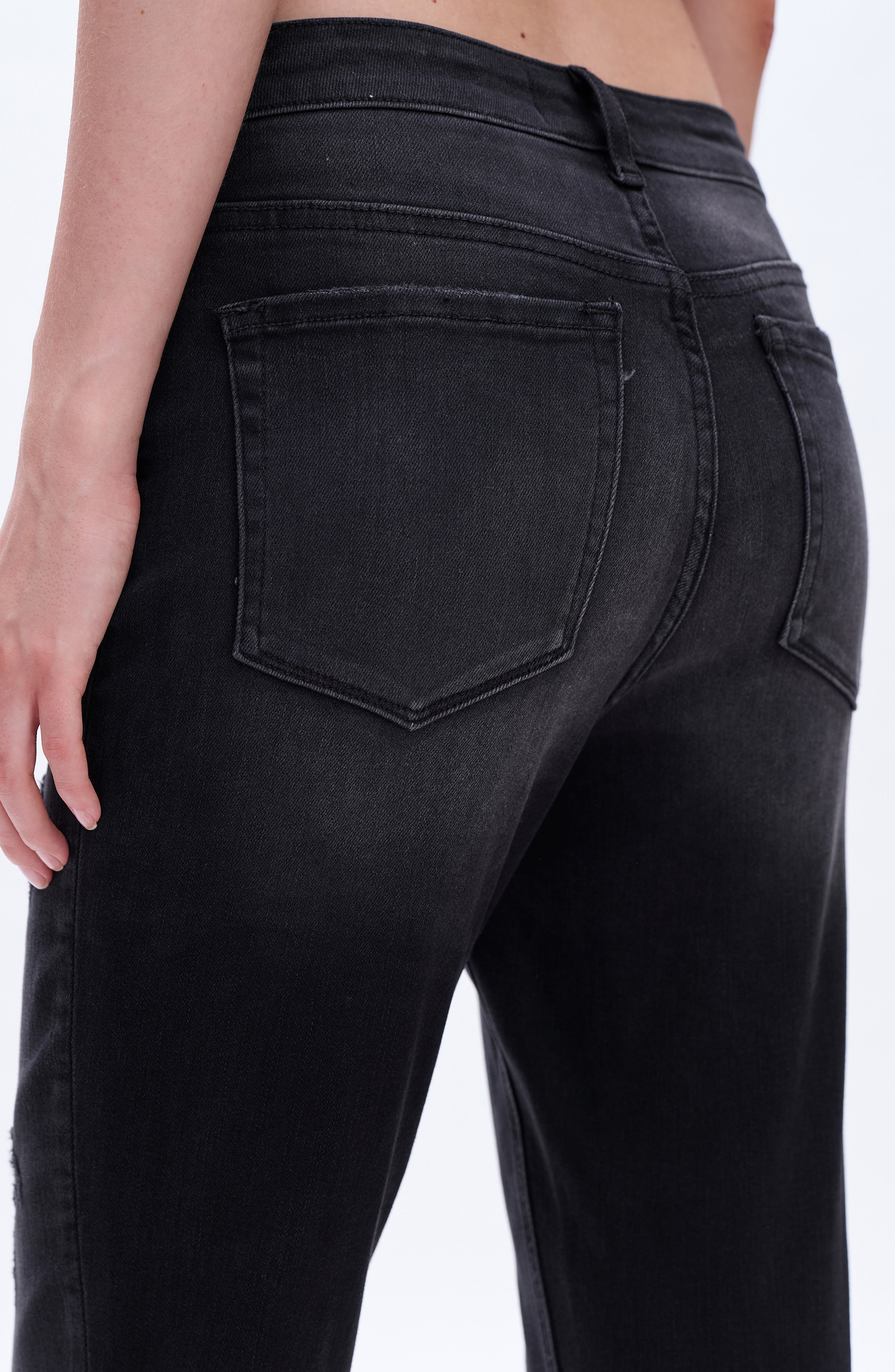 Bayeas High Waist Distressed Ankle Straight Leg Jeans_Black Rock