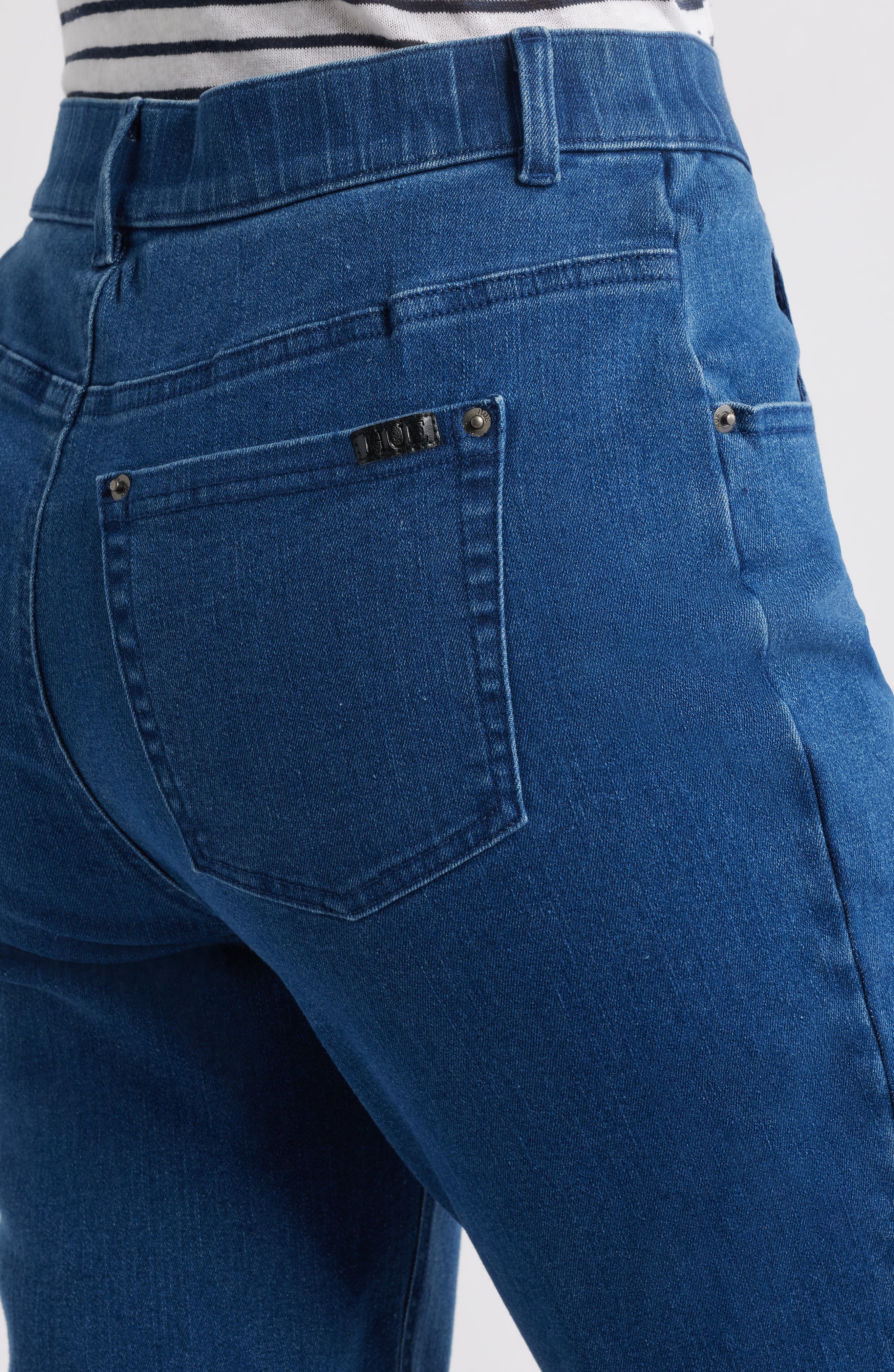 Hue High Waist Cuffed Straight Leg Denim Leggings_Medium Wash
