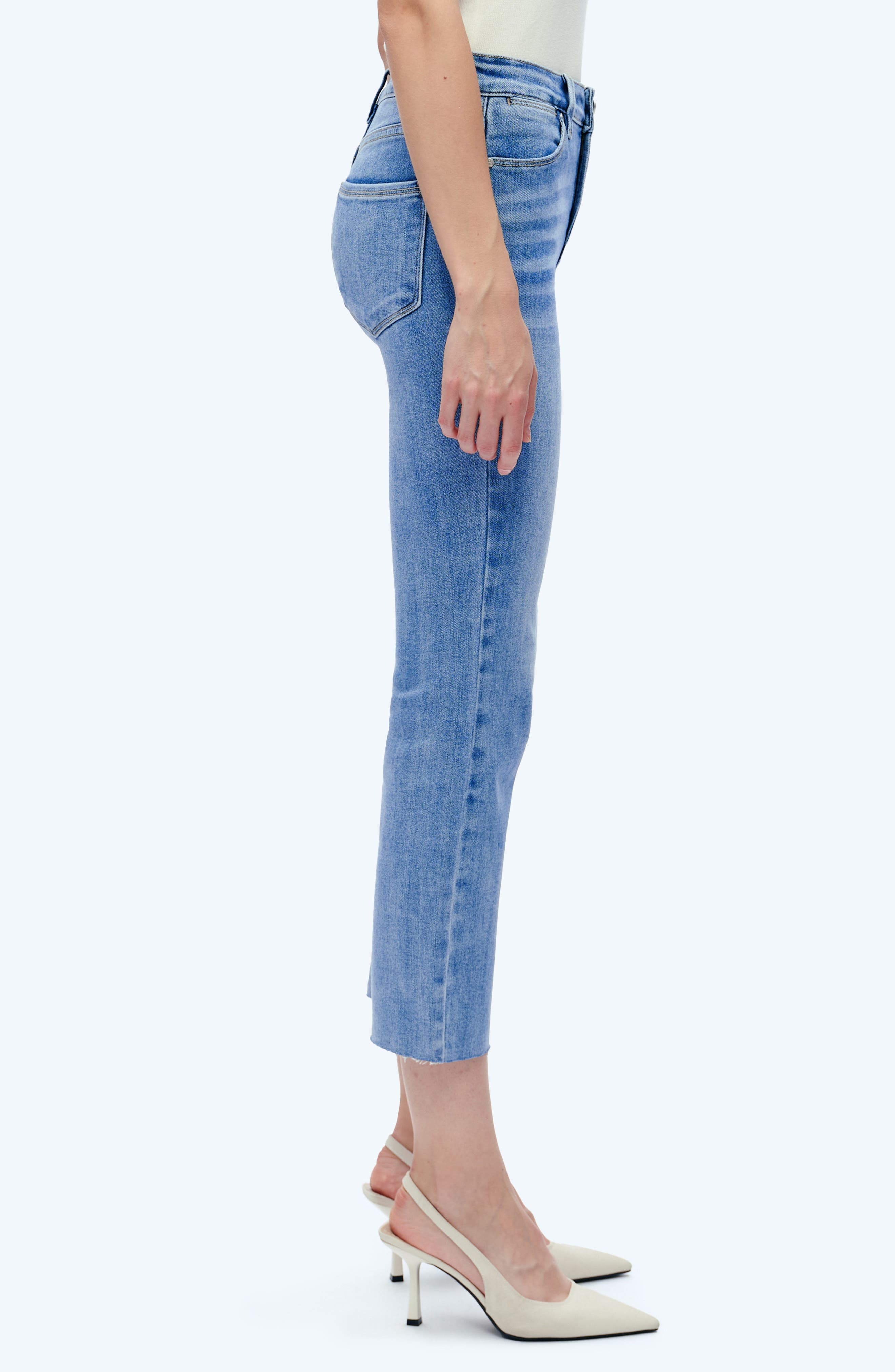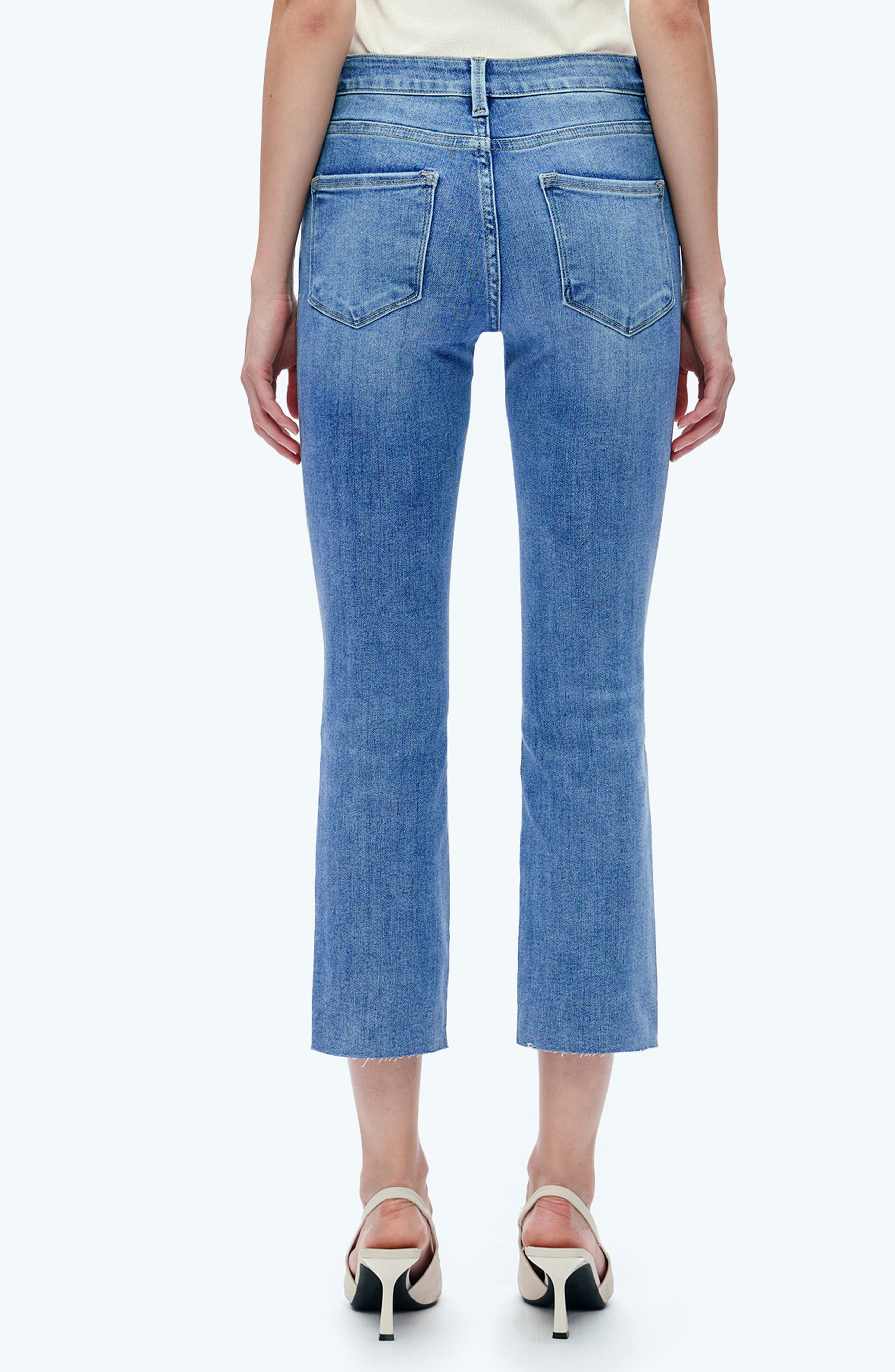 Bayeas Raw Hem Crop Straight Leg Jeans_Medium Blue