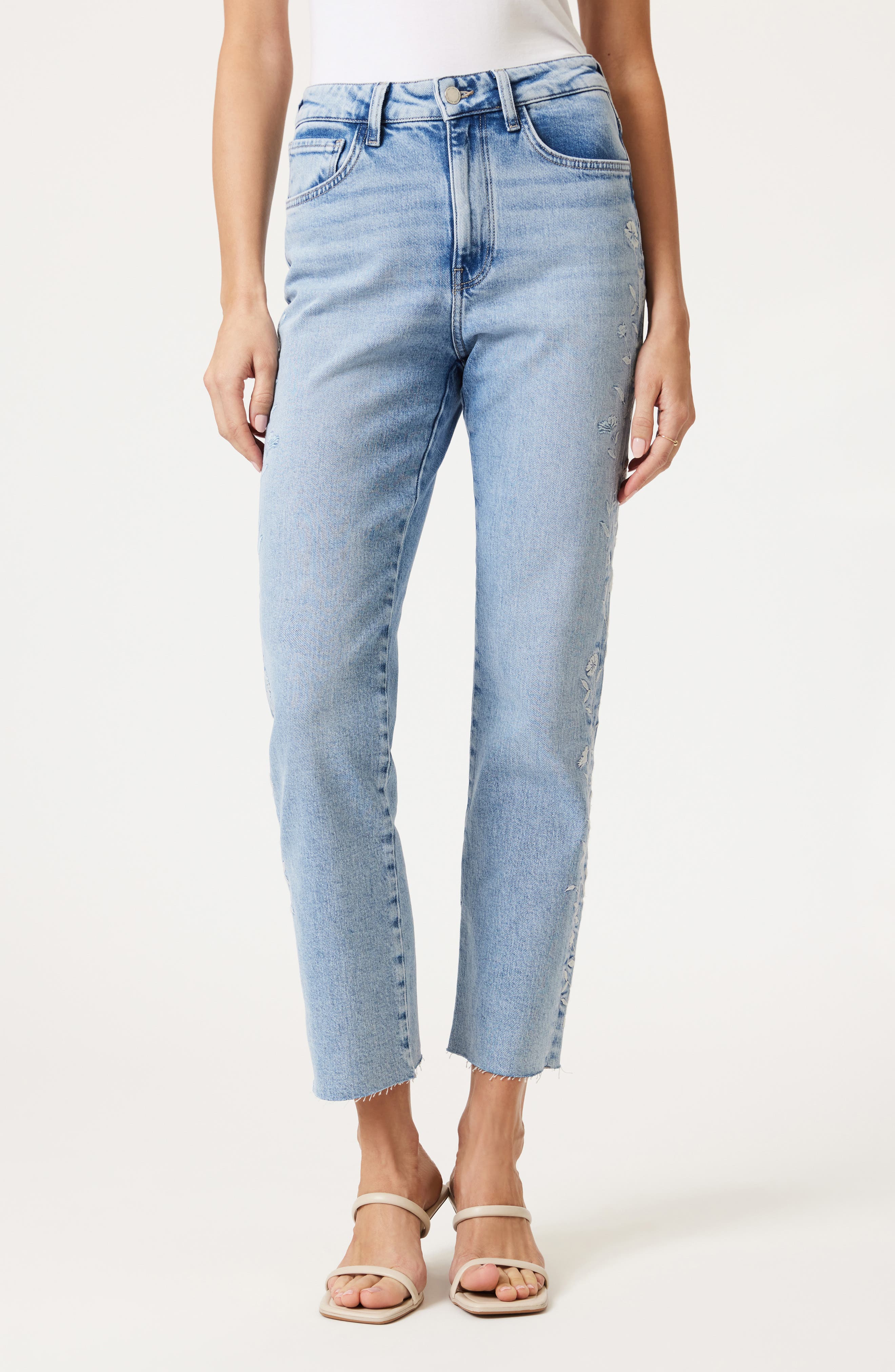 Mavi Jeans New York Embroidered Ankle Straight Leg Jeans_Light Blue Bloom Denim
