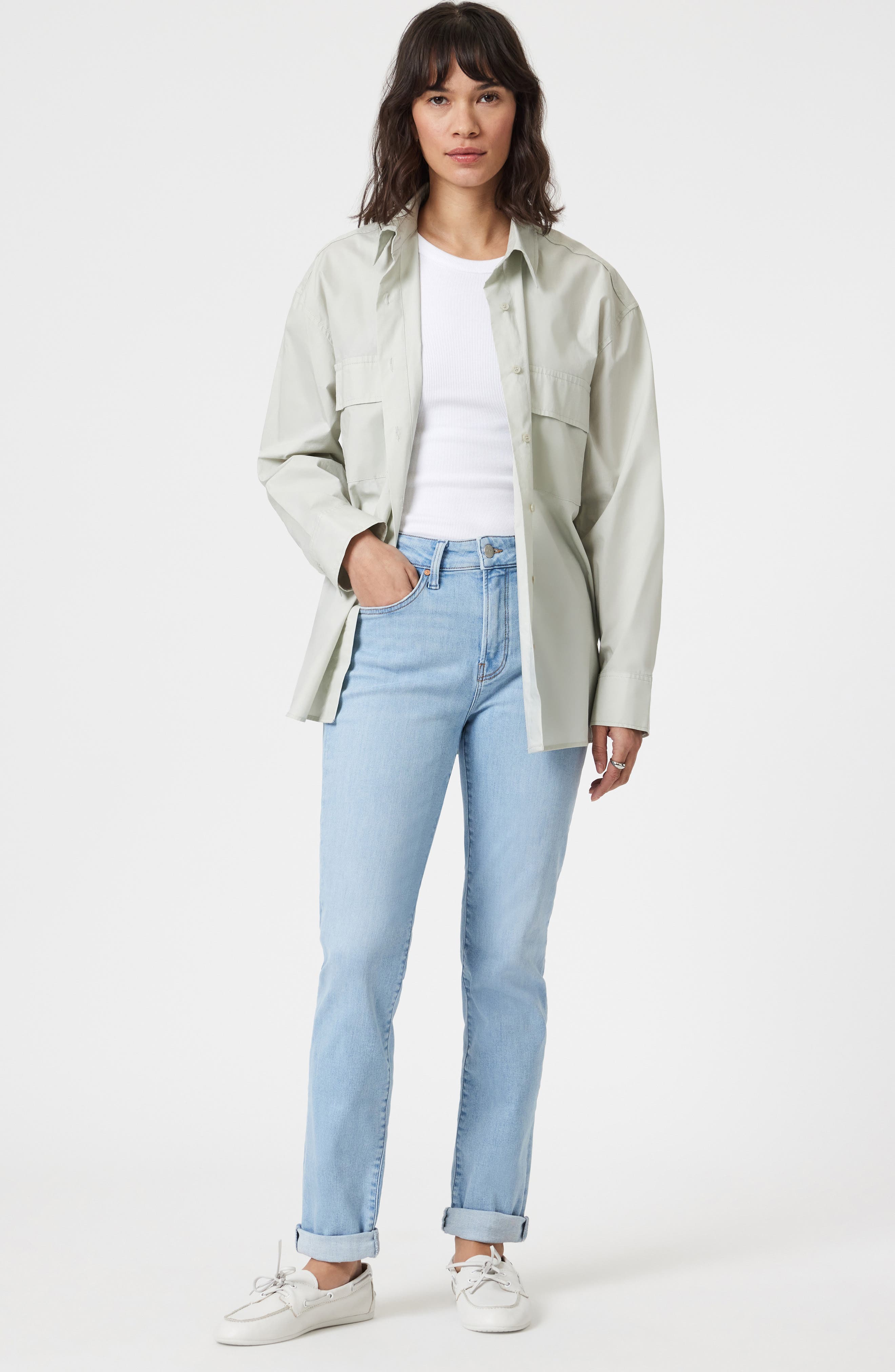 Mavi Jeans Kathleen High Waist Cuffed Slim Straight Leg Jeans_Light Blue Flex Blue