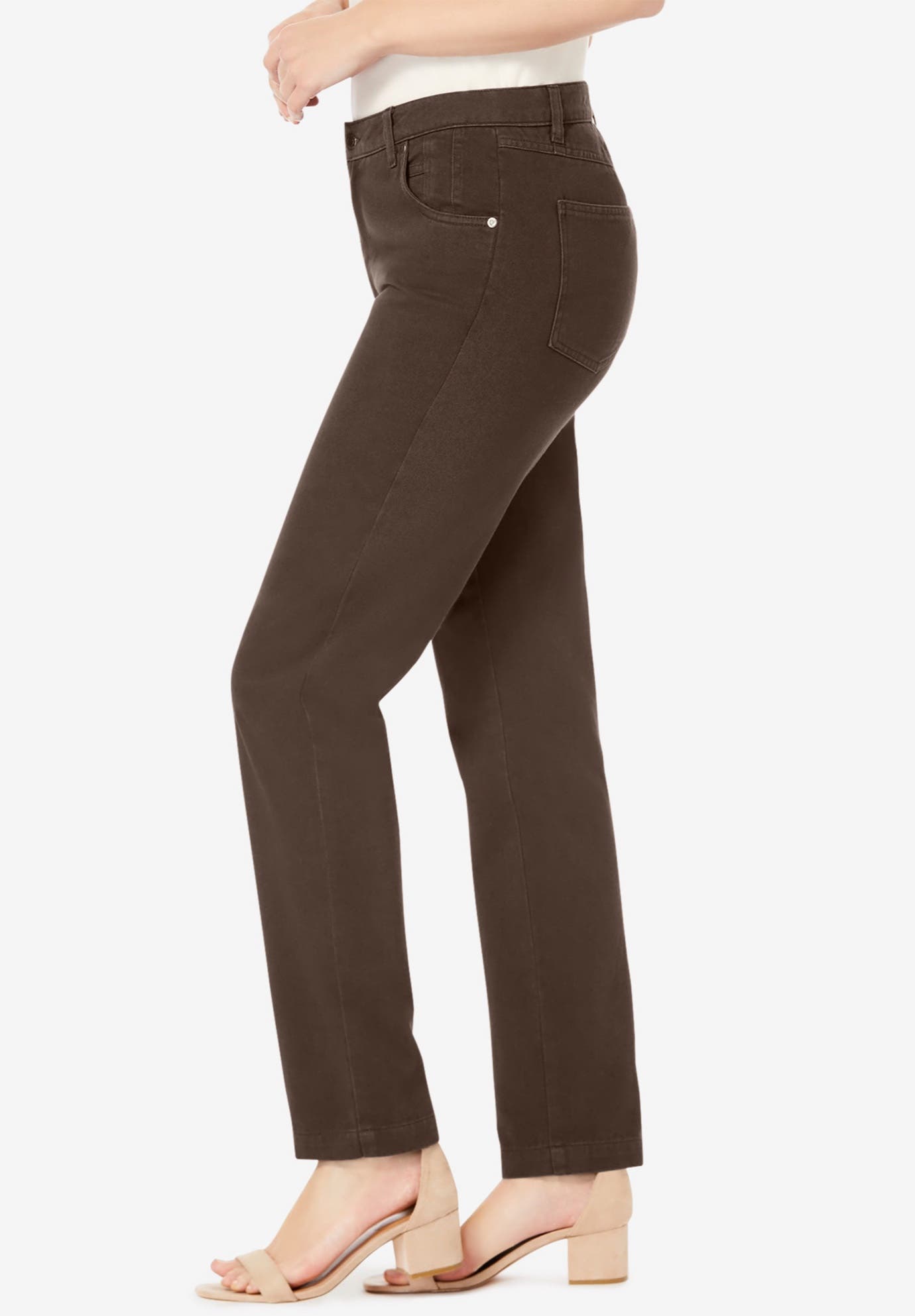 Jessica London Petite Classic Cotton Denim Straight-Leg Jean_Chocolate
