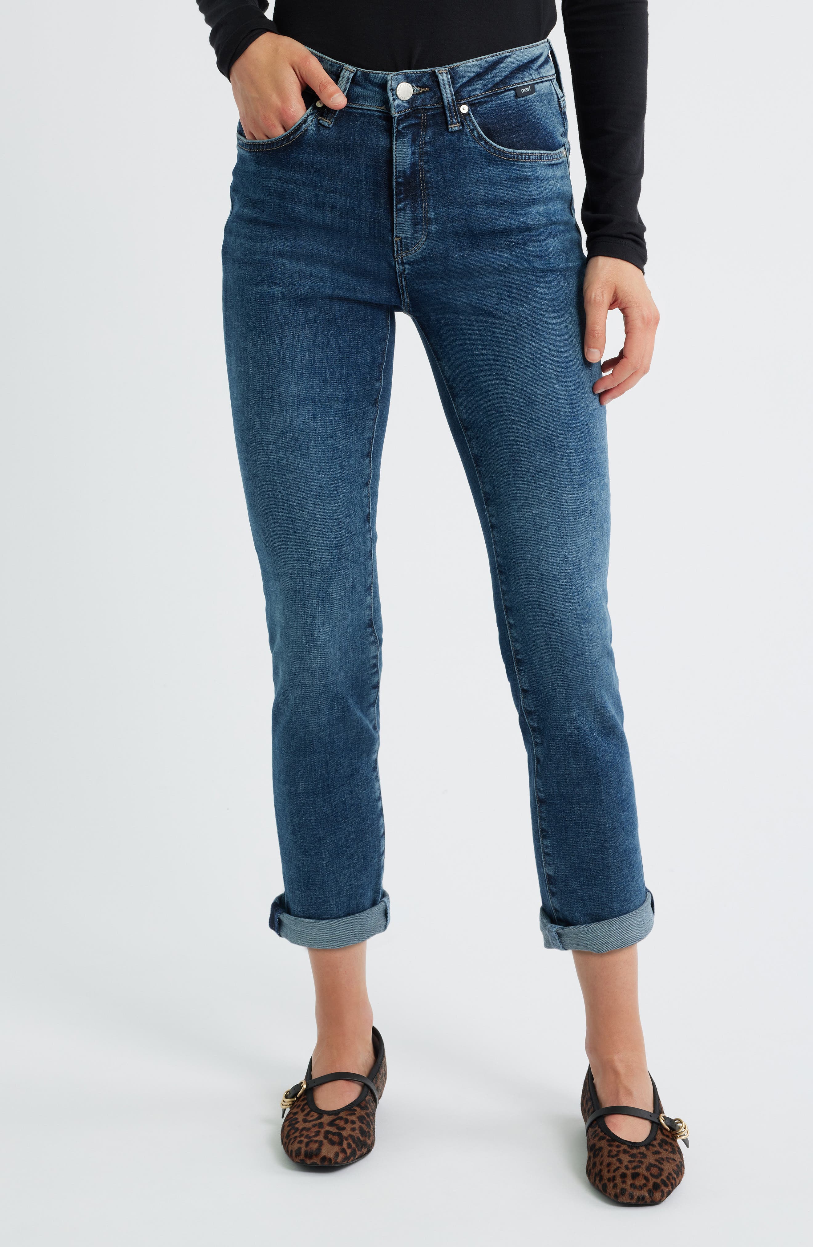 Mavi Jeans Kathleen High Waist Slim Straight Leg Jeans_Used Brushed Feather Blue