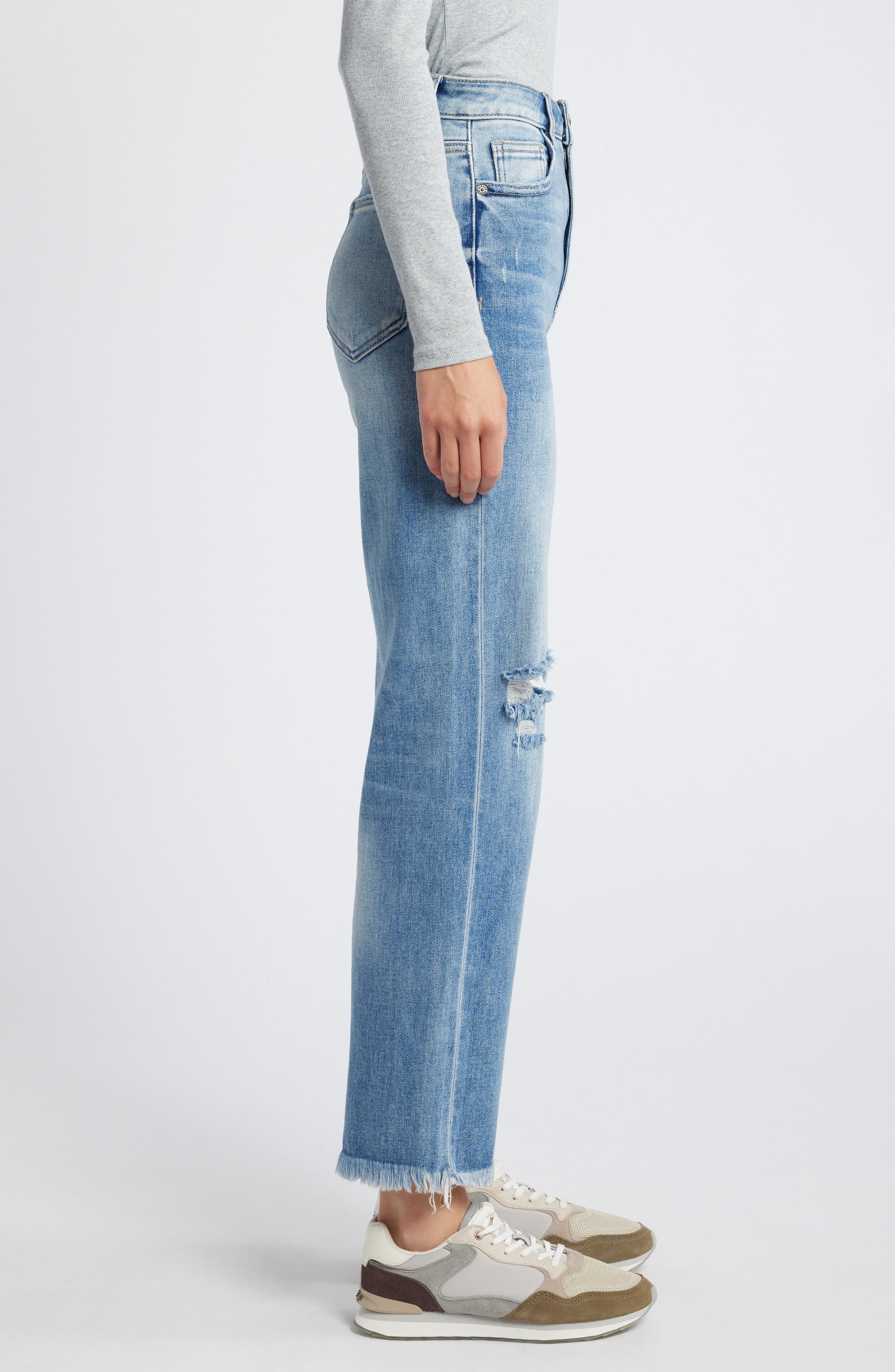 HIDDEN JEANS High Waist Ripped Straight Leg Jeans_Medium Wash