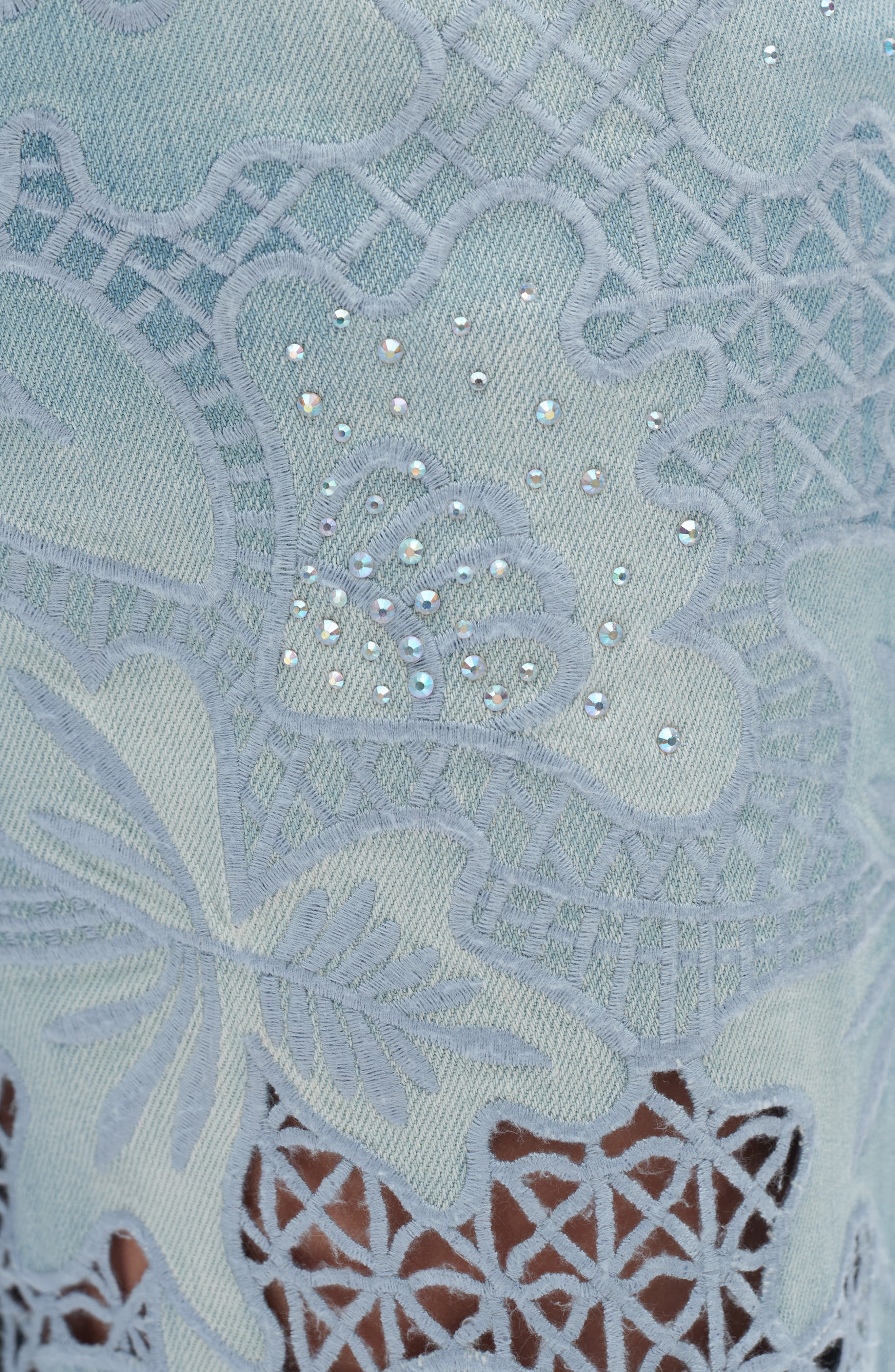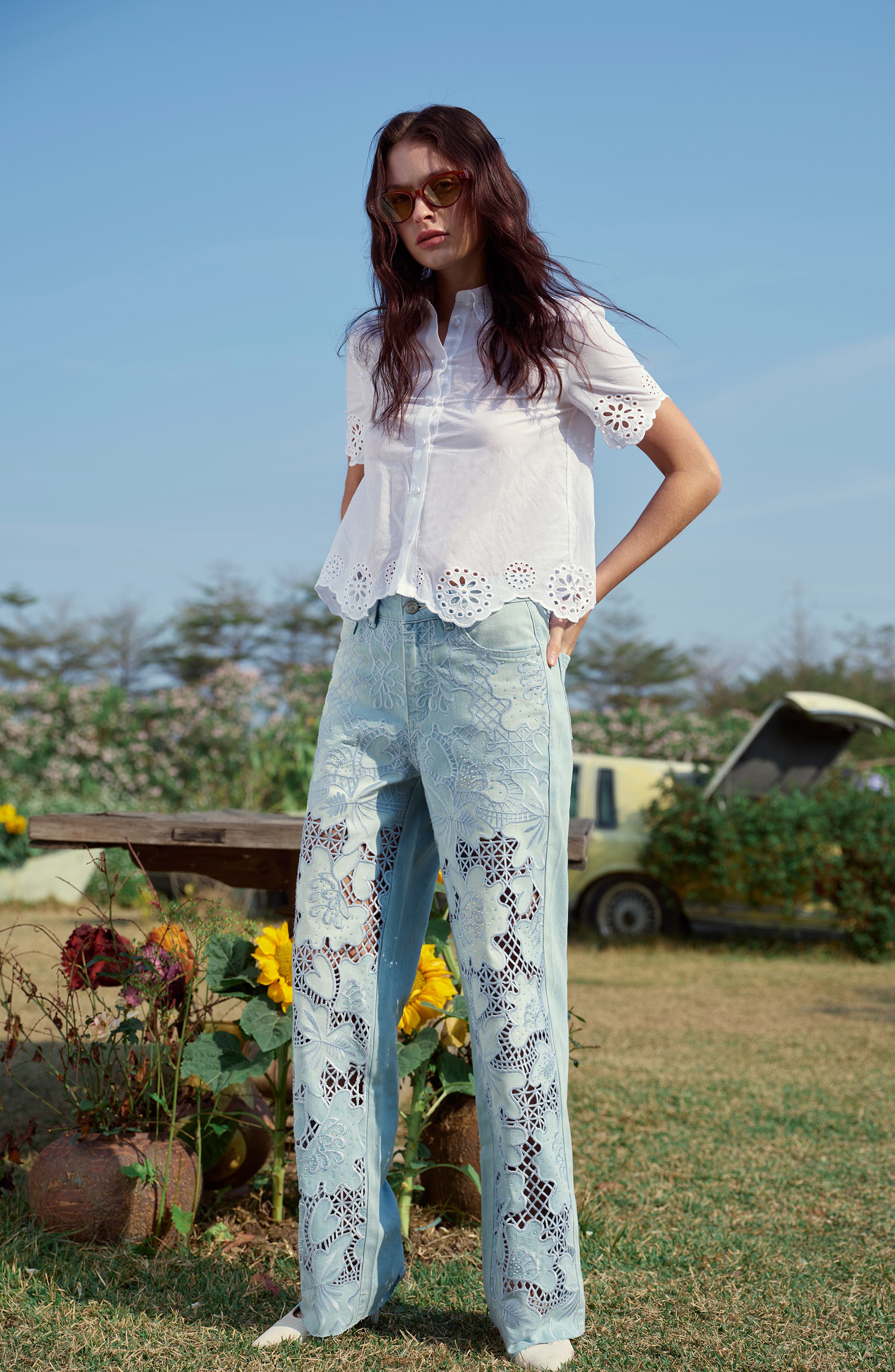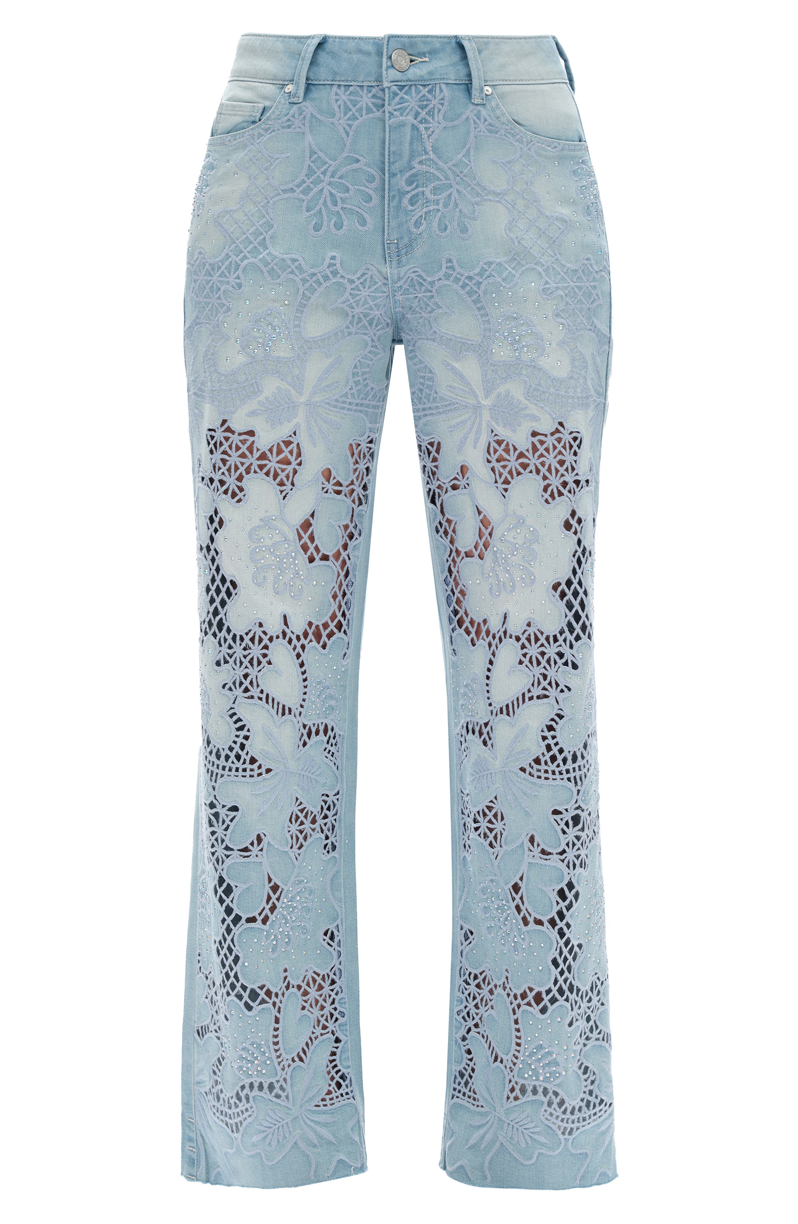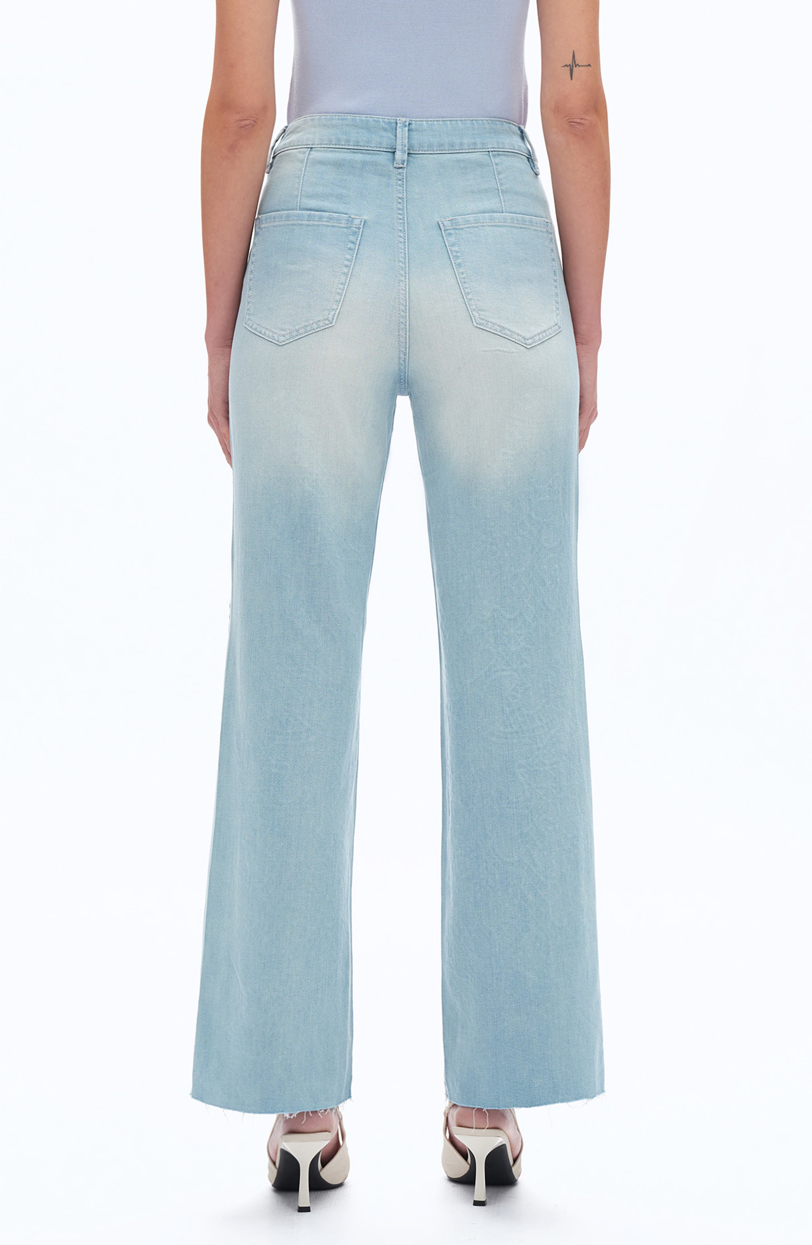Bayeas Crystal Embroidered Raw Hem High Waist Relaxed Straight Leg Jeans_Light Blue
