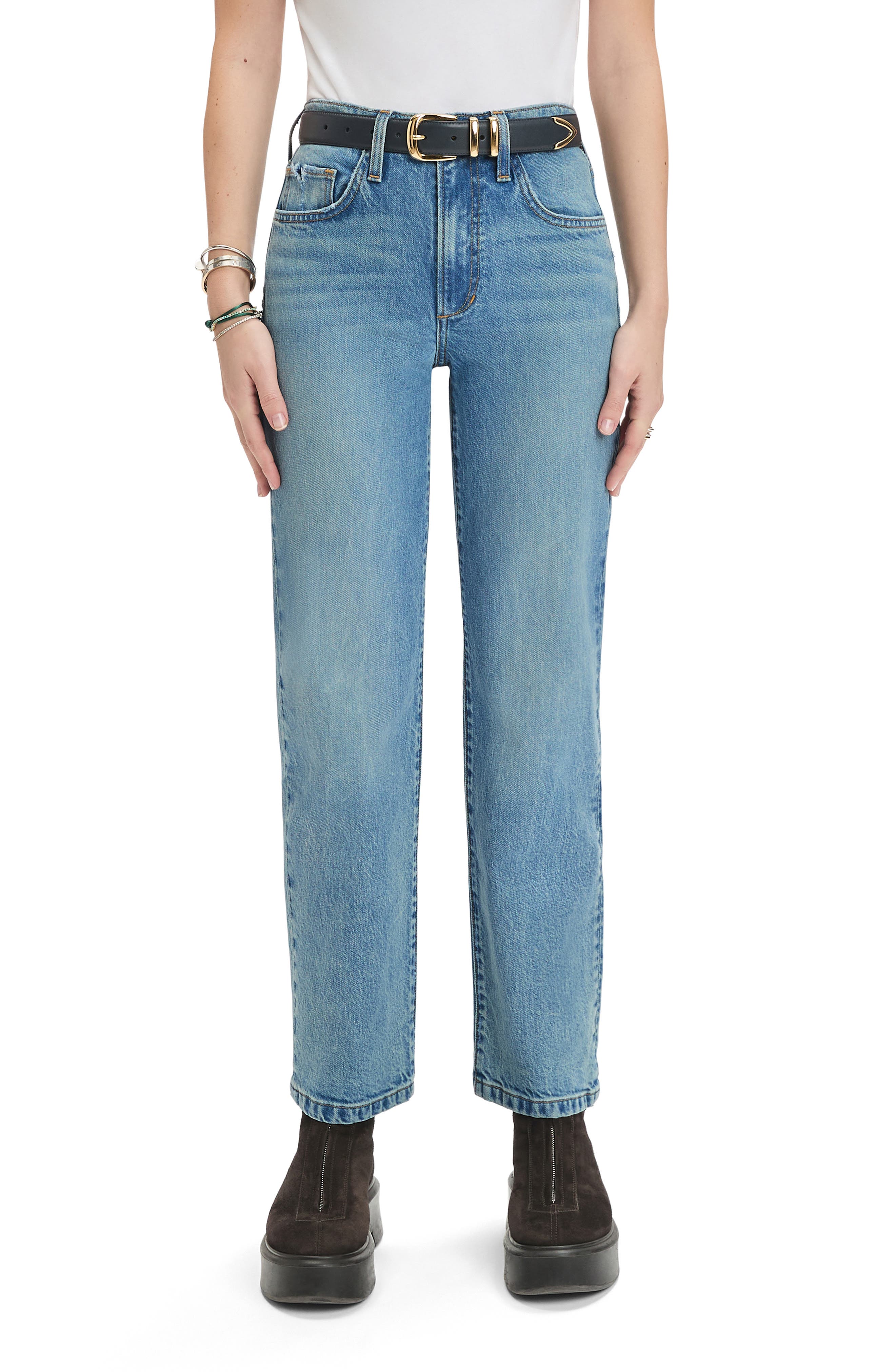 Favorite Daughter The Morgan Shortie High Waist Straight Leg Jeans_Santa Barbara