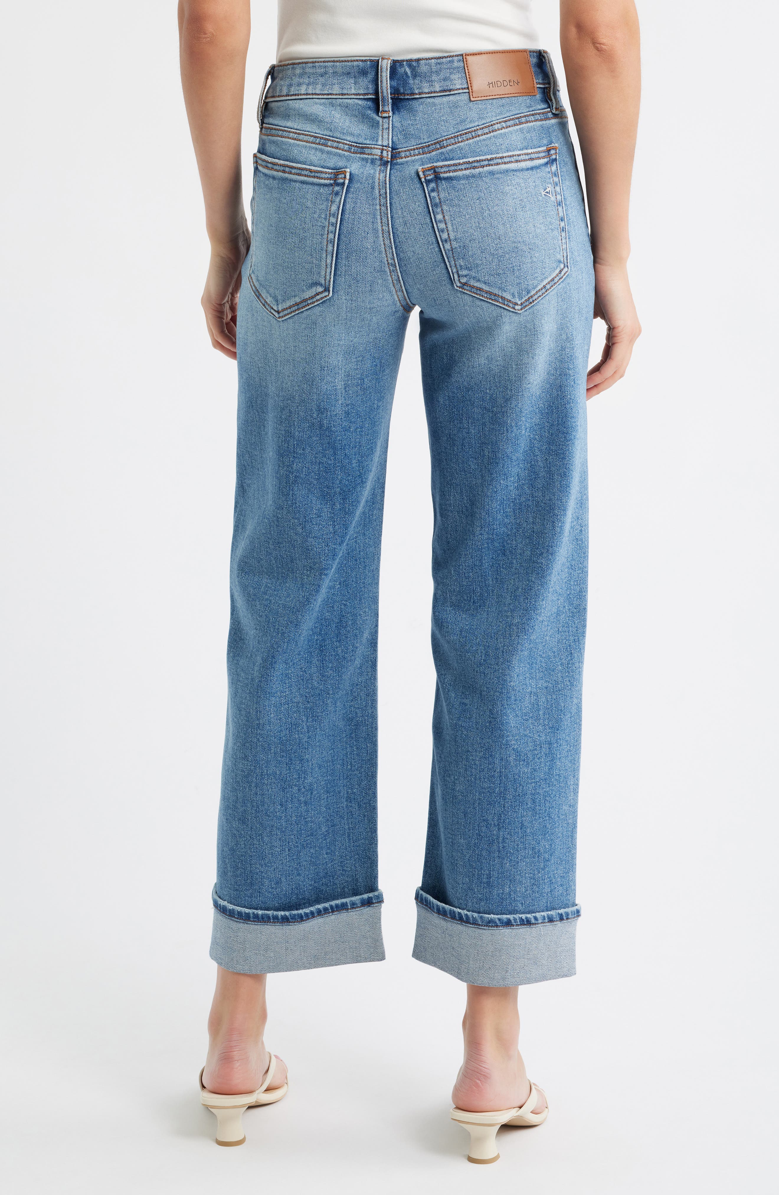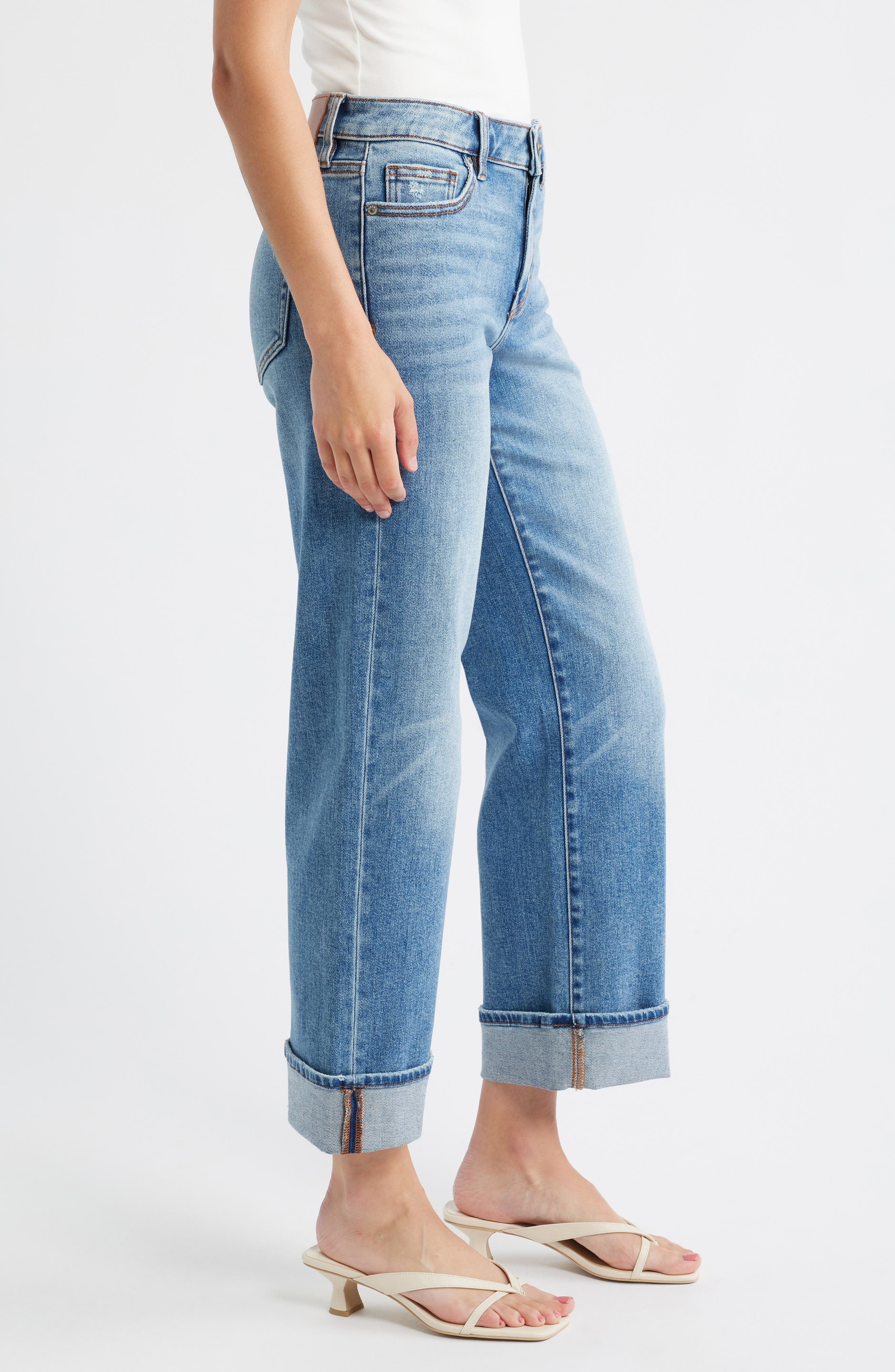 HIDDEN JEANS Cuffed Mid Rise Straight Leg Jeans_Medium Wash