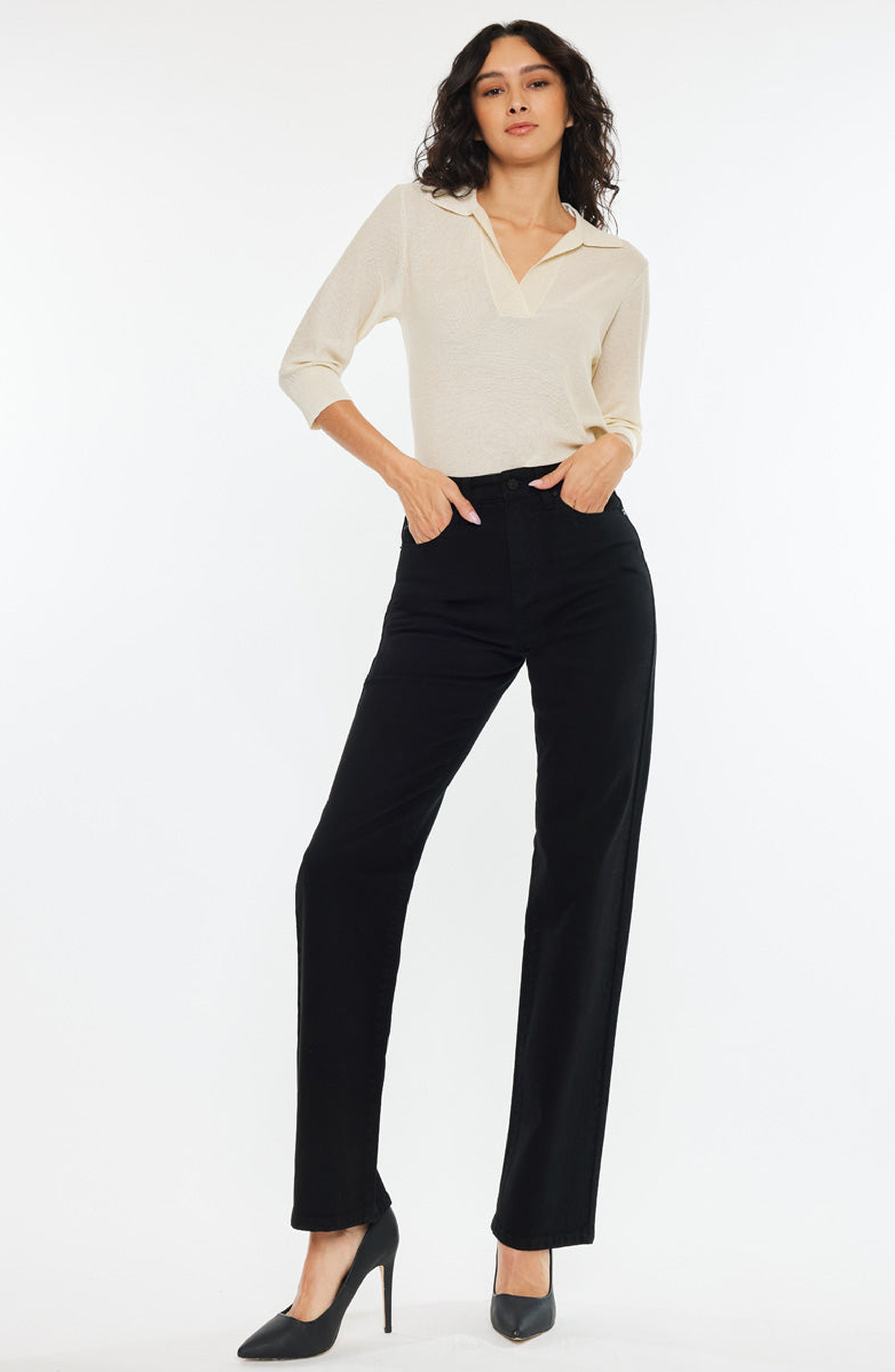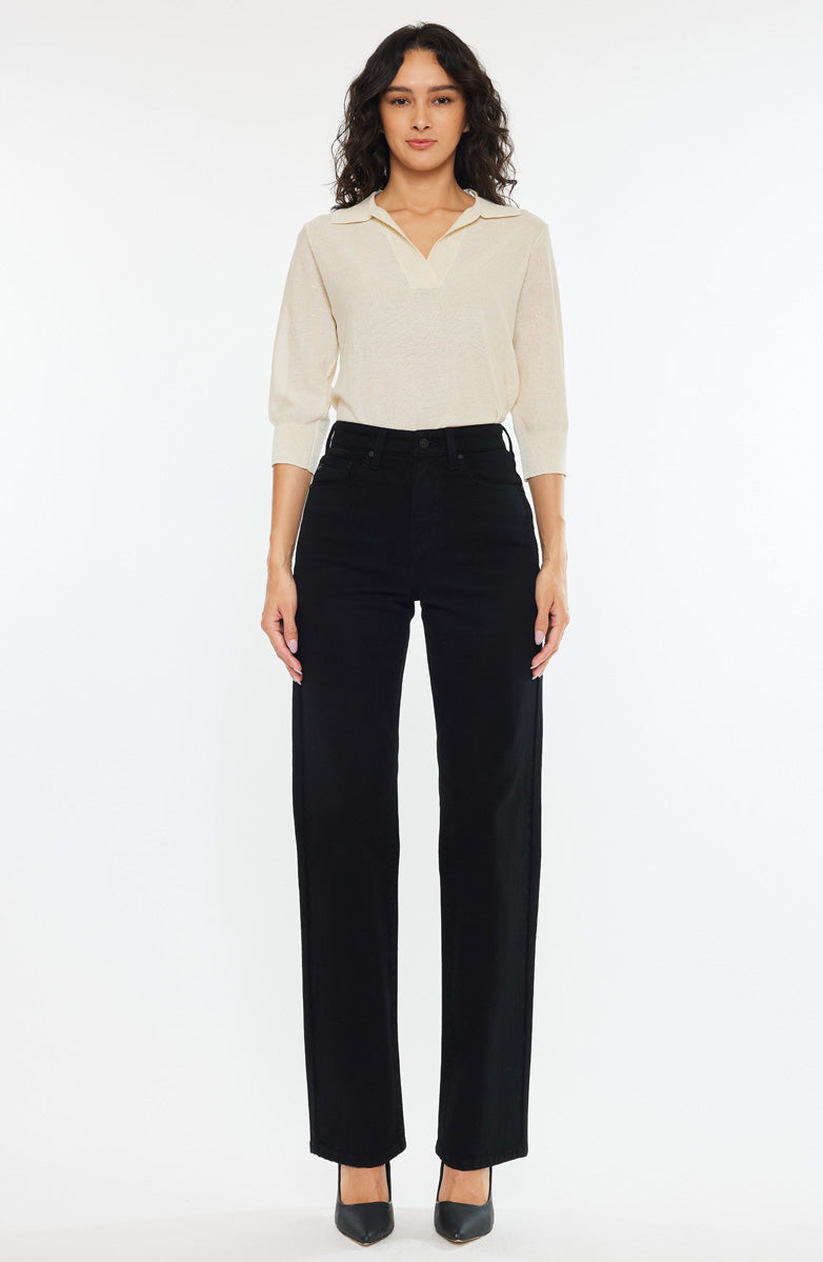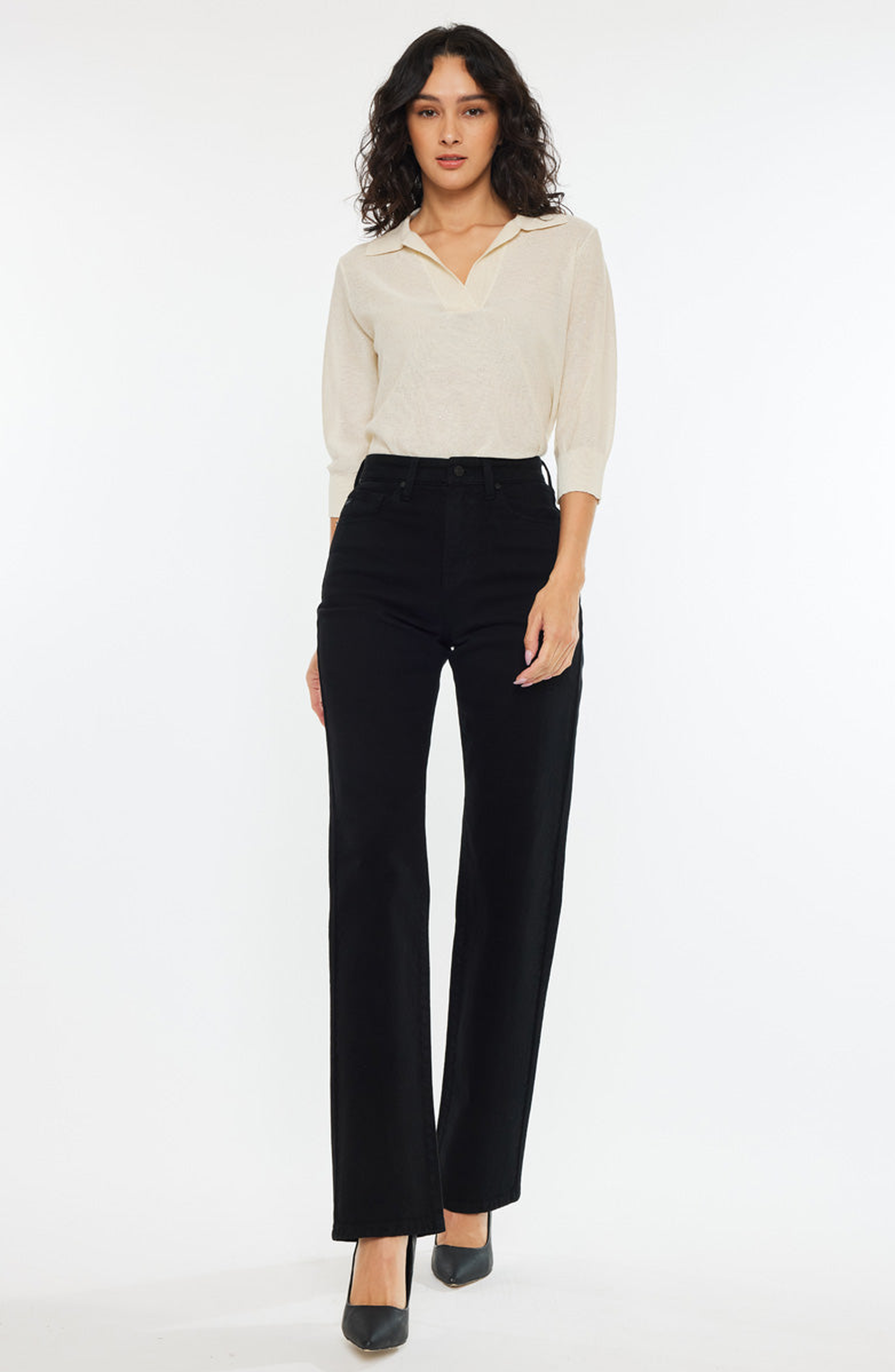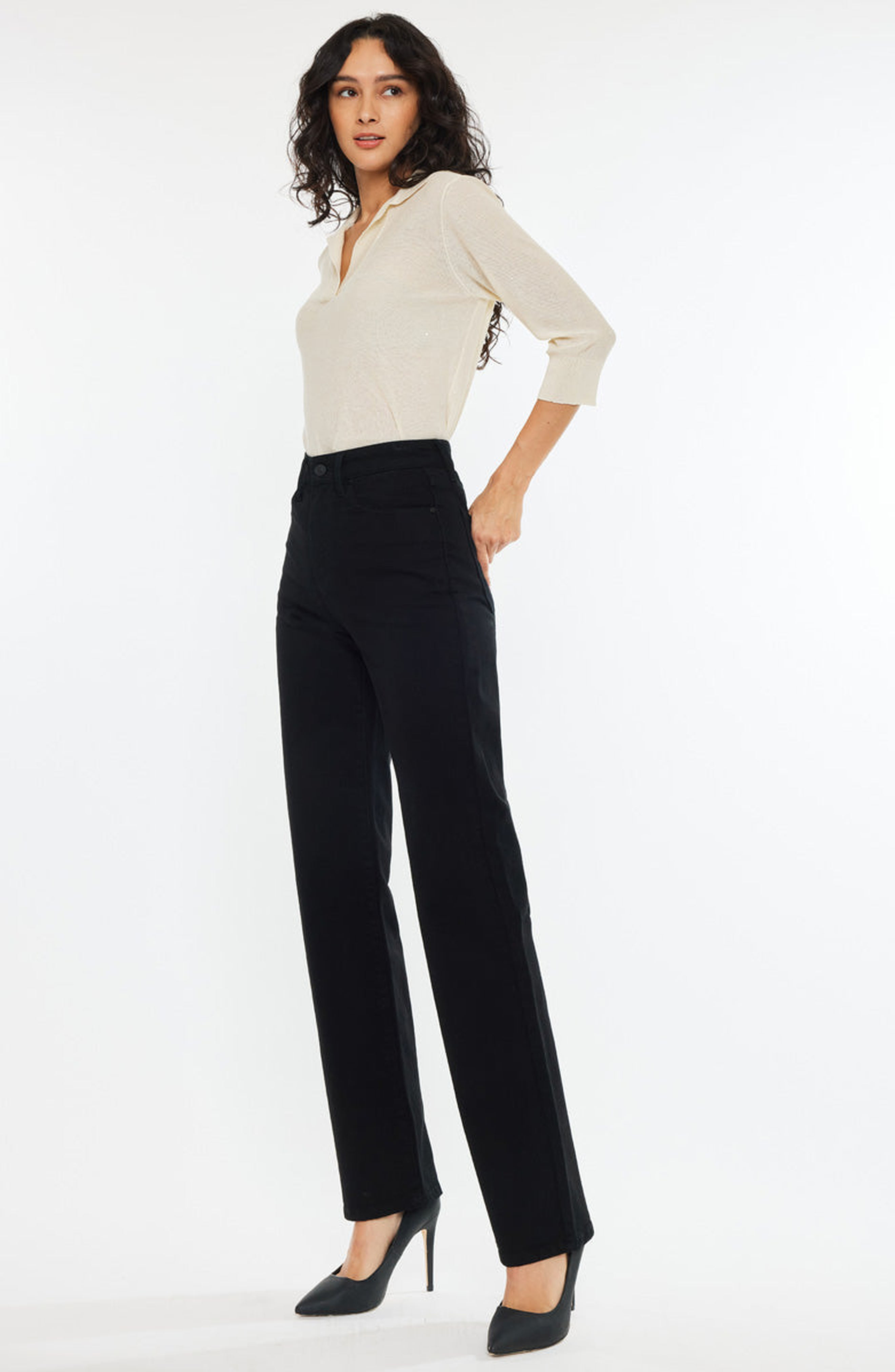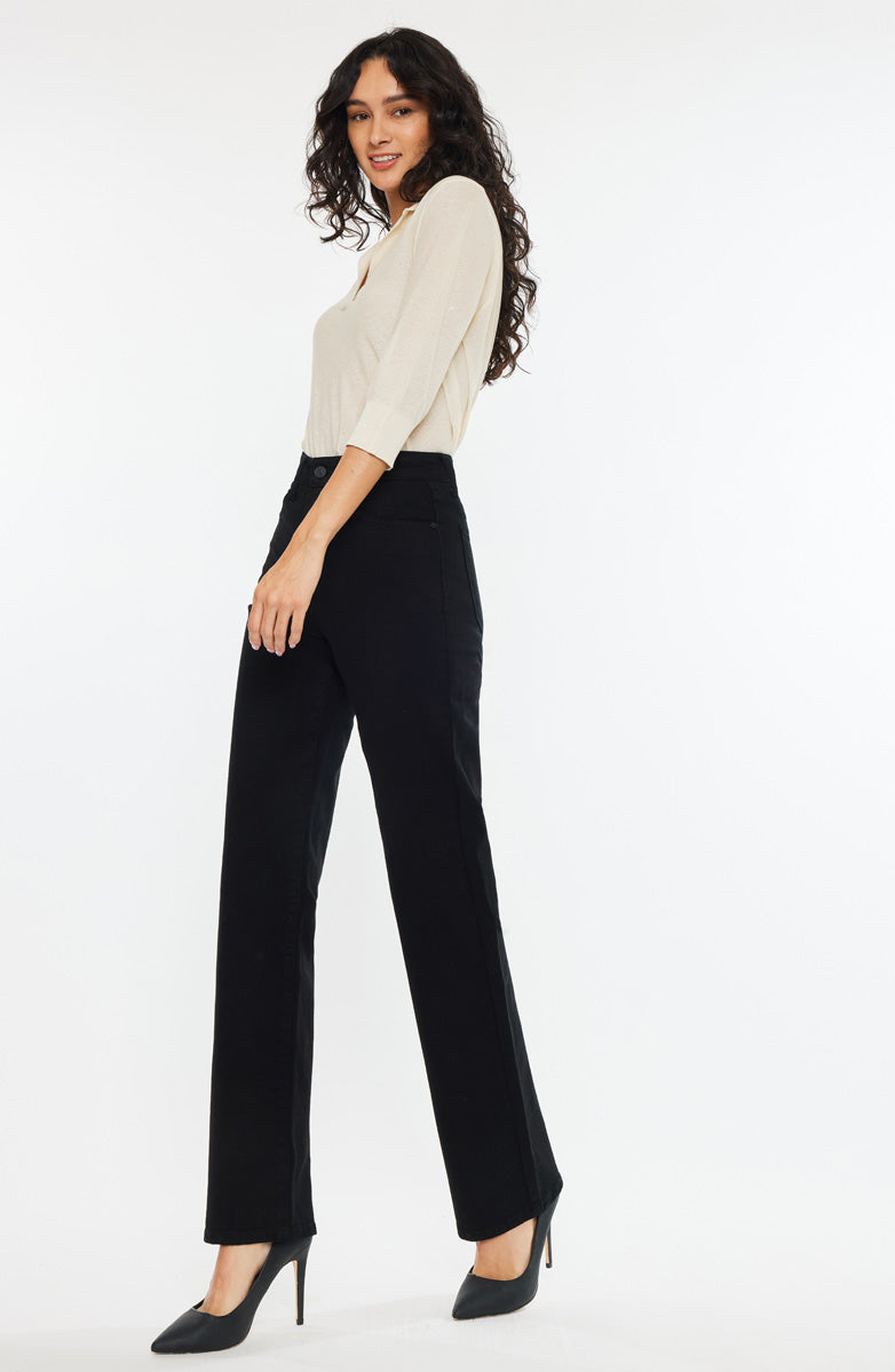 KanCan Princess High Rise True Straight Leg Jeans_Black