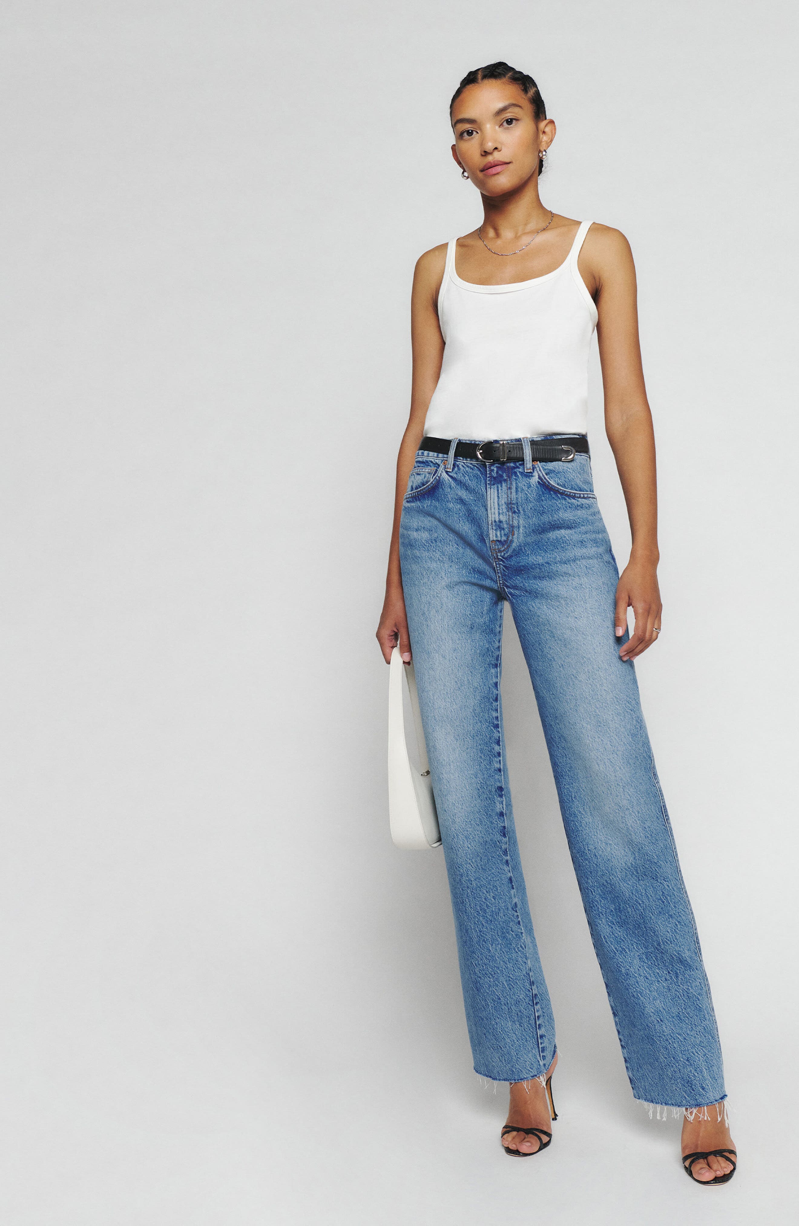 Reformation Val Baggy Distressed Straight Leg Jeans_Colorado