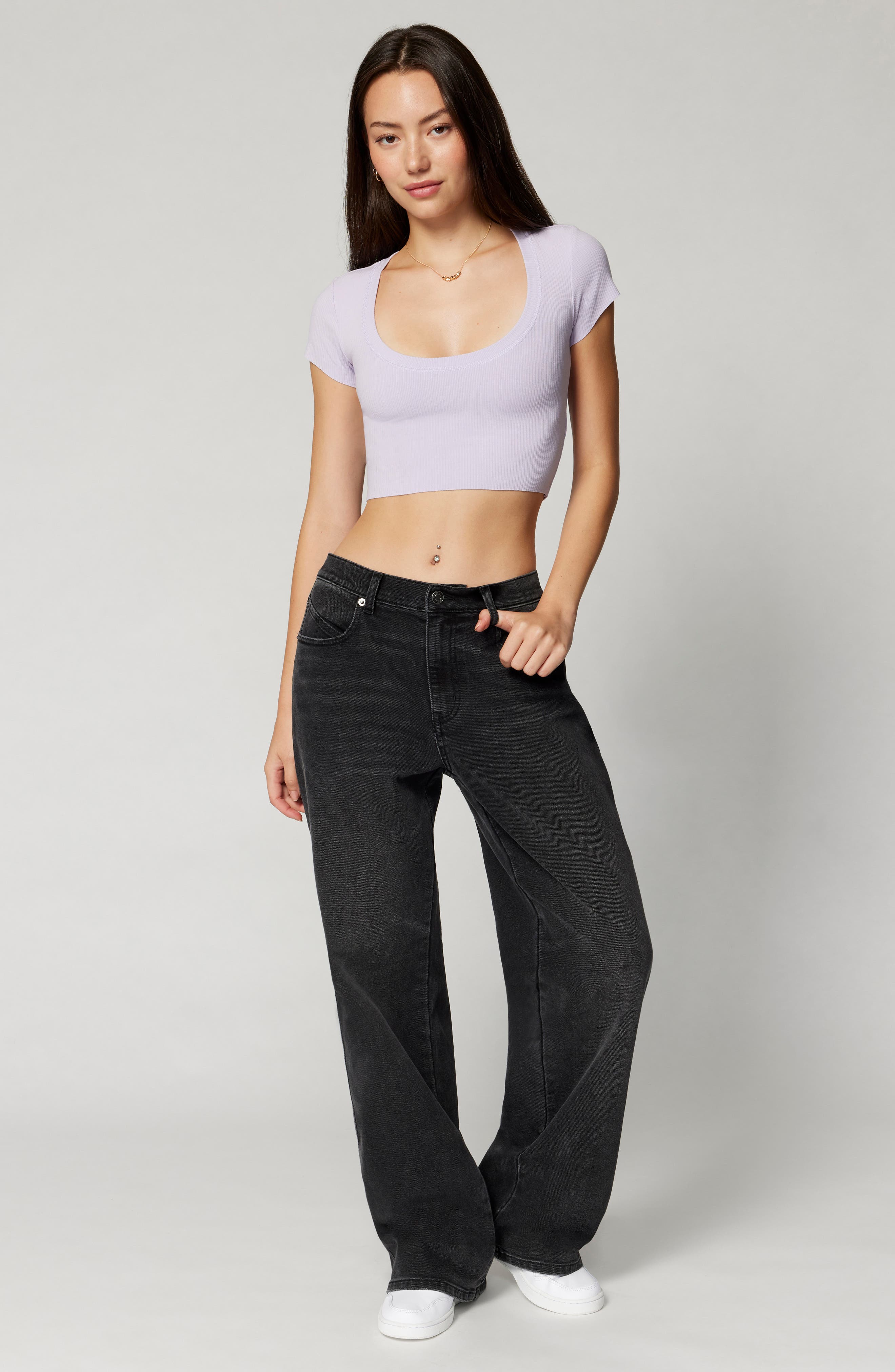 Florence by Mills Wide Leg Boyfriend Jeans_Washed Black