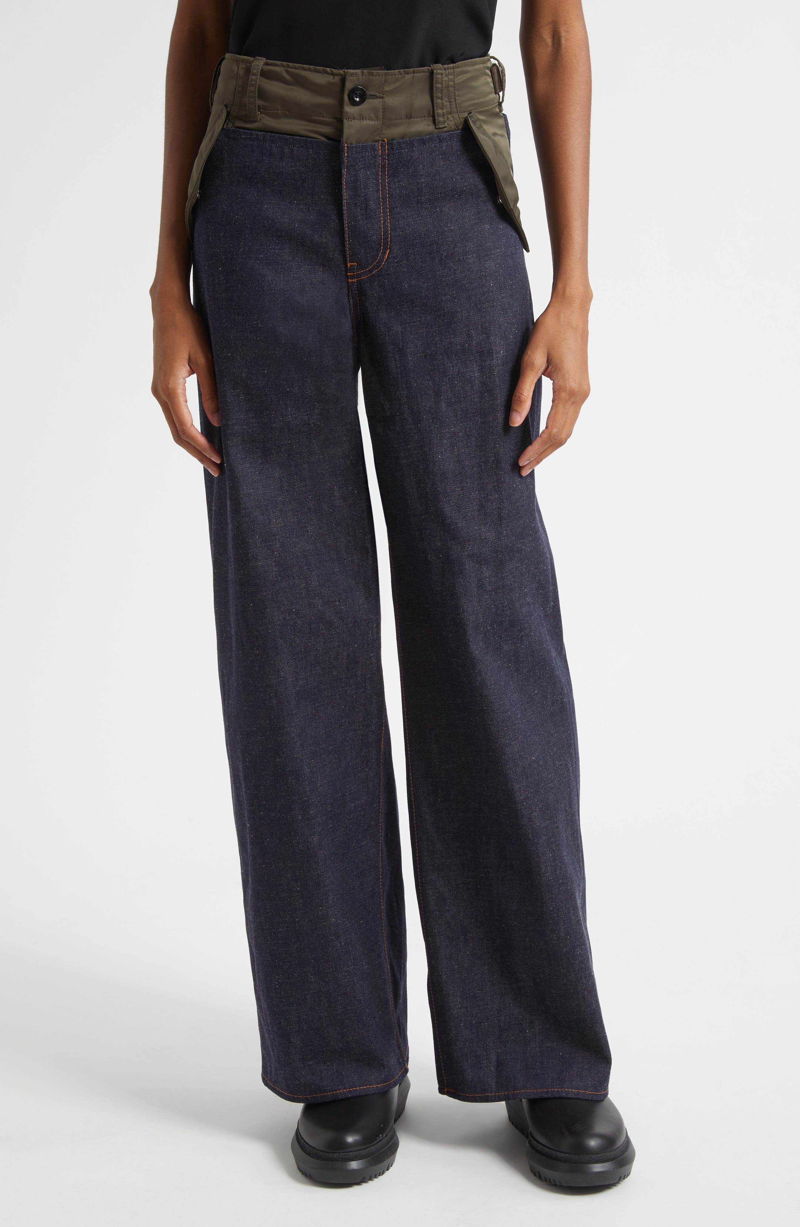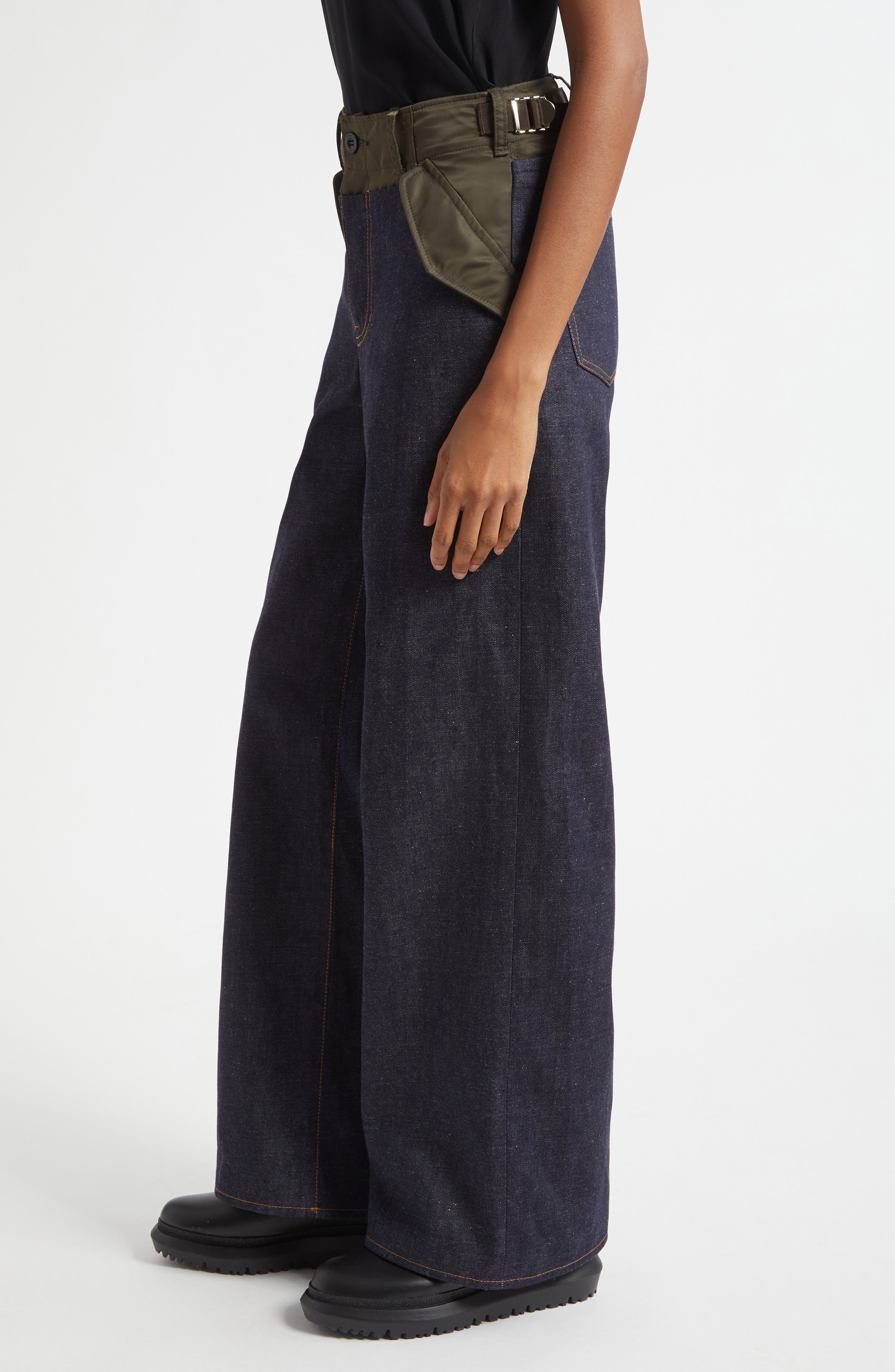 Sacai Baggy Mixed Media Jeans_Indigo/ Dark Khaki