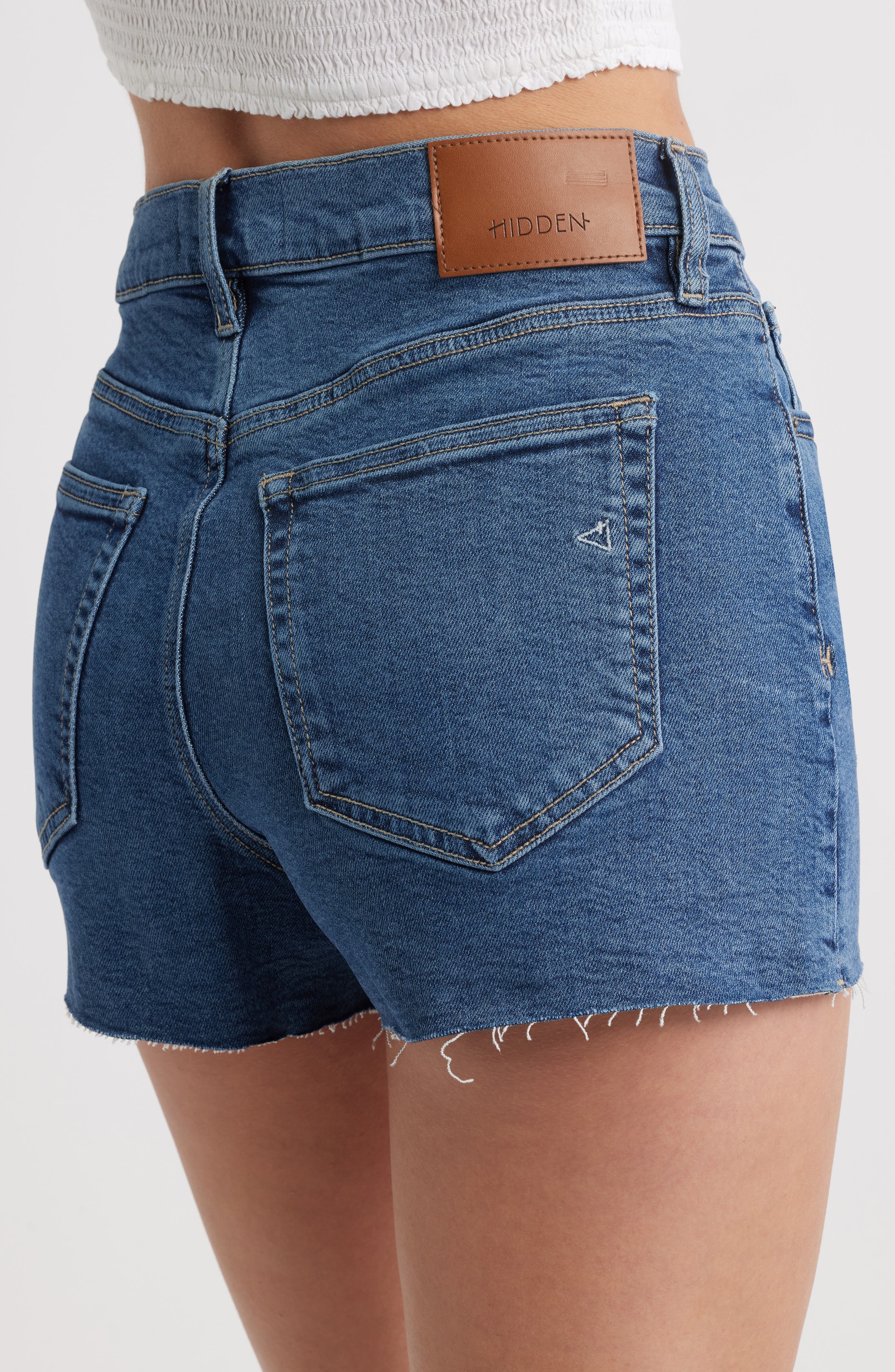 HIDDEN JEANS High Waist Cutoff Denim Shorts_Dark Wash