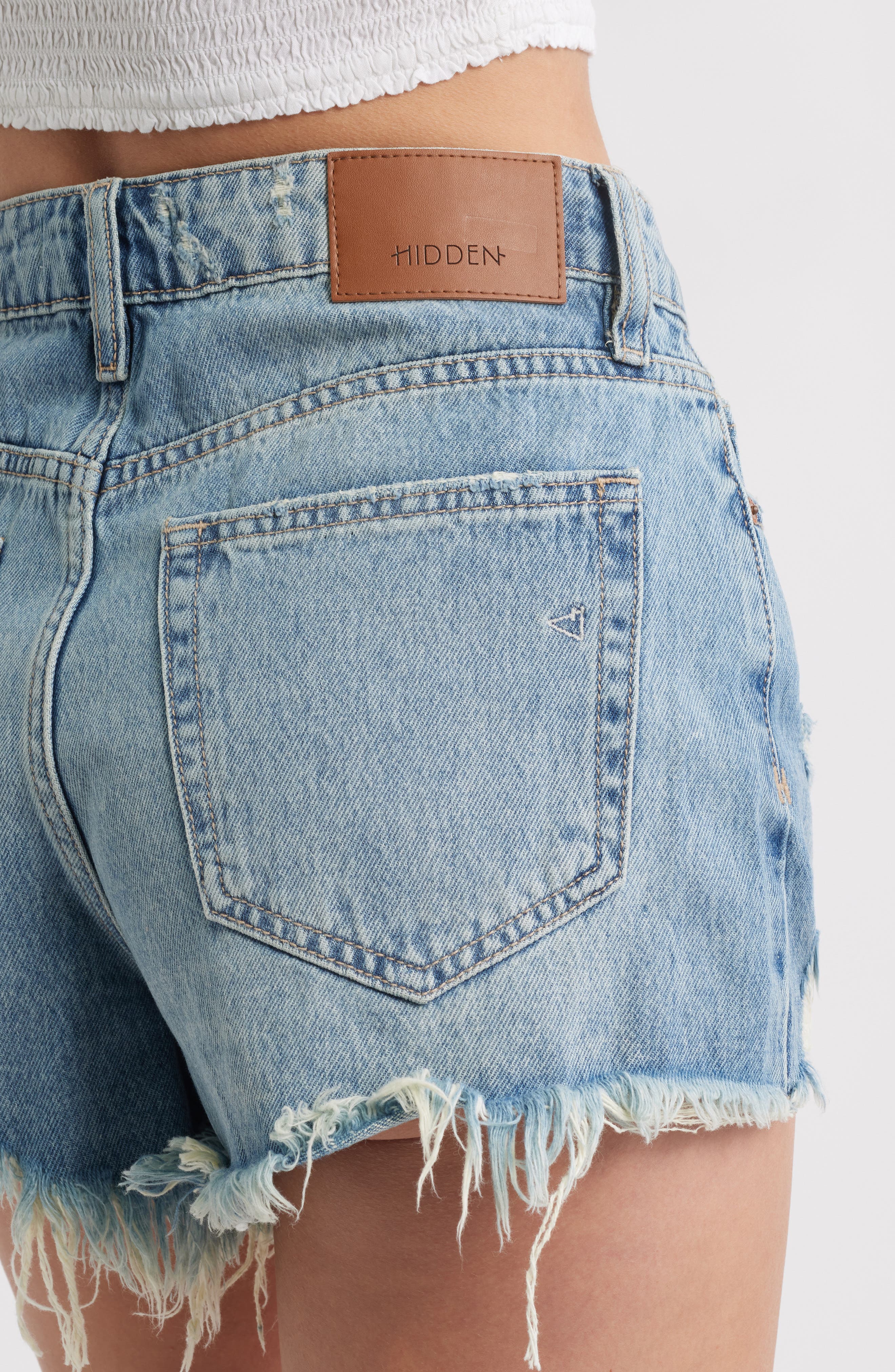 HIDDEN JEANS Ripped Cutoff Denim Shorts_Medium Wash