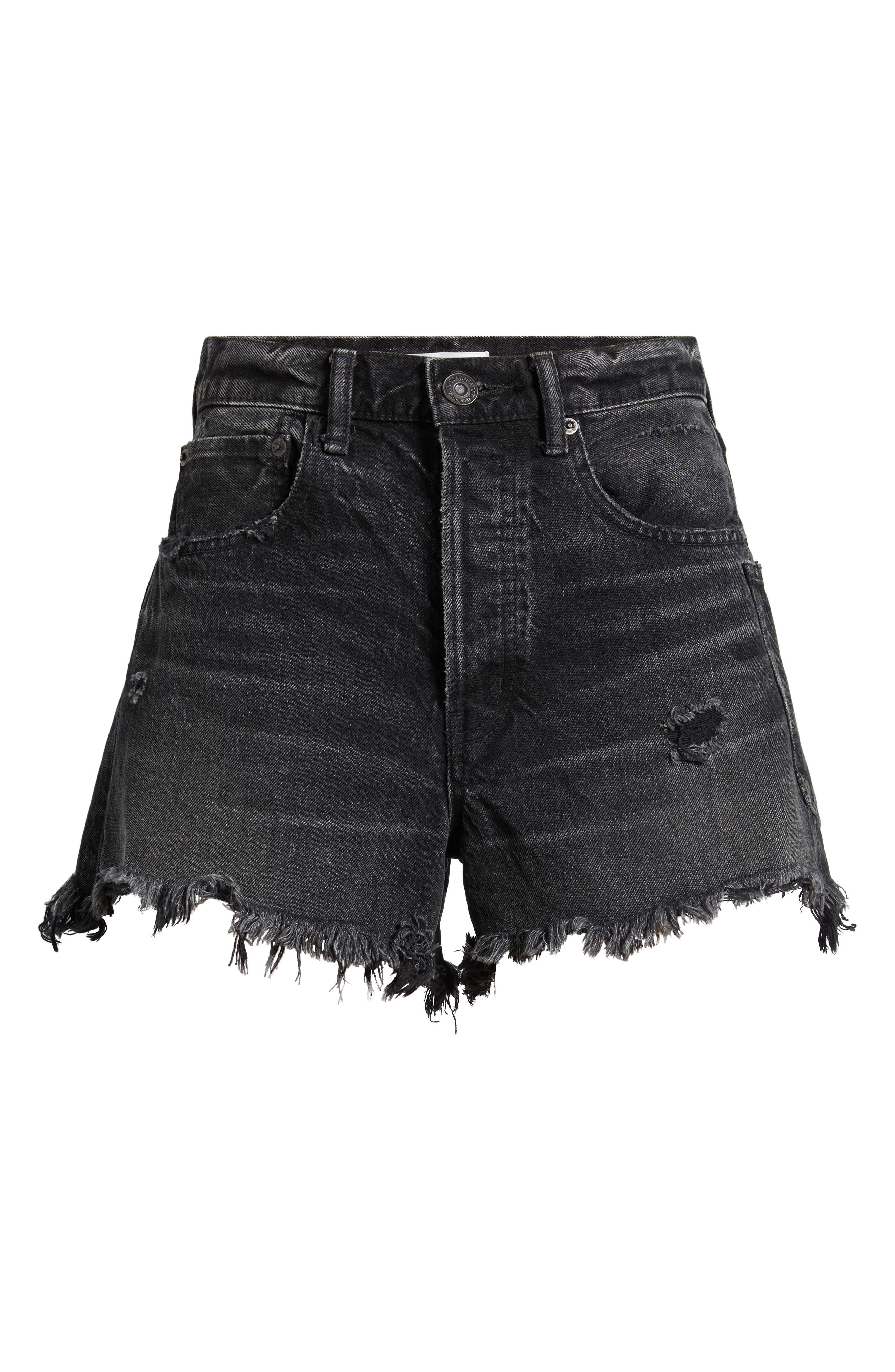 MOUSSY VINTAGE Harrington Ripped Denim Cutoff Shorts_Black