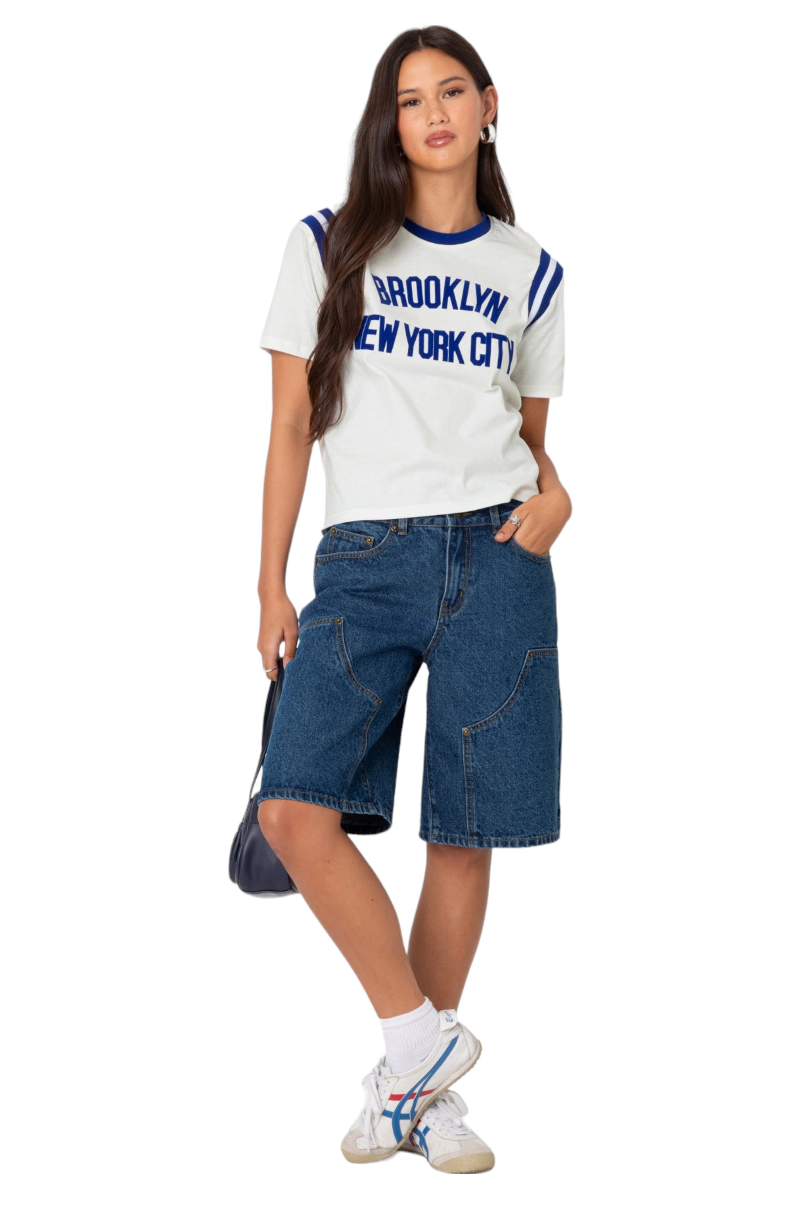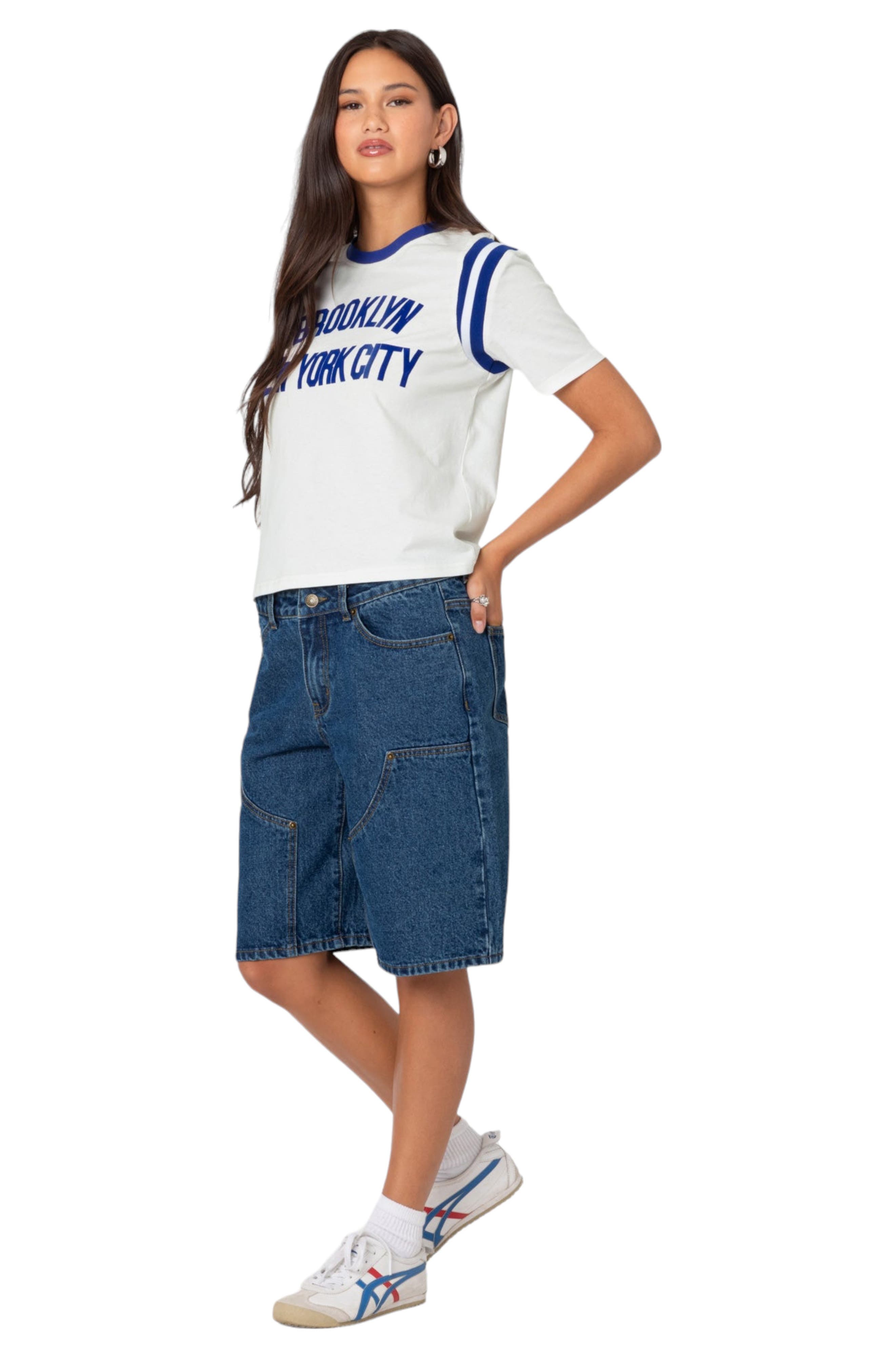 EDIKTED Jacqui Low Rise Denim Bermuda Shorts_Blue-Washed