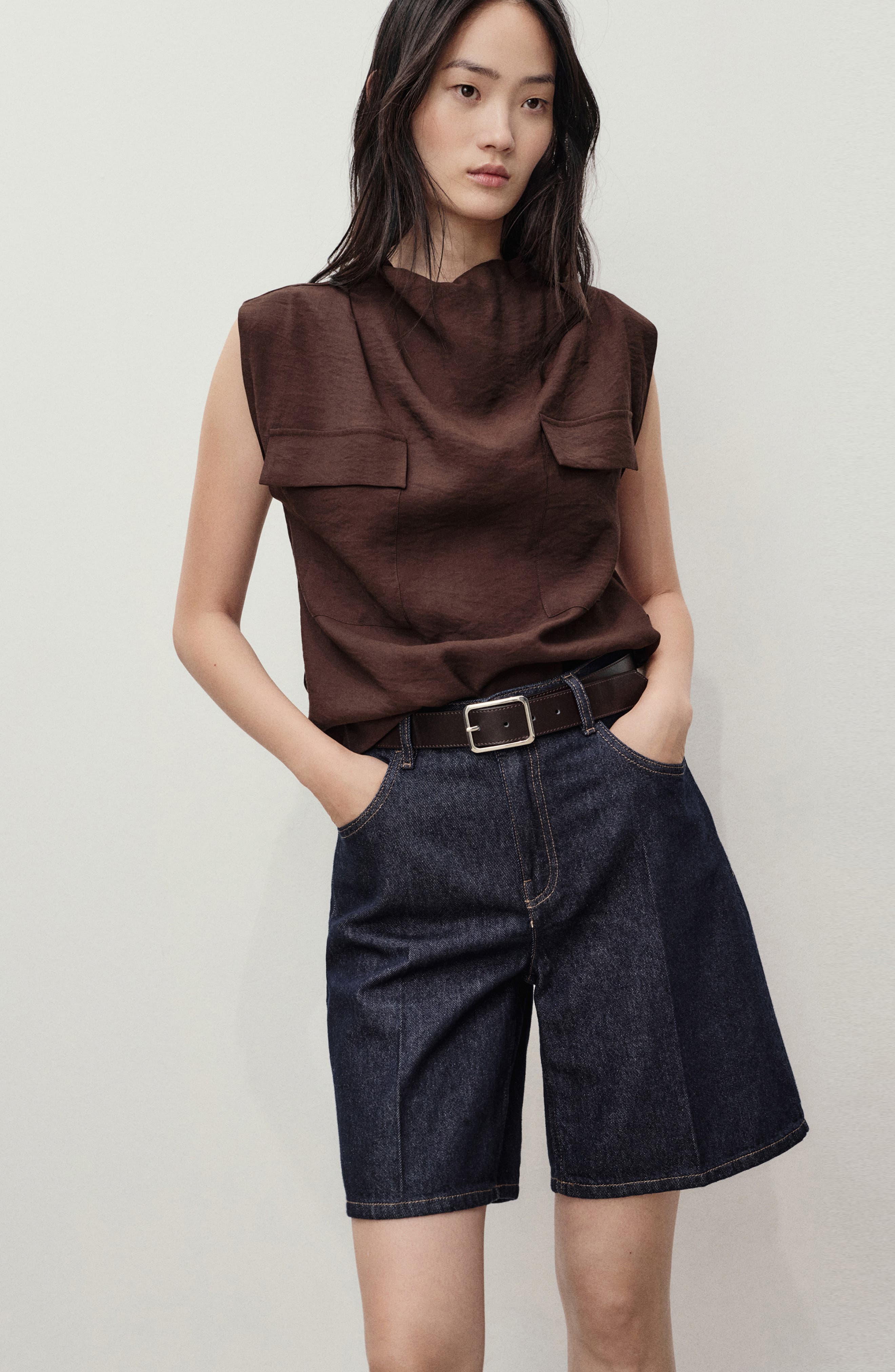 MANGO High Waist Denim Bermuda Shorts_Open Blue